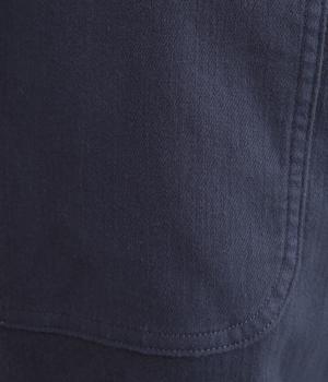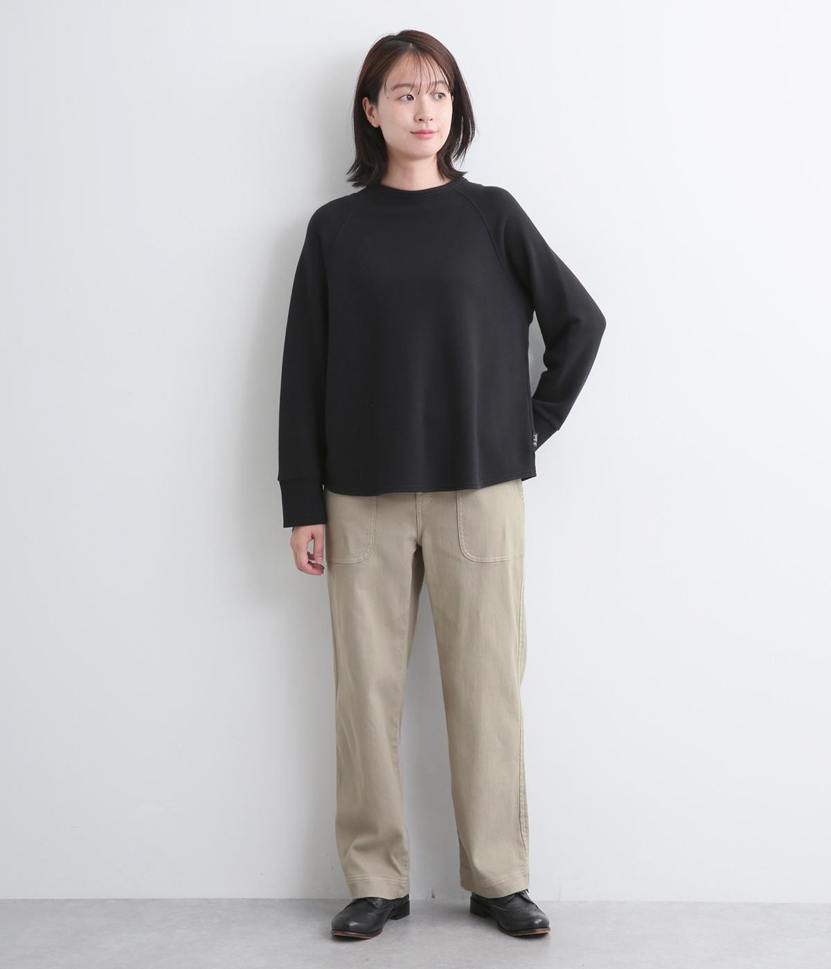 コットン、ポリウレタンを使用。表面は、ややヴィンテージ感のあるざらっとした手ざわりに仕上げました。裏面はなめらかでやさしい肌あたりの起毛。あたたかみを感じながら着用できます。