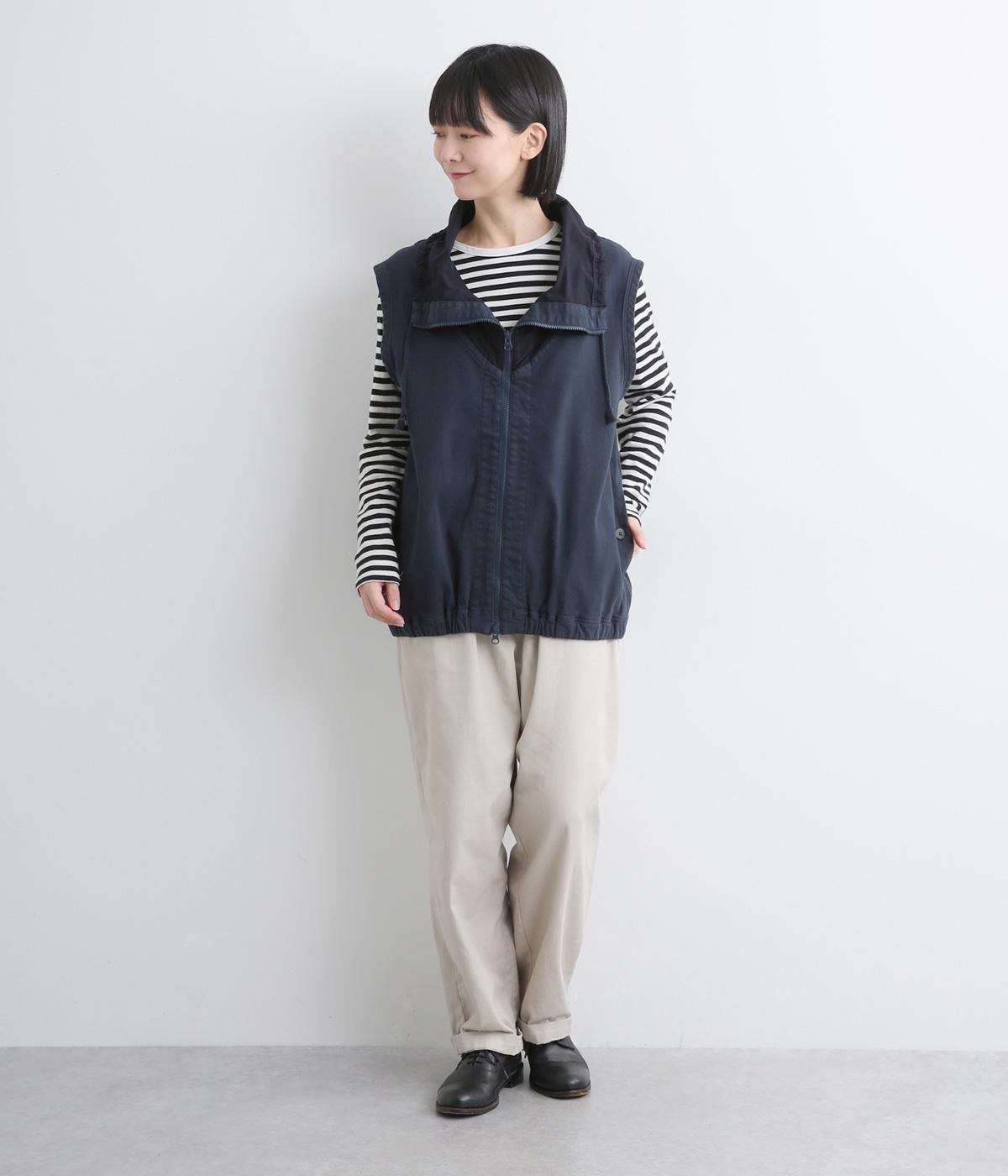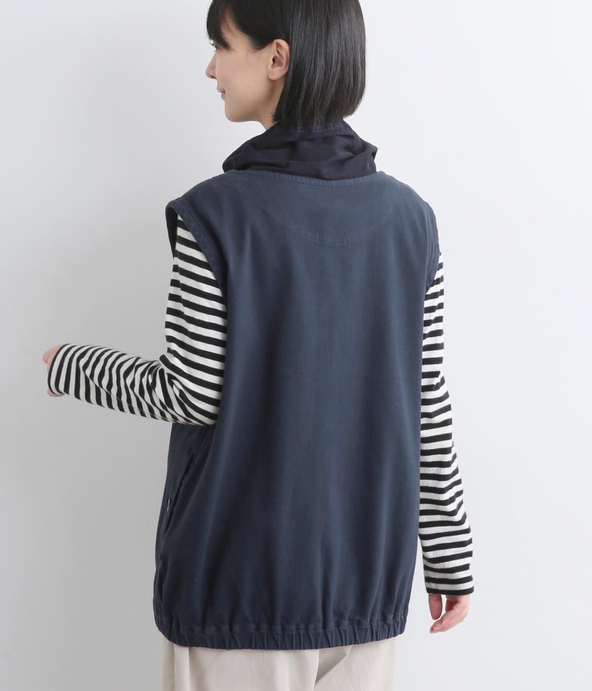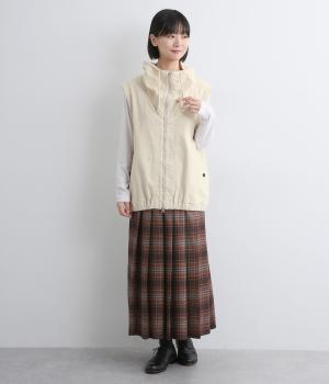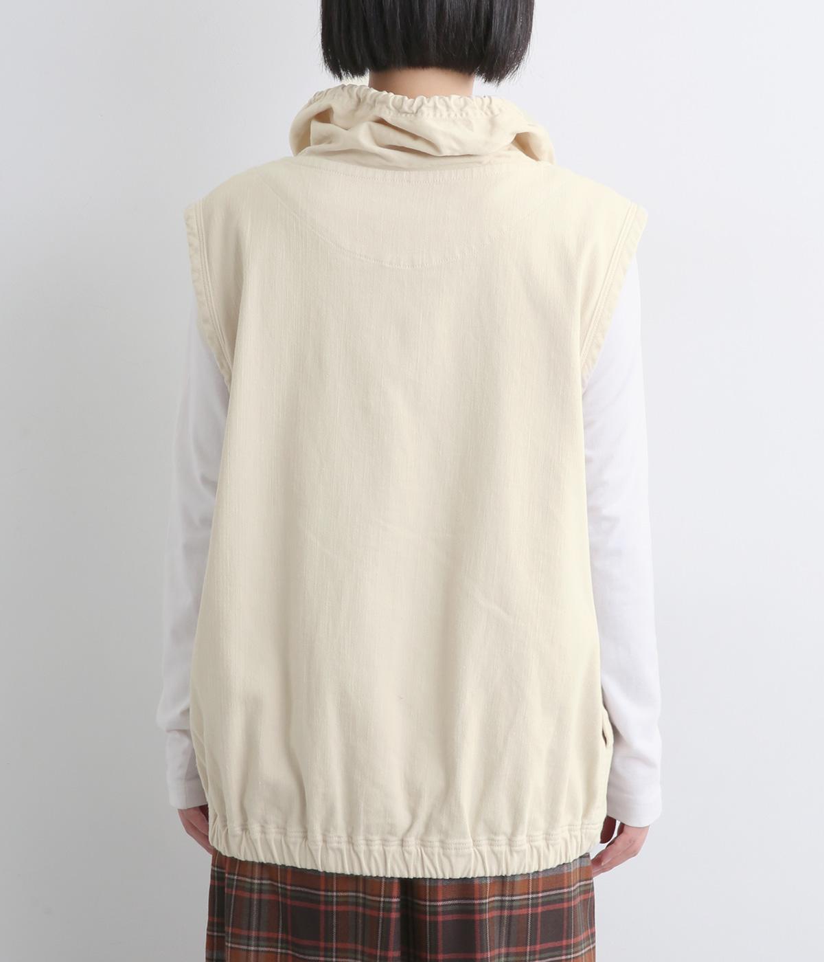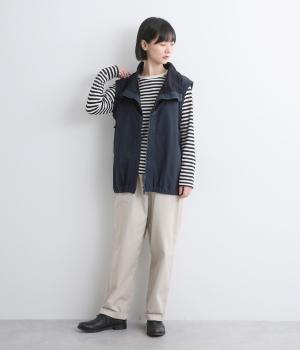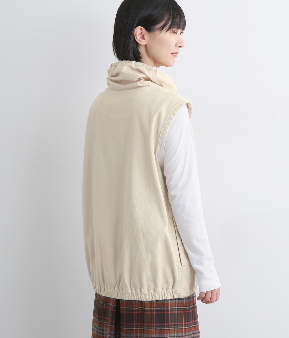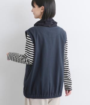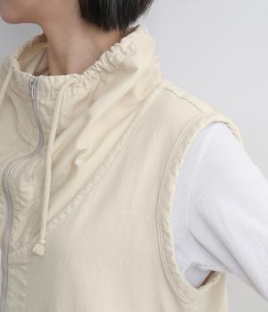 首元のデザインやポケット部分のボタンなど、細部にまでこだわり抜いたセンスの良さが光るハイネックベスト。両サイドにポケットがついていて、収納面も◎。ジップの開閉具合いで雰囲気がガラリと変わり、いろいろな着こなしが楽しめます。