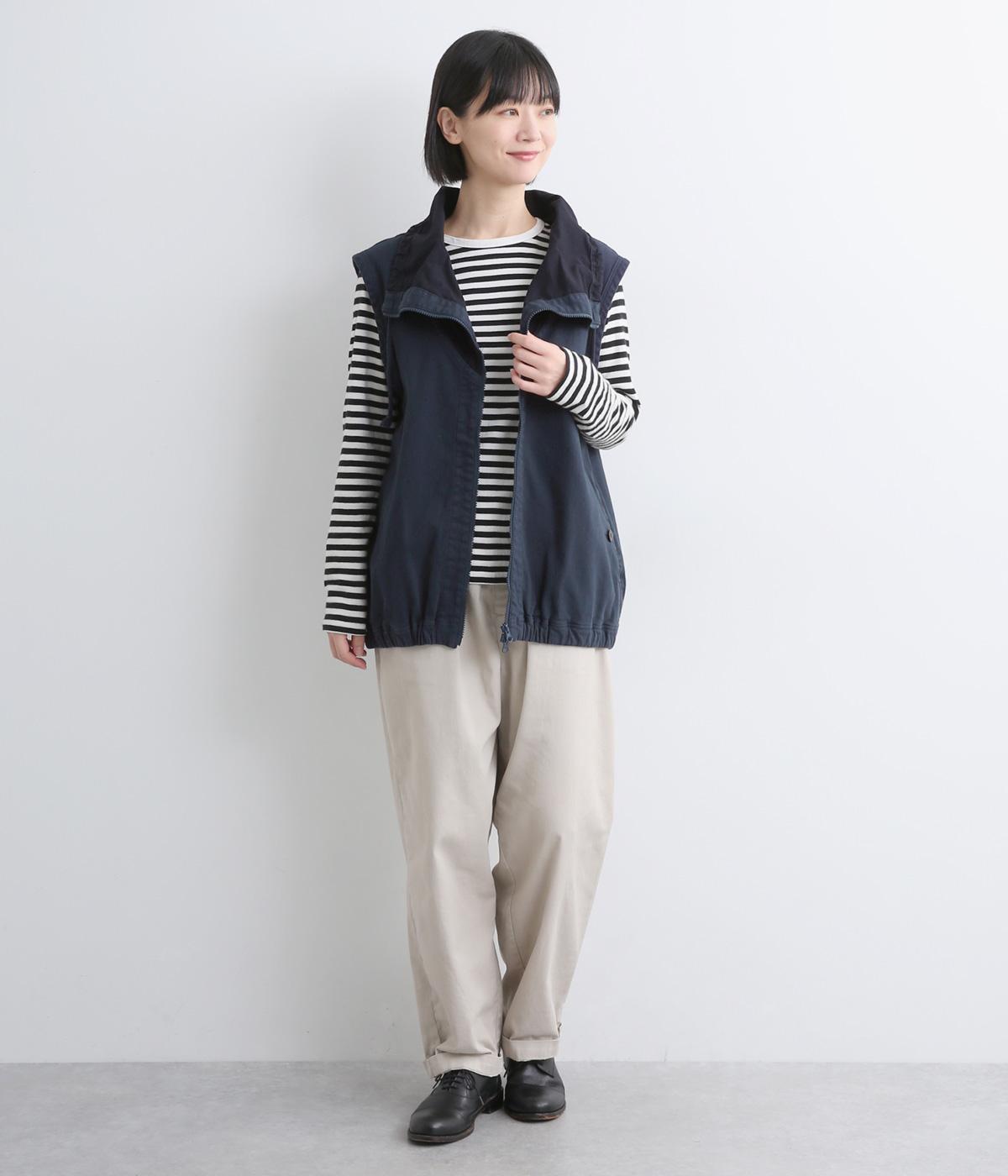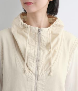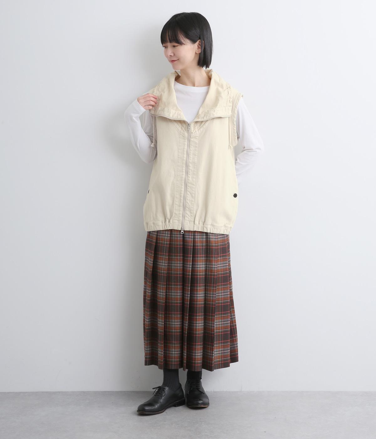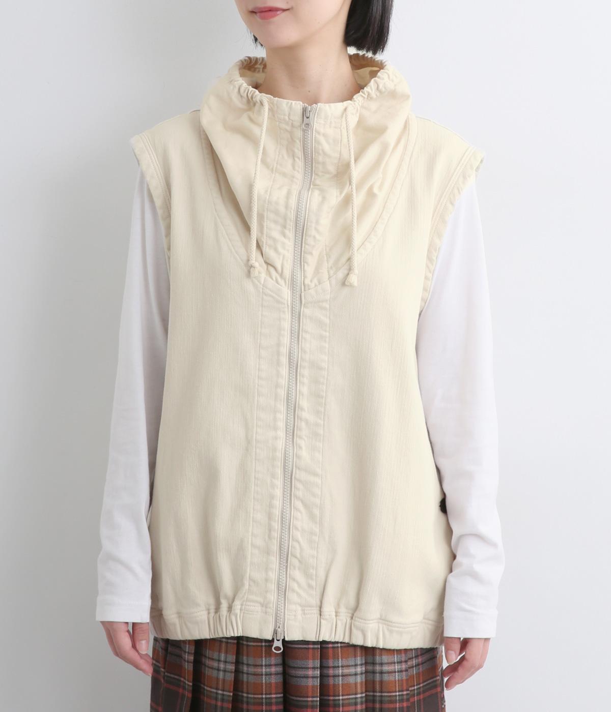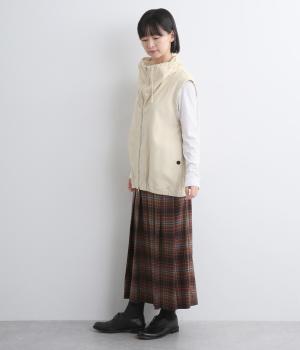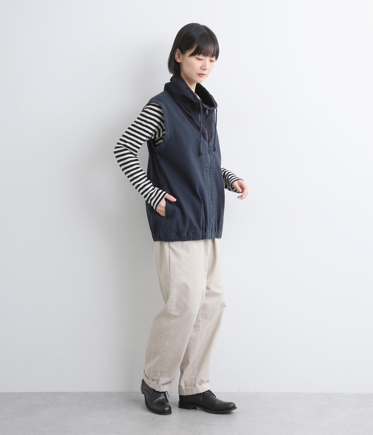 首元のデザインやポケット部分のボタンなど、細部にまでこだわり抜いたセンスの良さが光るハイネックベスト。両サイドにポケットがついていて、収納面も◎。ジップの開閉具合いで雰囲気がガラリと変わり、いろいろな着こなしが楽しめます。
