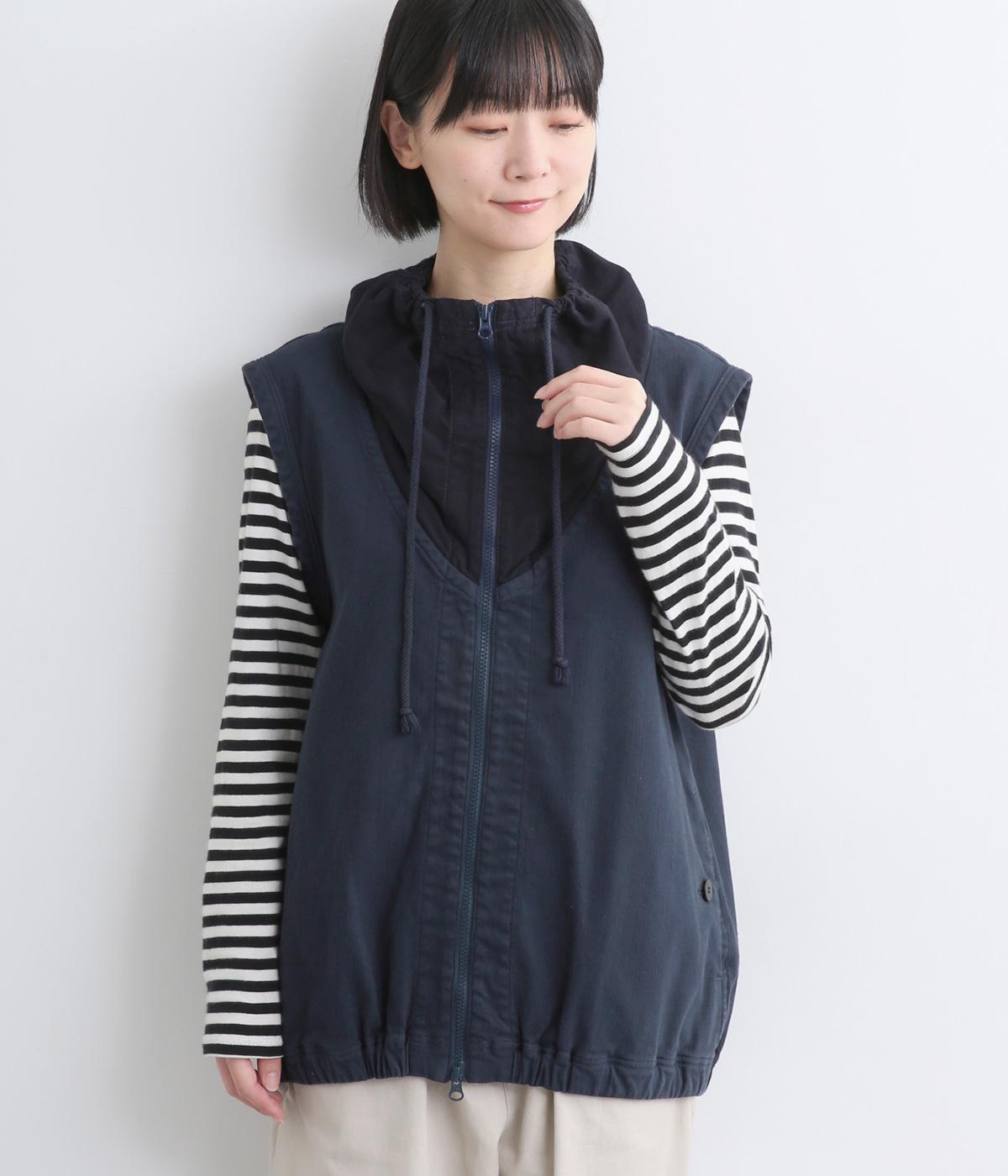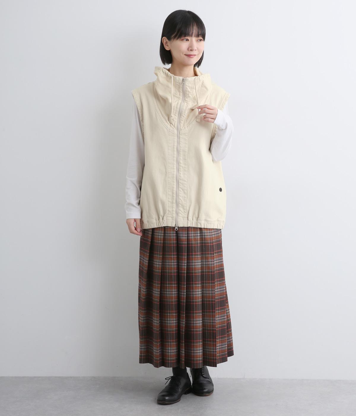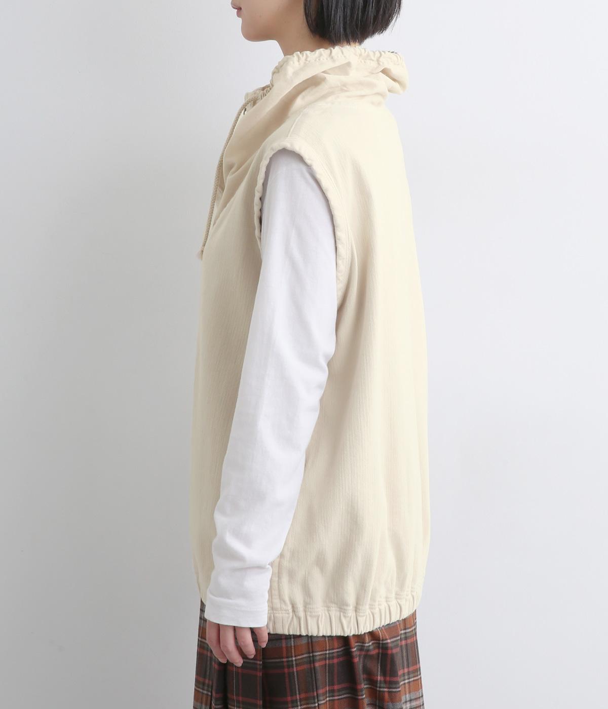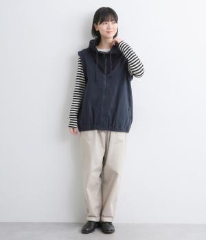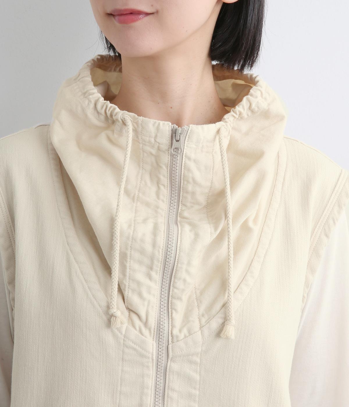 首元のデザインやポケット部分のボタンなど、細部にまでこだわり抜いたセンスの良さが光るハイネックベスト。両サイドにポケットがついていて、収納面も◎。ジップの開閉具合いで雰囲気がガラリと変わり、いろいろな着こなしが楽しめます。