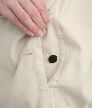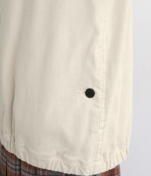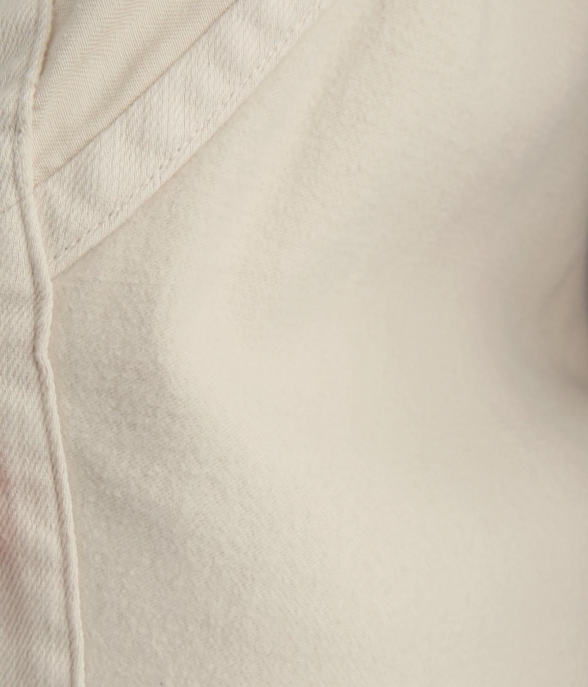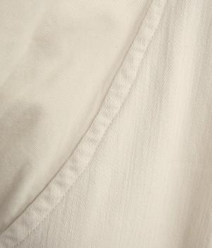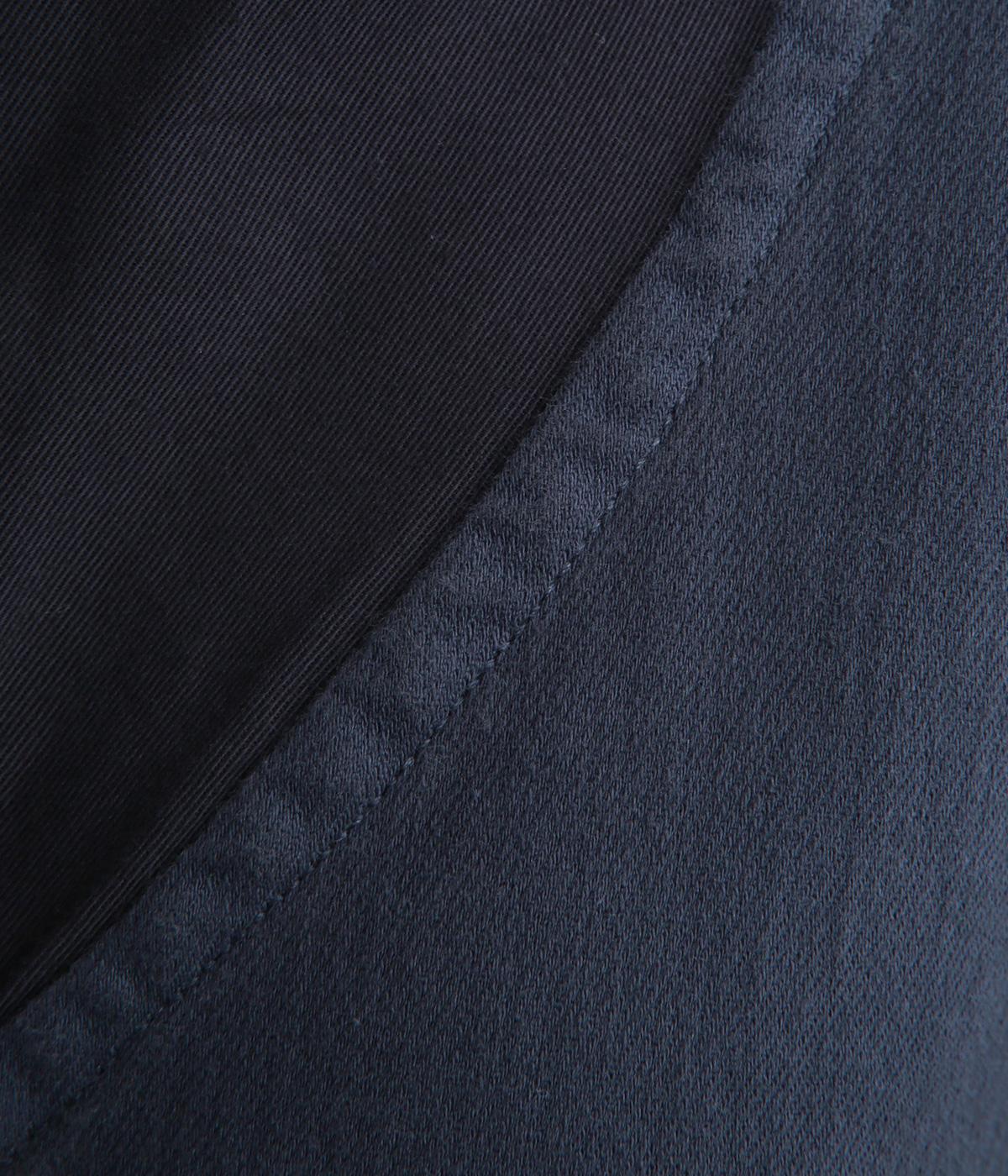 コットンとポリウレタンを使用。やわらかさと強度が特徴的なツイルストレッチ生地です。伸縮性があり、快適な着心地も魅力。保温性が高く、やわらかい手ざわりの裏起毛です。