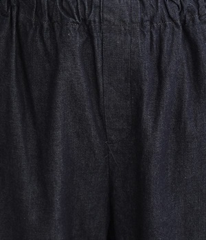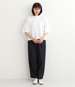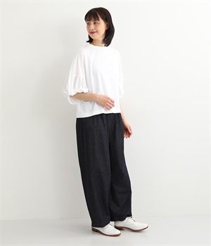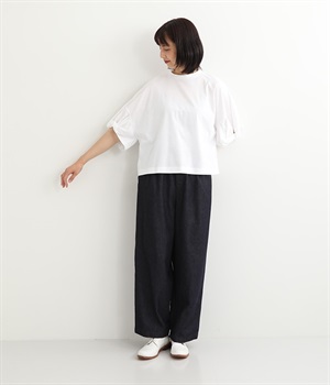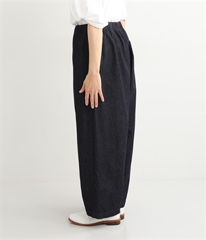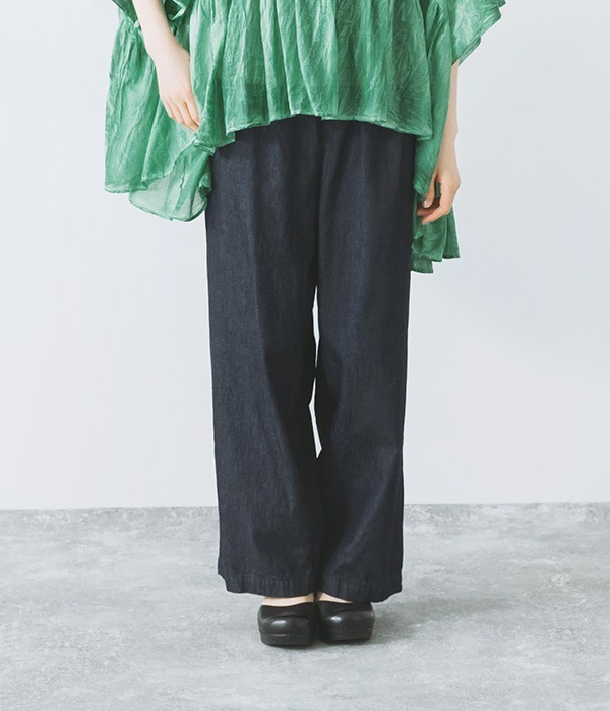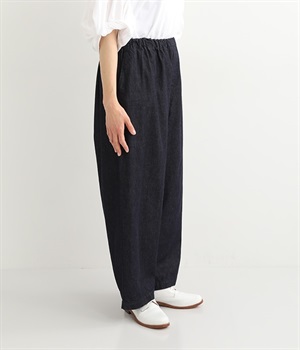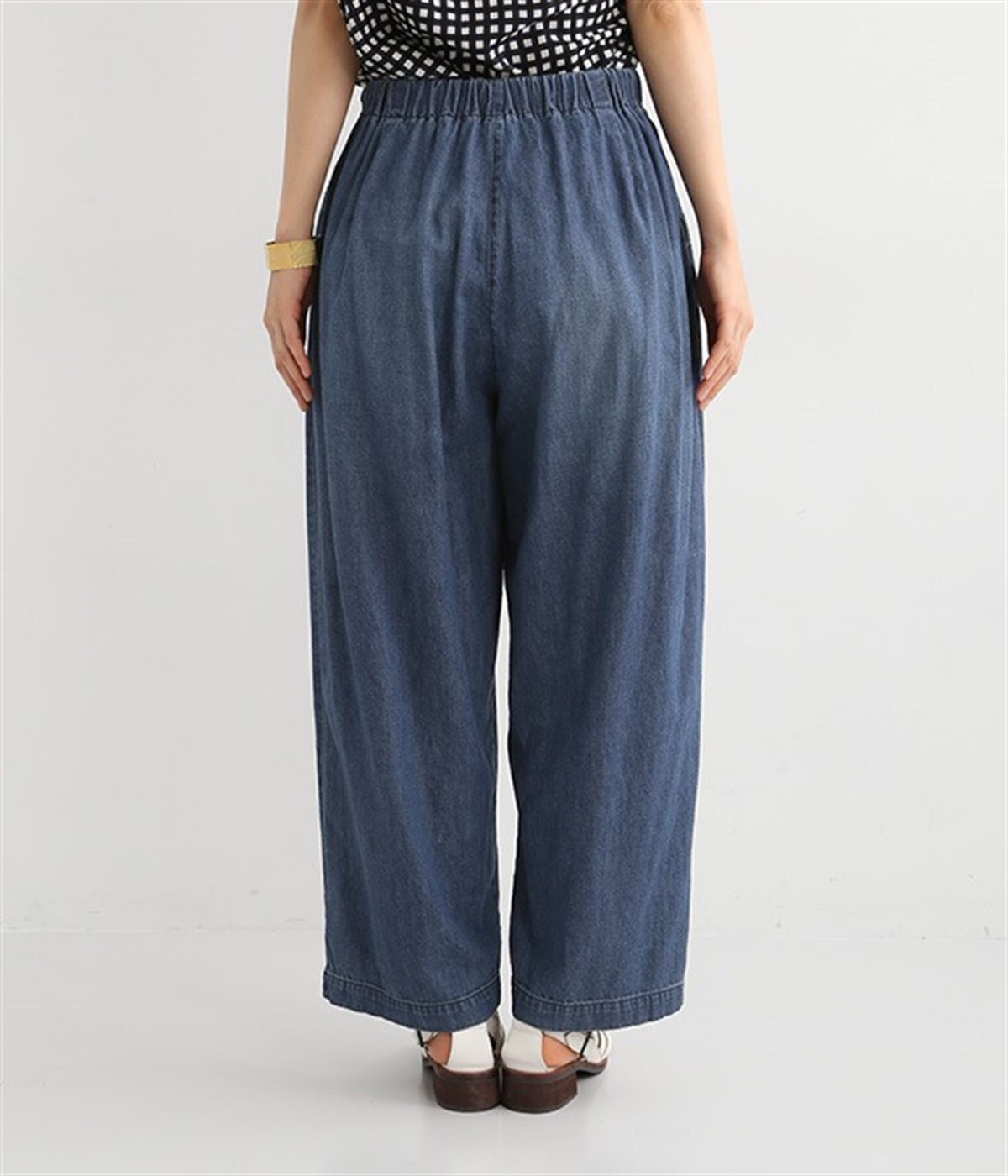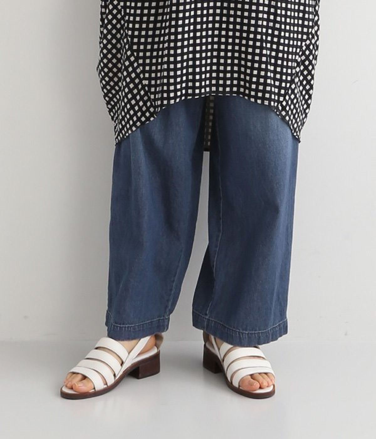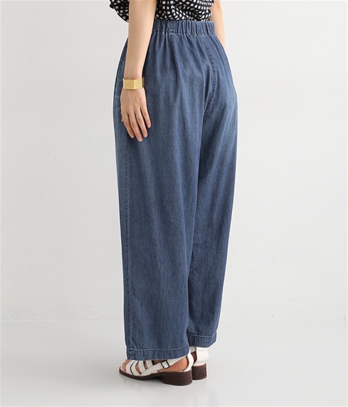 ブライトデニムを使用したイージーパンツです。柔らかく軽い素材と、足のラインを拾わないほどよいゆとりのあるサイズ感が特徴に。ダメージデザインは全て手加工で施され、こだわりを感じられる大人のデニムとなっています。ウエストはゴム仕様でリラックスした穿き心地。内側には紐がついているので、フィットするように調節できます。