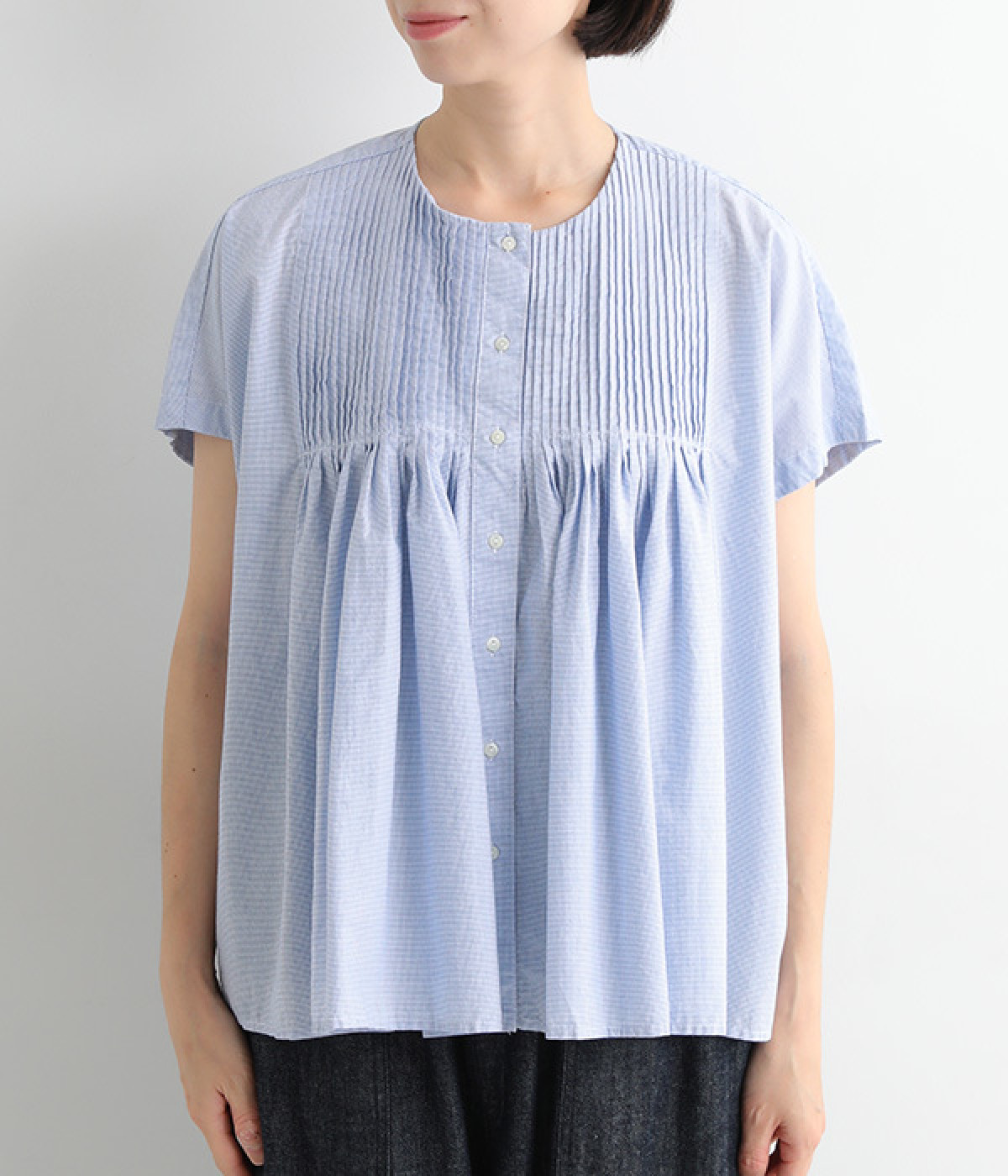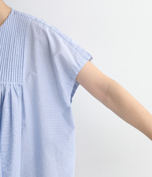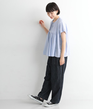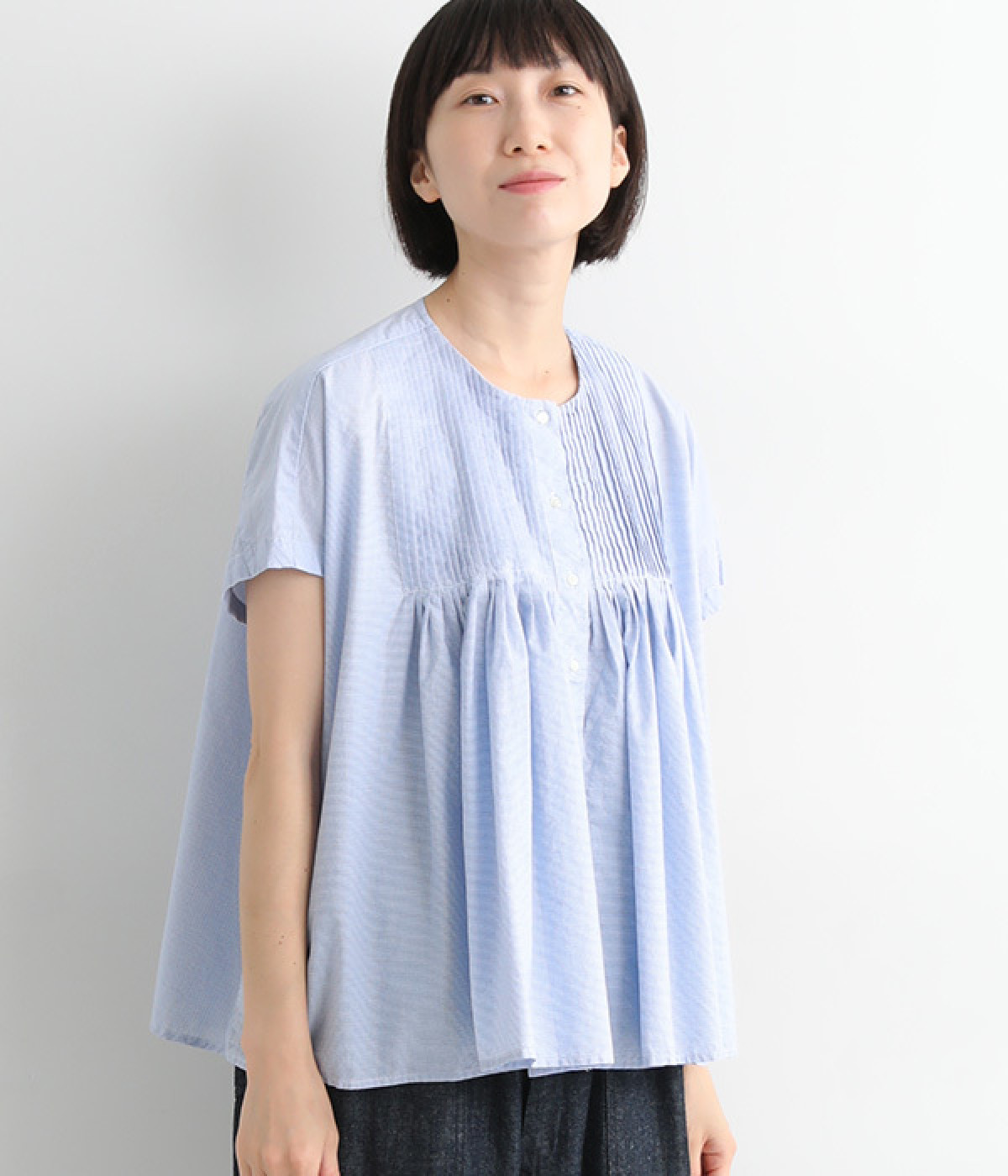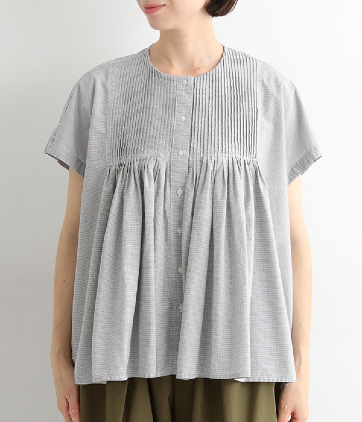 胸元からギャザーで分量を出し、ふんわりソフトなシルエットに