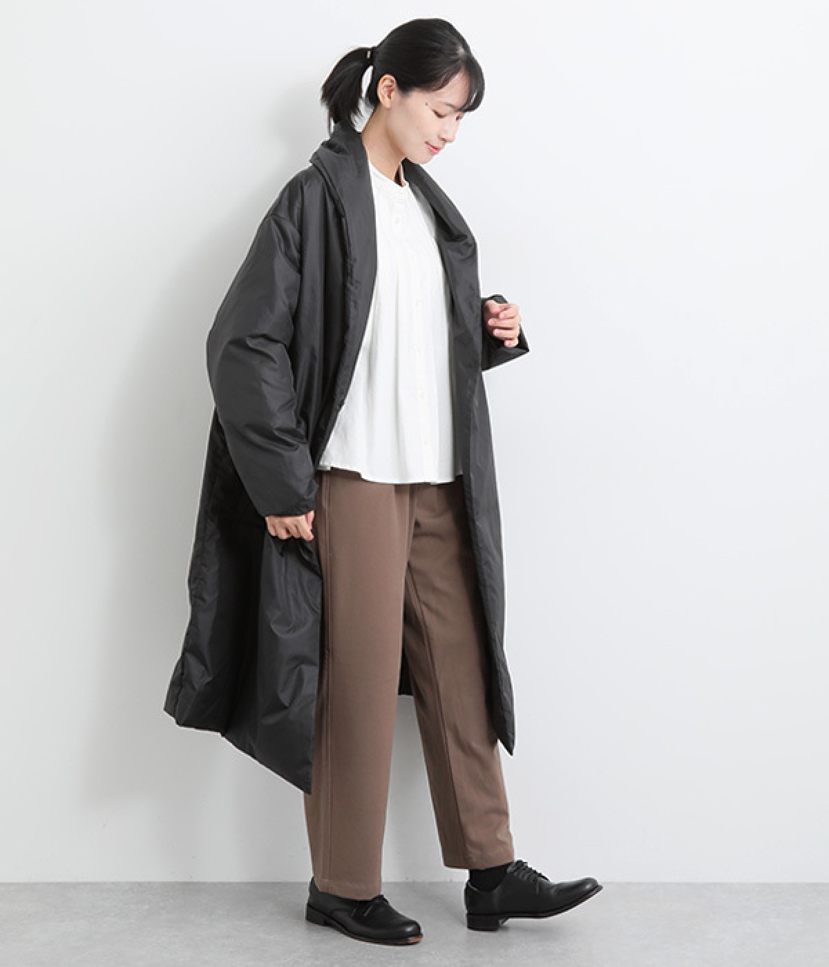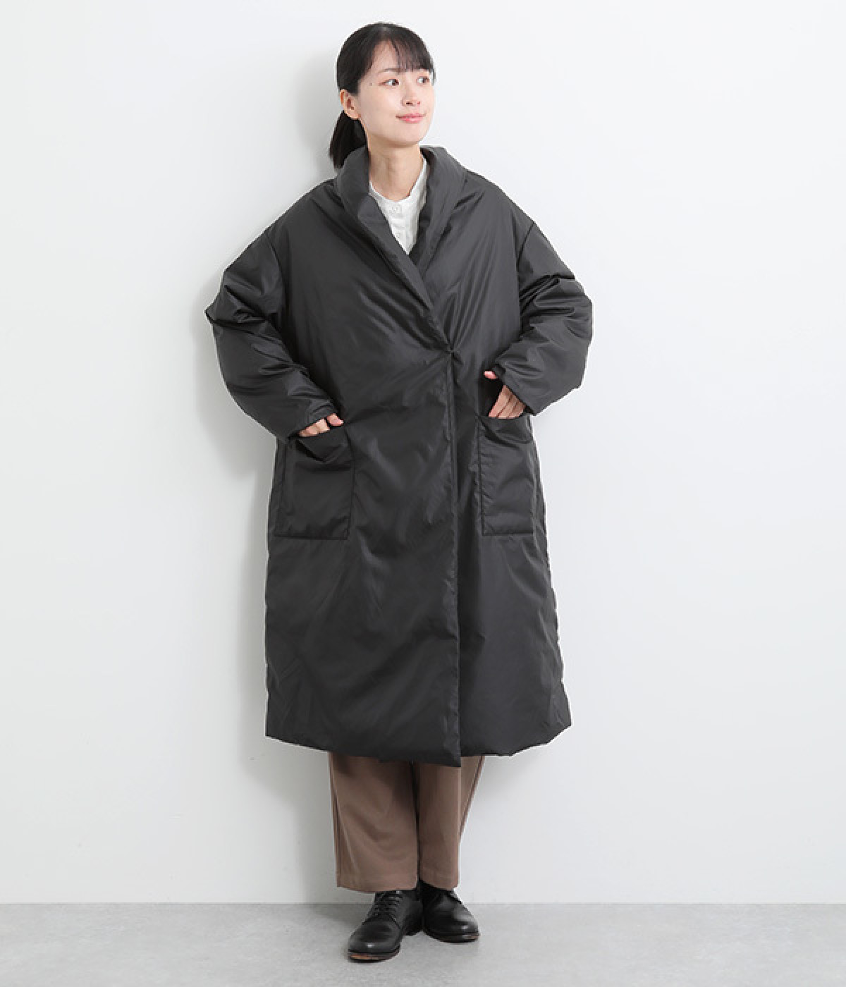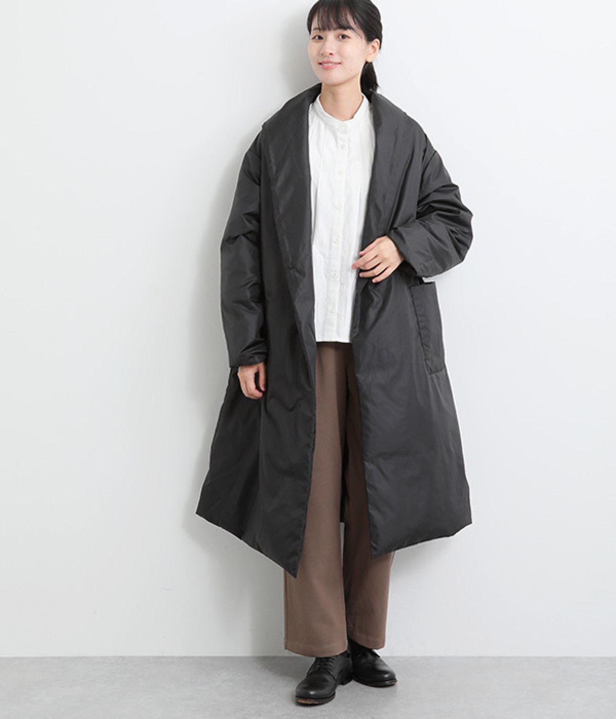着膨れしにくく、すっきりと着こなせるシルエット