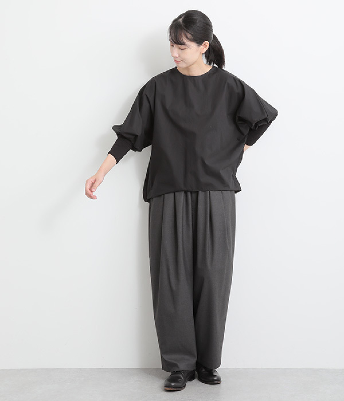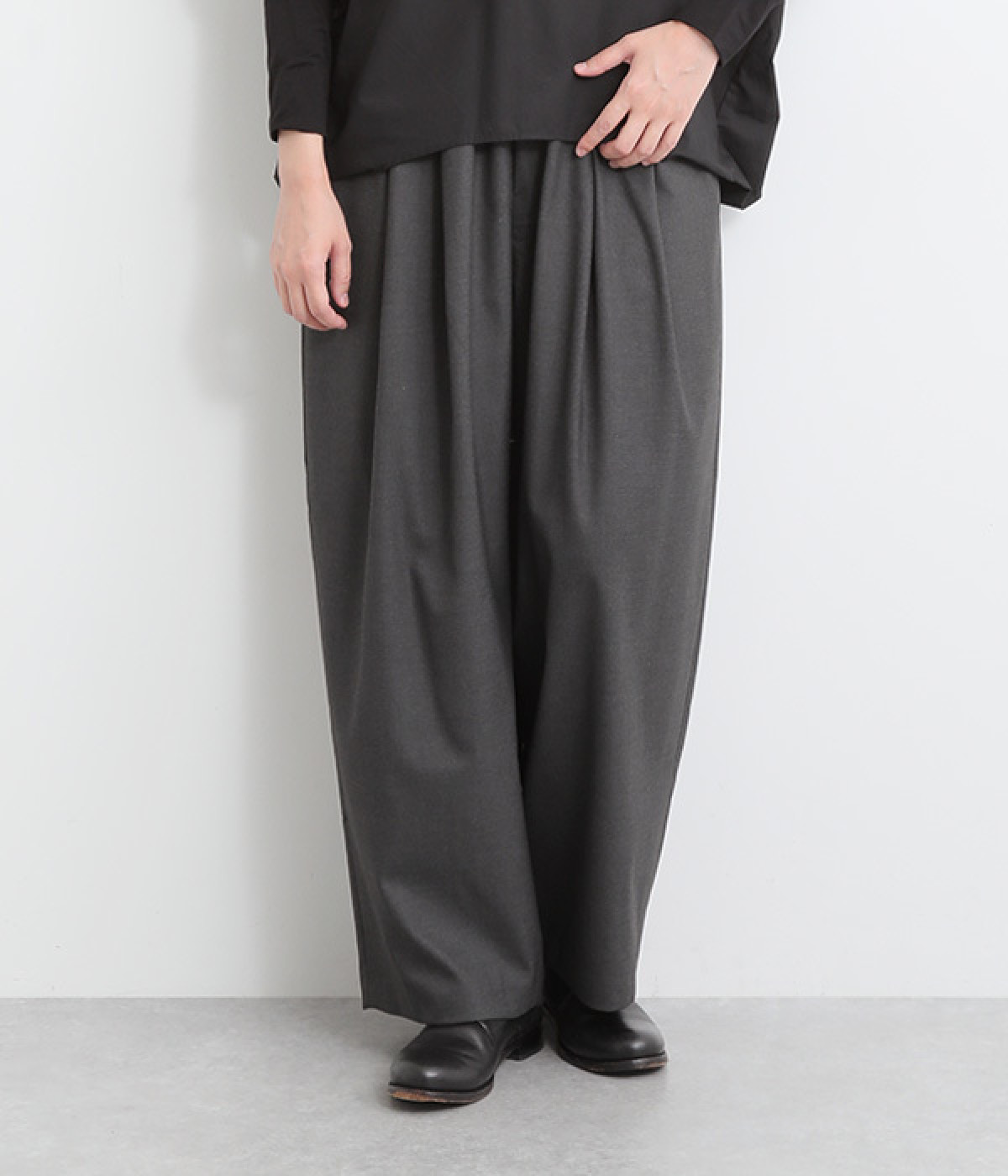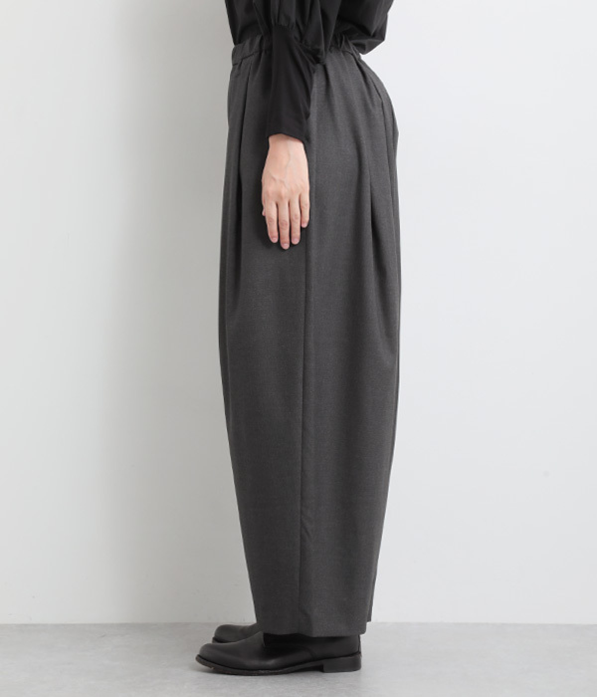 ウエストタックが映える、ワイドな立体シルエット