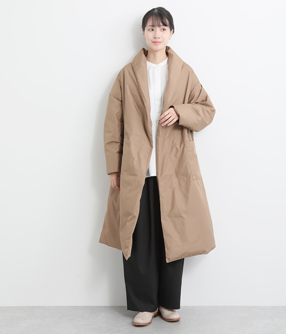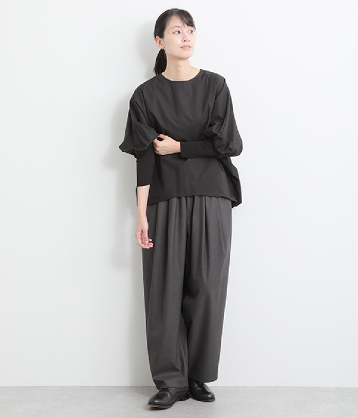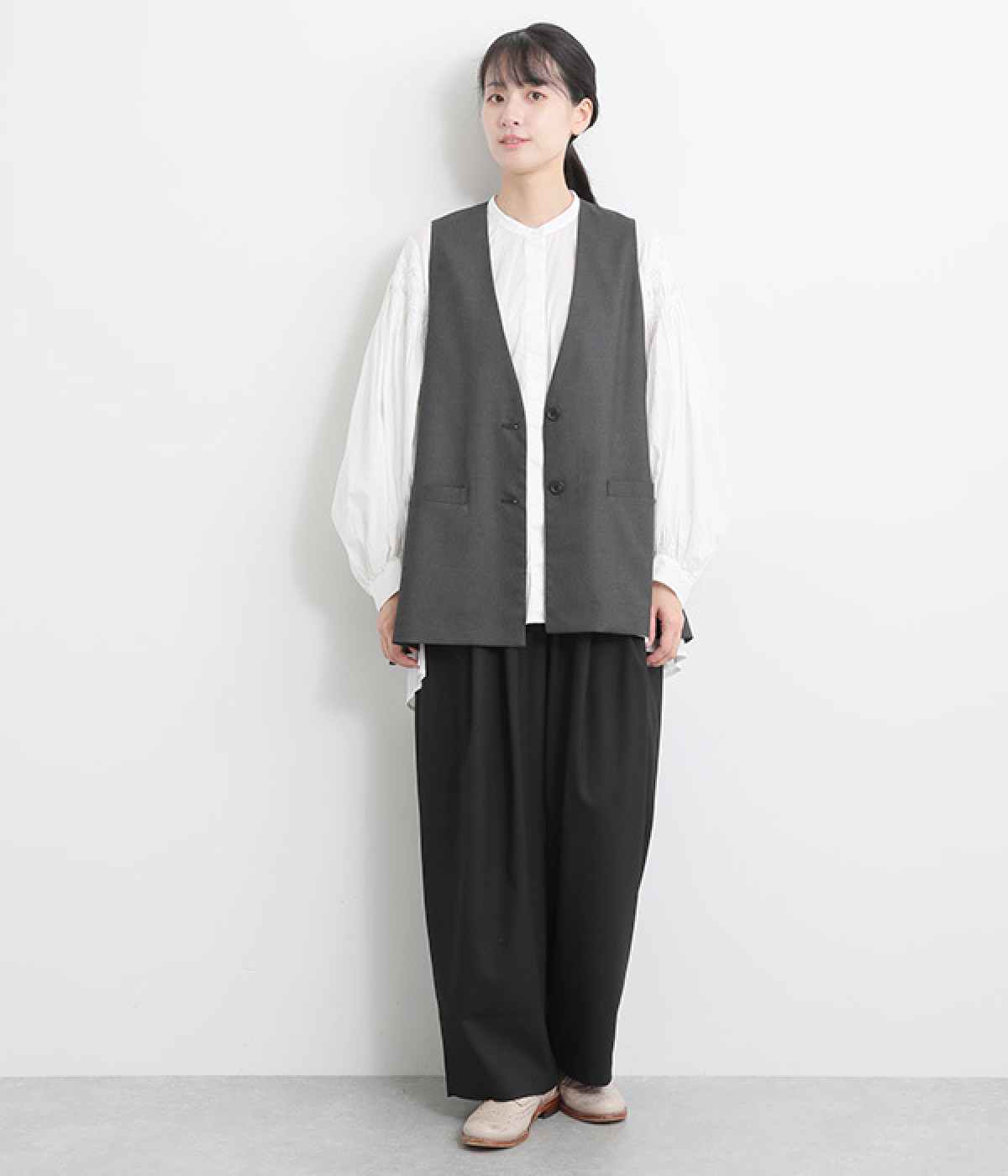 ウエストタックが映える、ワイドな立体シルエット