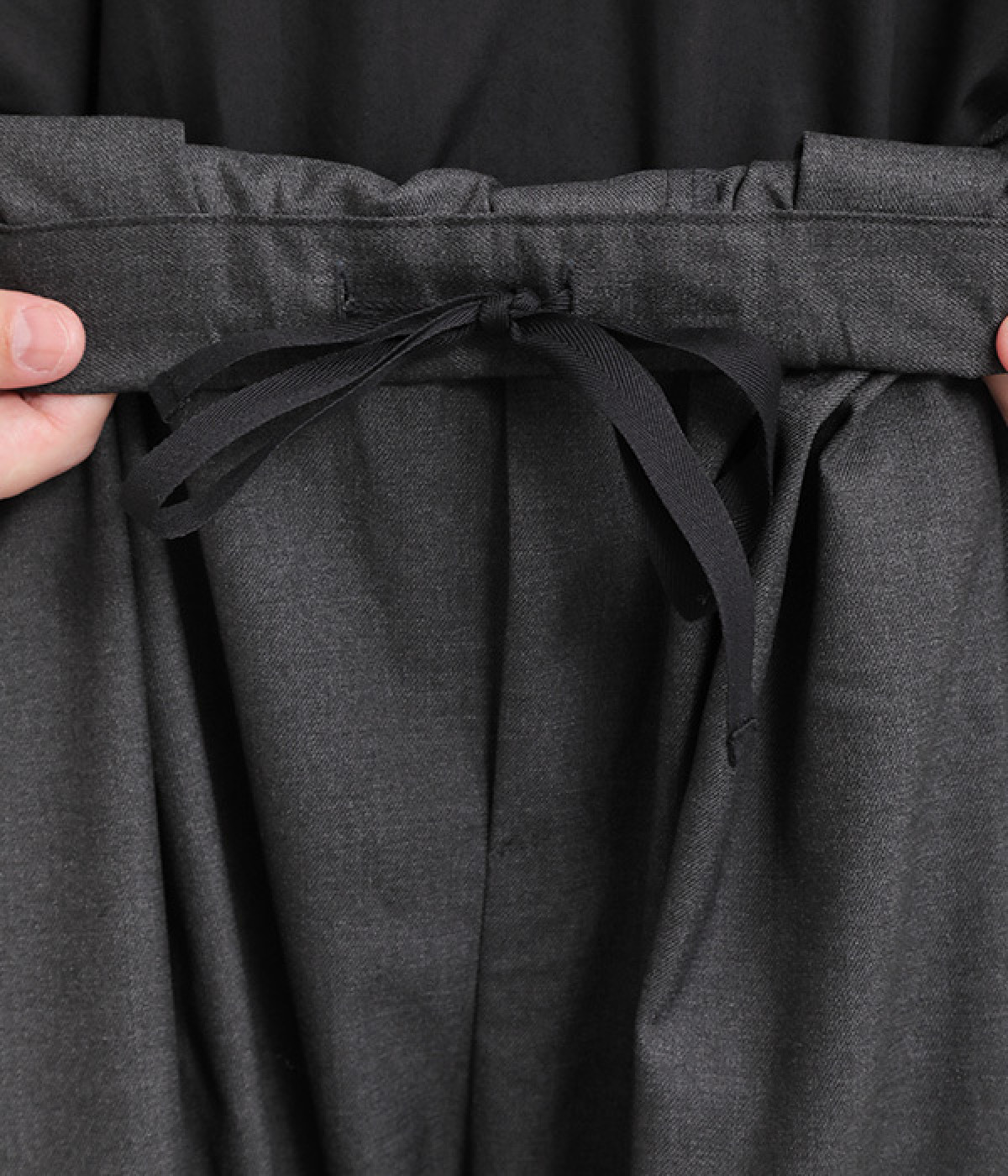 ウエストはフィット感が心地よい総ゴム仕立てで、内紐での調節も可能