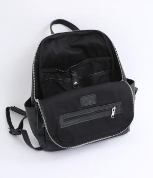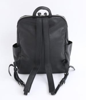 ダブルジッパー牛革バックパック(ブラック-F)