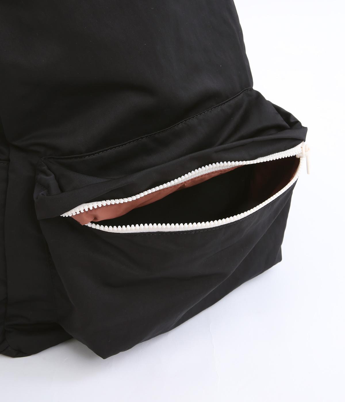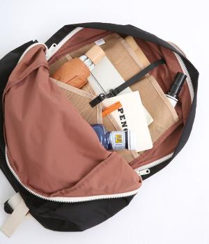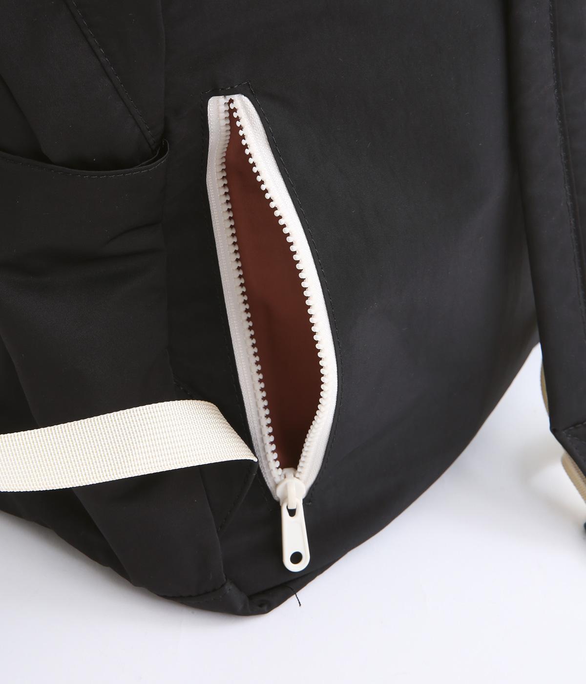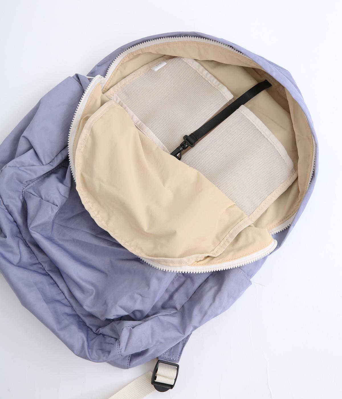 ちょうどいいサイズ感で一泊旅行にも活躍する、ポケットが充実した収納力抜群のリュック。背面には貴重品入れに最適なファスナーポケットつきで海外旅行も安心。白ファスナーがさわやかな印象を運びます。
