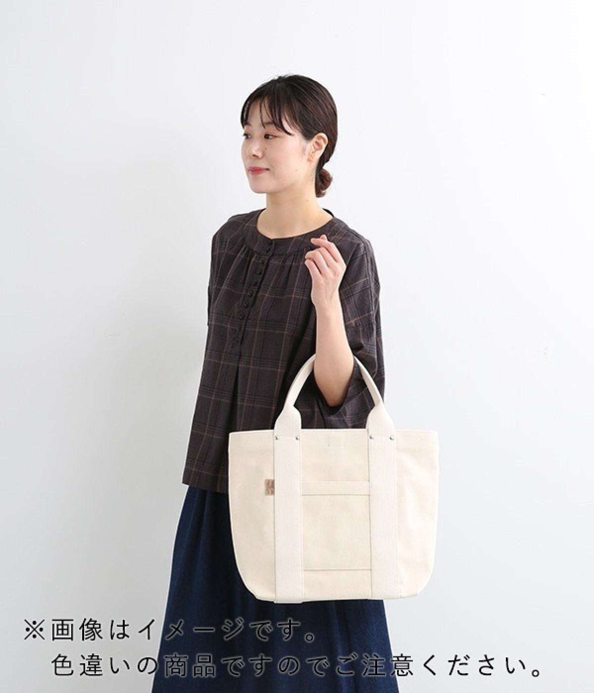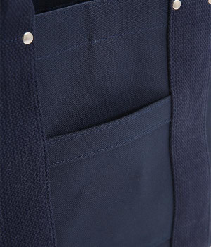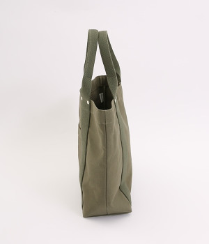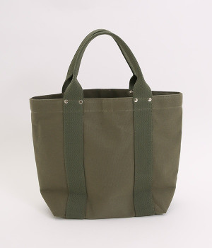 純綿100%の、厚くて丈夫なトートバッグ。岡山県で織られている6号帆布を東京の鞄職人がしっかりと縫い上げた、とてもシンプルなアイテムです。口元を留める「挟みナスカン」や補強のための「ネジ鋲」など細かなパーツにもこだわって作りました。水洗いもOKなので、ごしごし洗って、長く愛用できる逸品です。すっきりとしていてリンネルも入る嬉しいサイズ感は、ちょっとしたお出かけからデイリーまで、幅広く使えます。