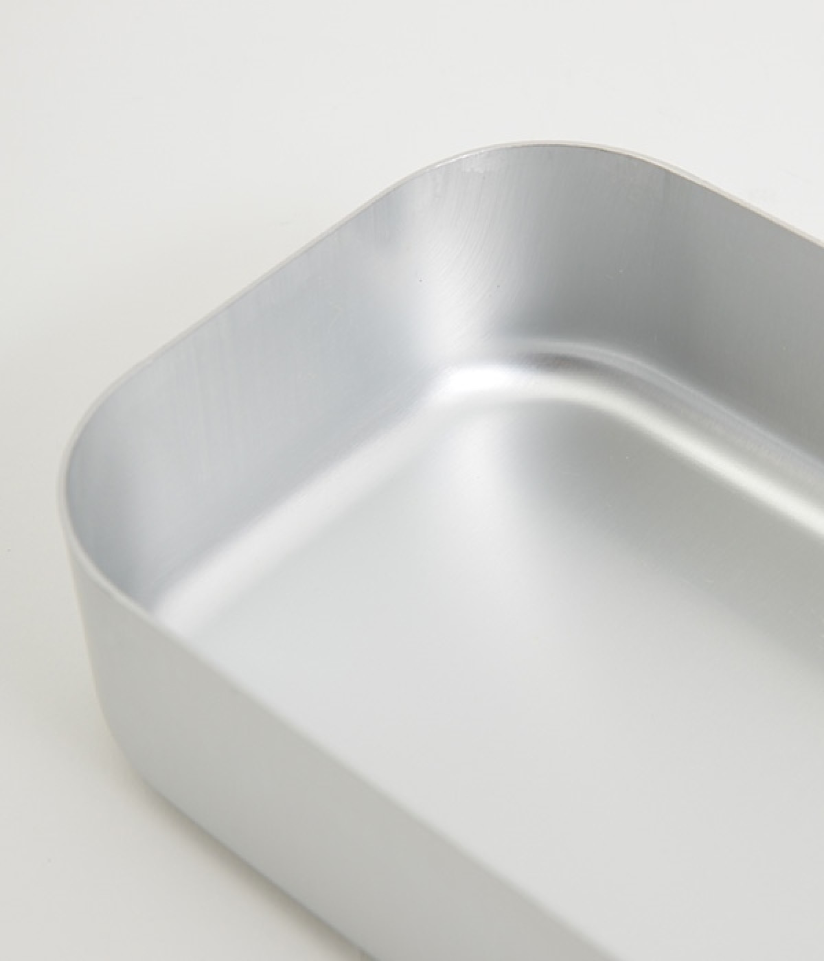 アルマイト処理を施した、マットな光沢を放つ錆びにくいアルミ製の弁当箱です。洗練された飾り気のないつくりで、内部には仕切りなども設けられていないので自由に使い方をアレンジできます。軽くて持ち運びしやすいのも嬉しいポイント◎。飽きのこないシンプルなデザインなので、世代にとらわれず、ユニセックスでご使用いただけます。