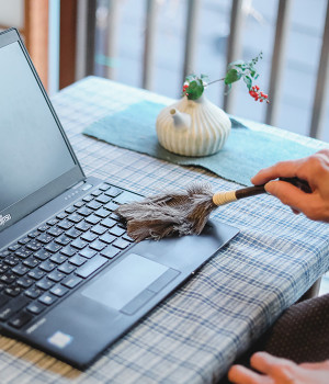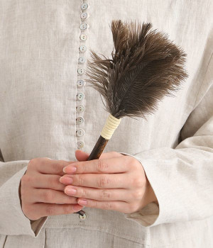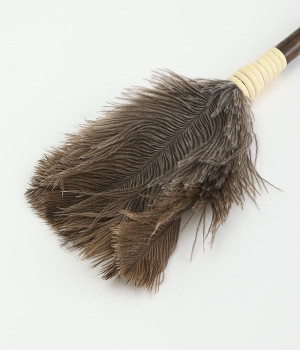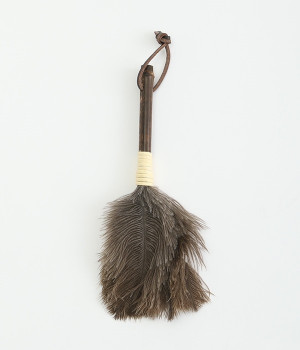 ミニサイズの羽はたきは、パソコンまわりや卓上の掃除におすすめです。ふわふわとした滑らかな触り心地のダチョウの羽根を使い、木製の持ち手で軽量に仕上げました。レザーのヒモがついているので、フックなどにかけて収納可能。出しっぱなしでもインテリアになじむ、味のあるデザインです。力を入れずやさしくひと撫でするだけで、簡単にきれいにすることができます。