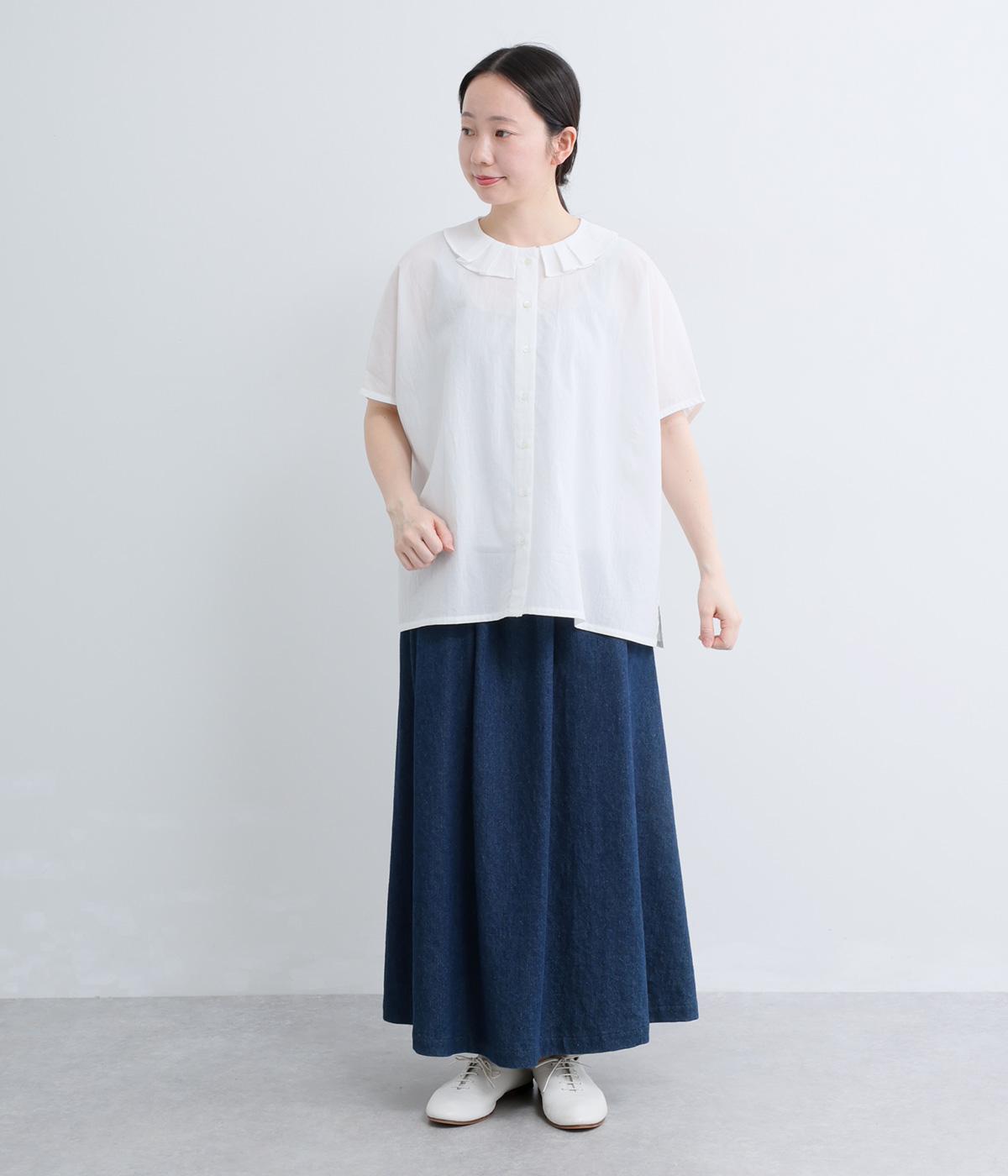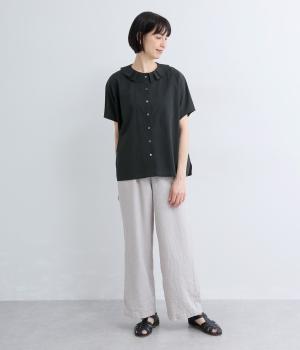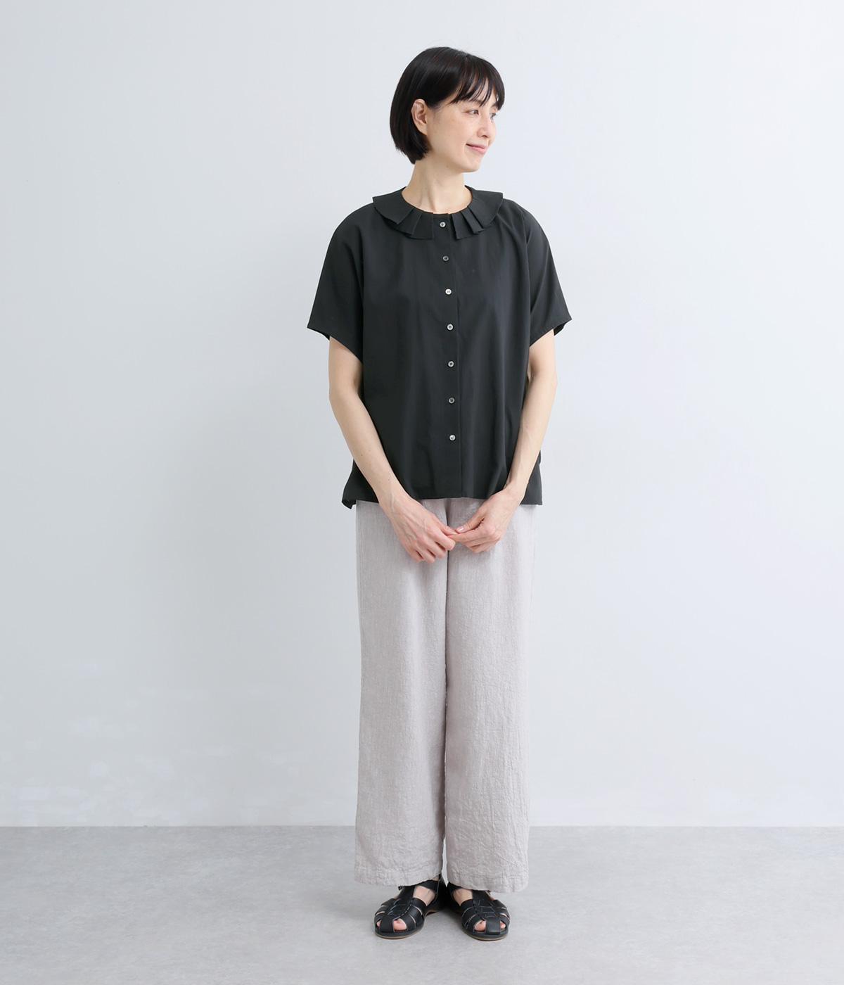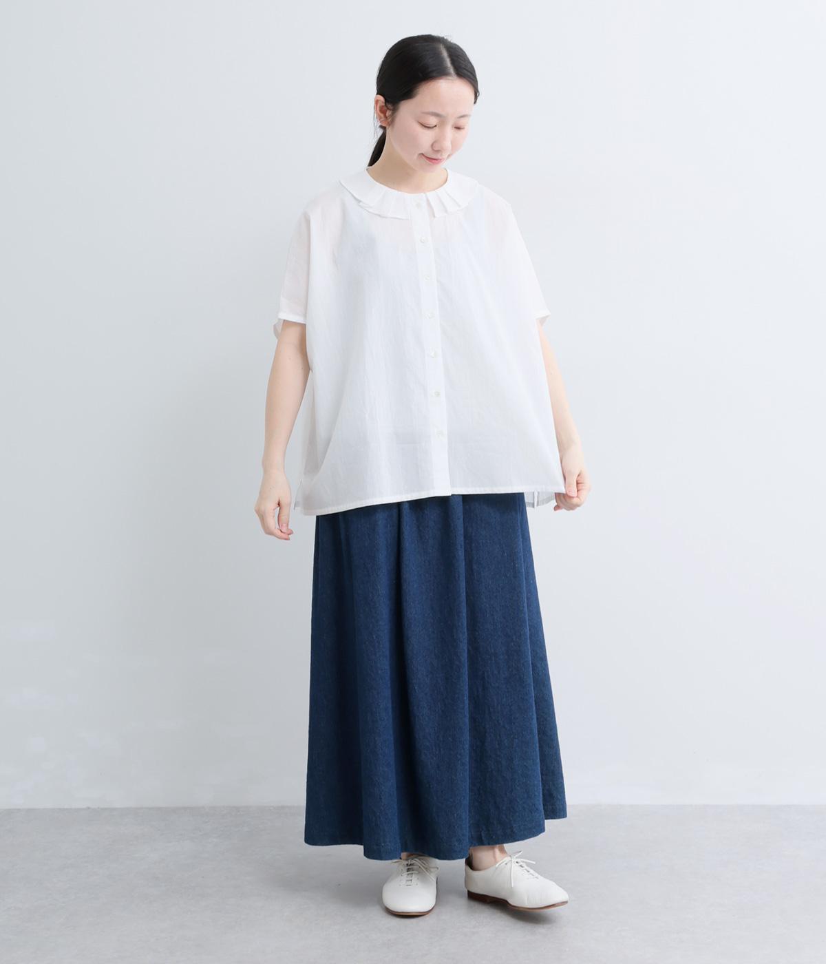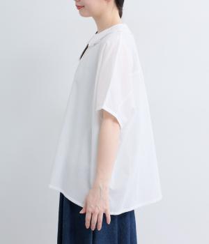 リネンコットンオックス タック襟ブラウス