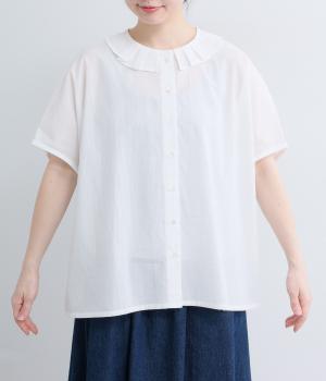コットン混ローンビックカラーブラウス