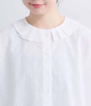 コットンローン 襟タックブラウス