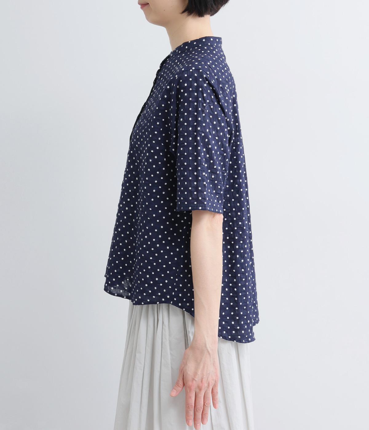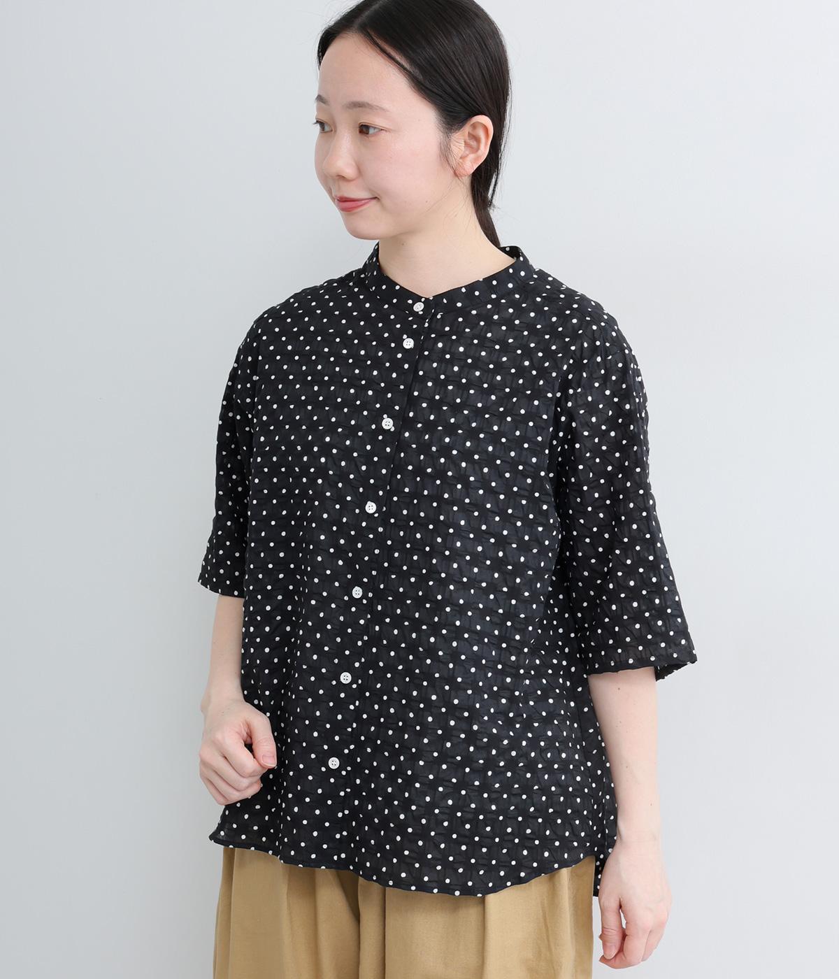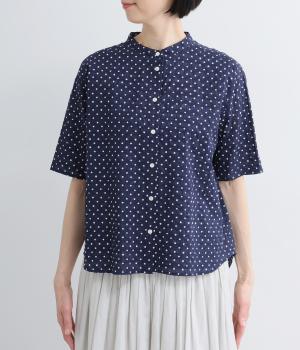 フラワーモチーフバンドカラーシャツ