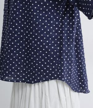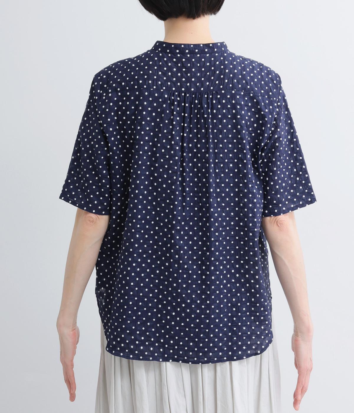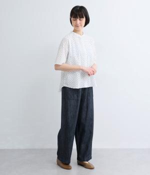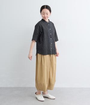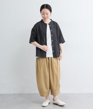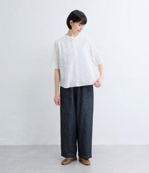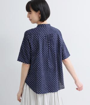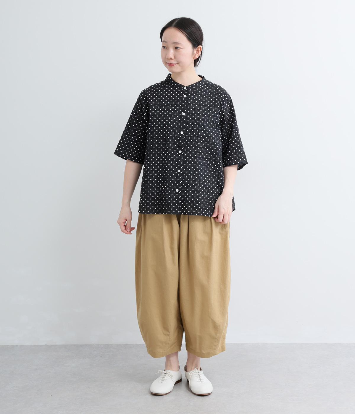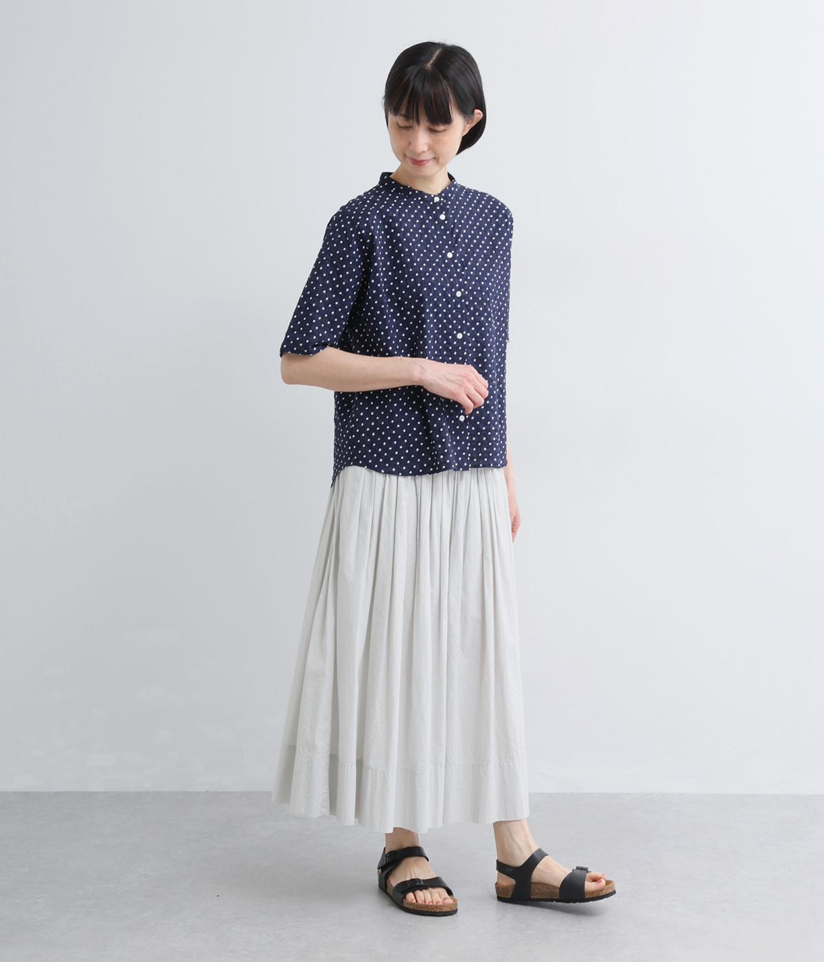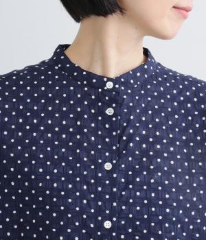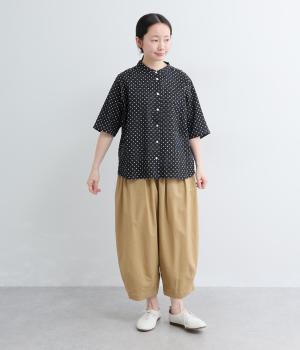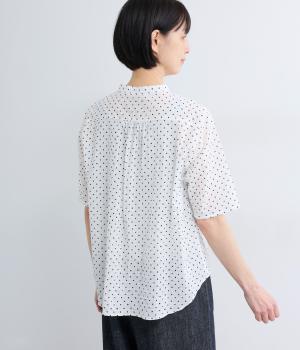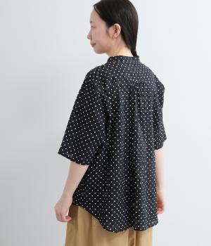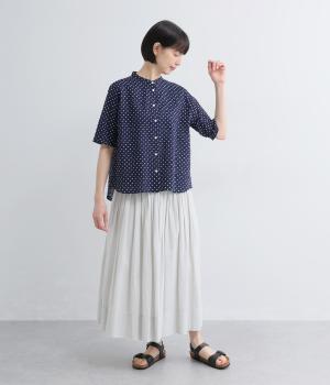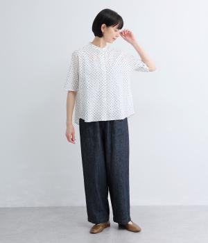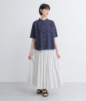 リネン バックギャザーバンドカラーシャツ