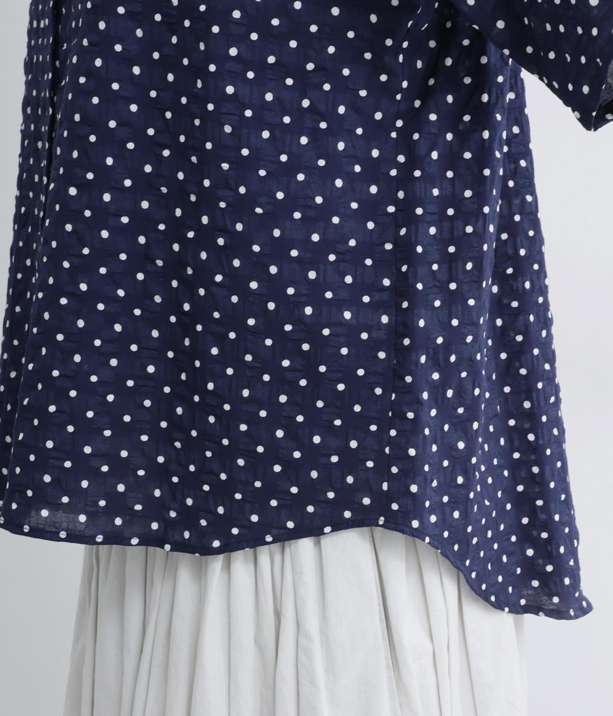 コットンスタンドカラーペプラムシャツ