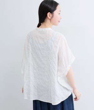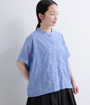クリンクル加工Vネックフリルシャツ