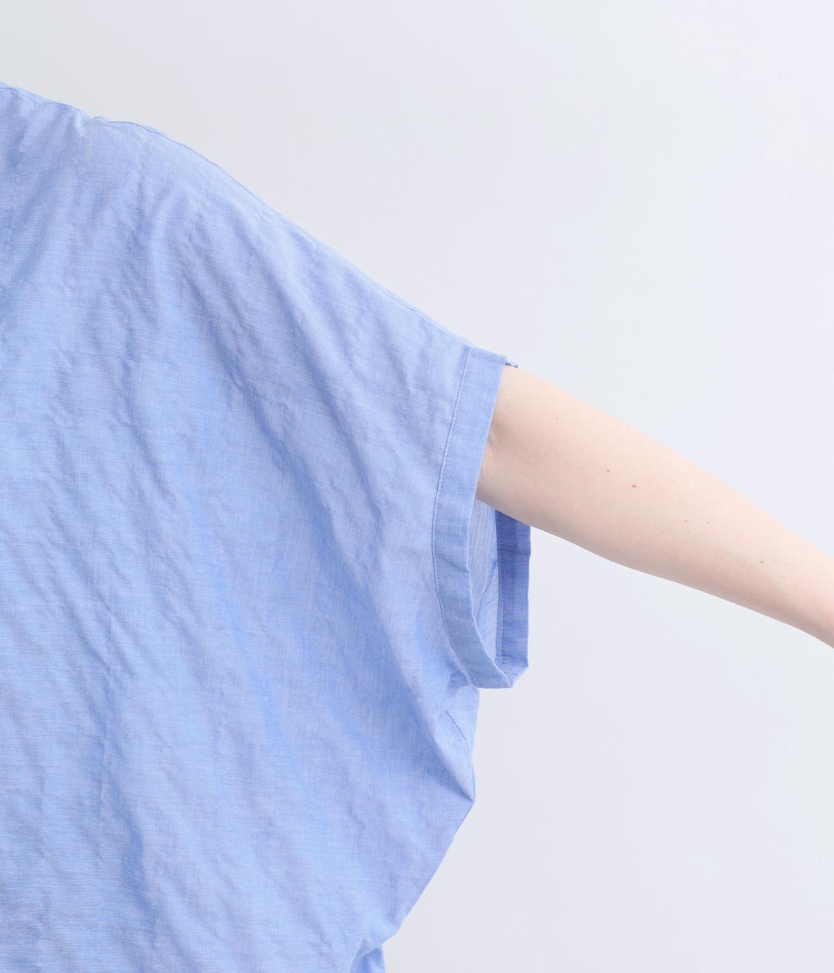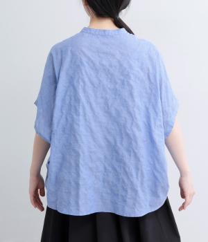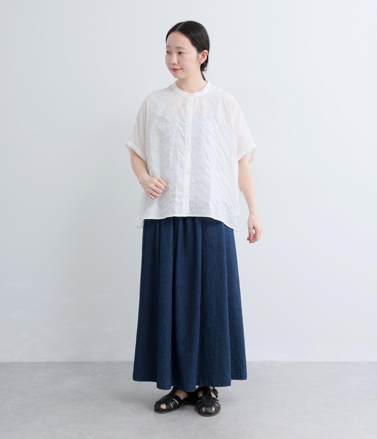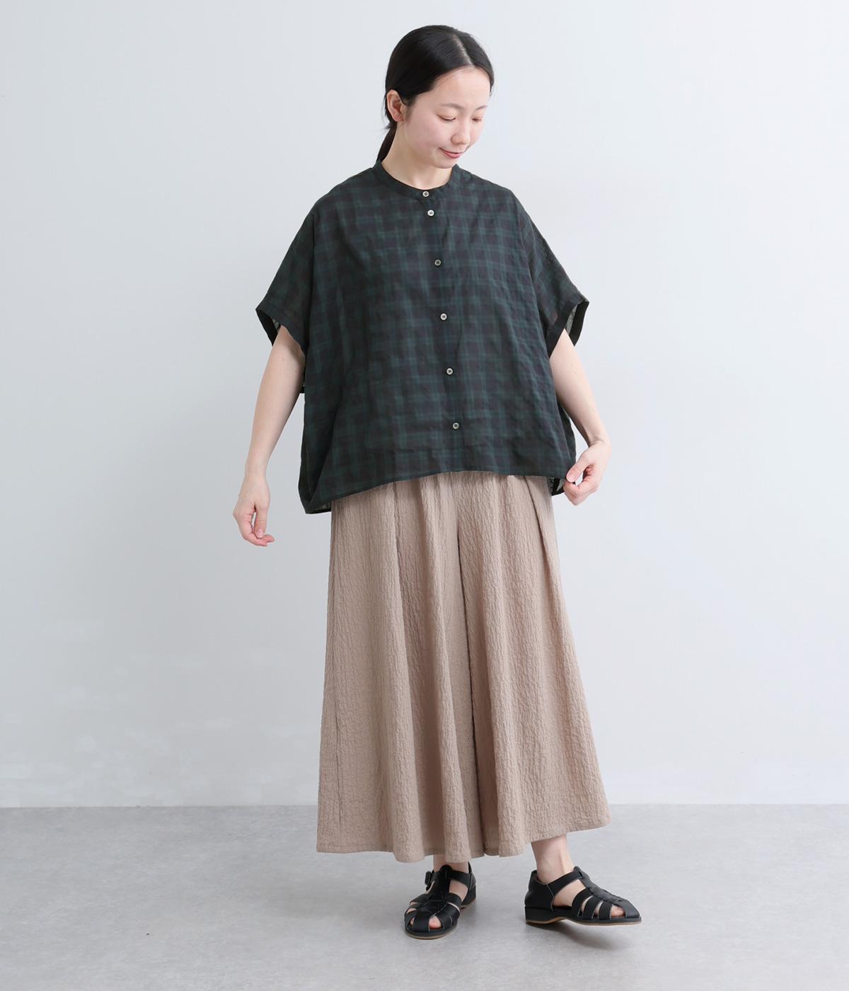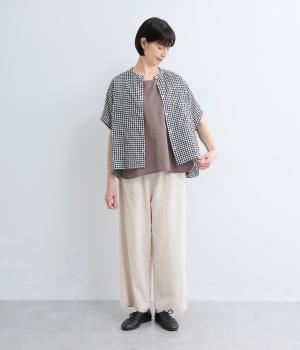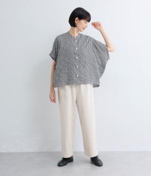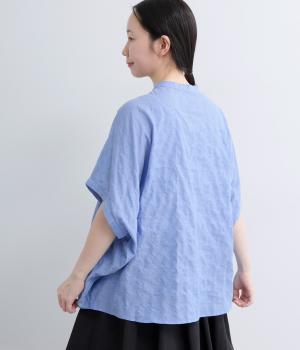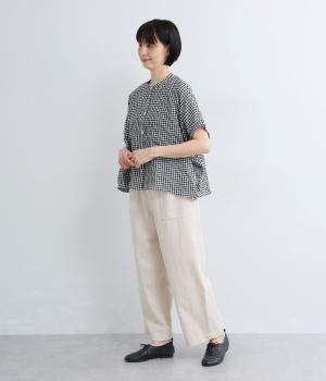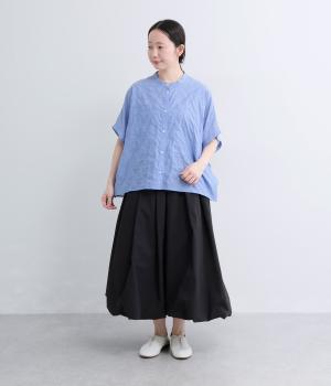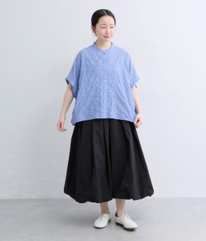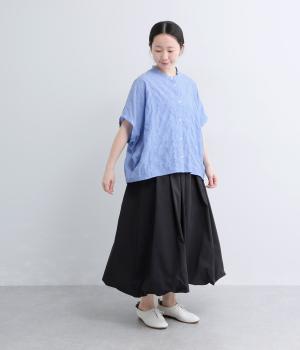 平織り裾リボンシャーリング7分袖シャツ