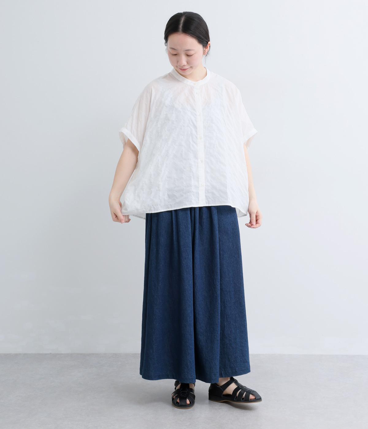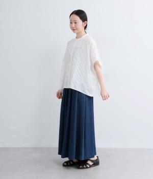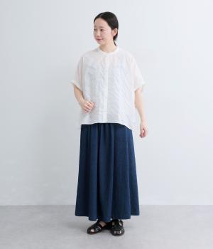 ストライプ×カットワーク刺繍シャツ