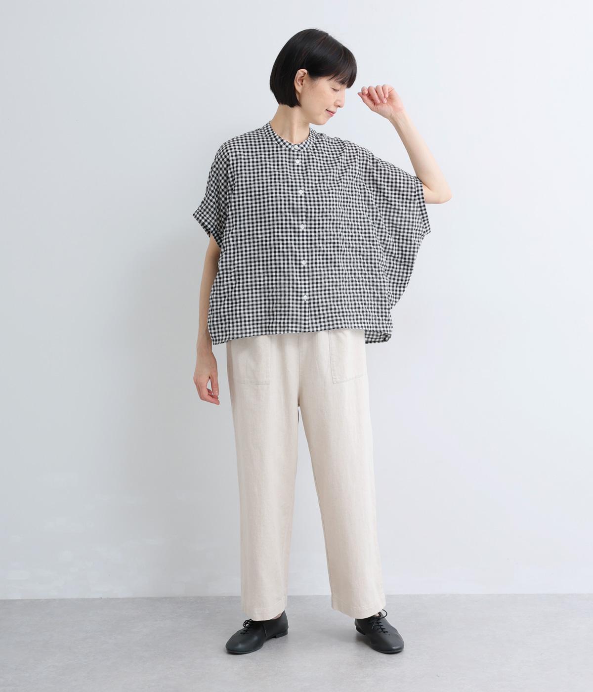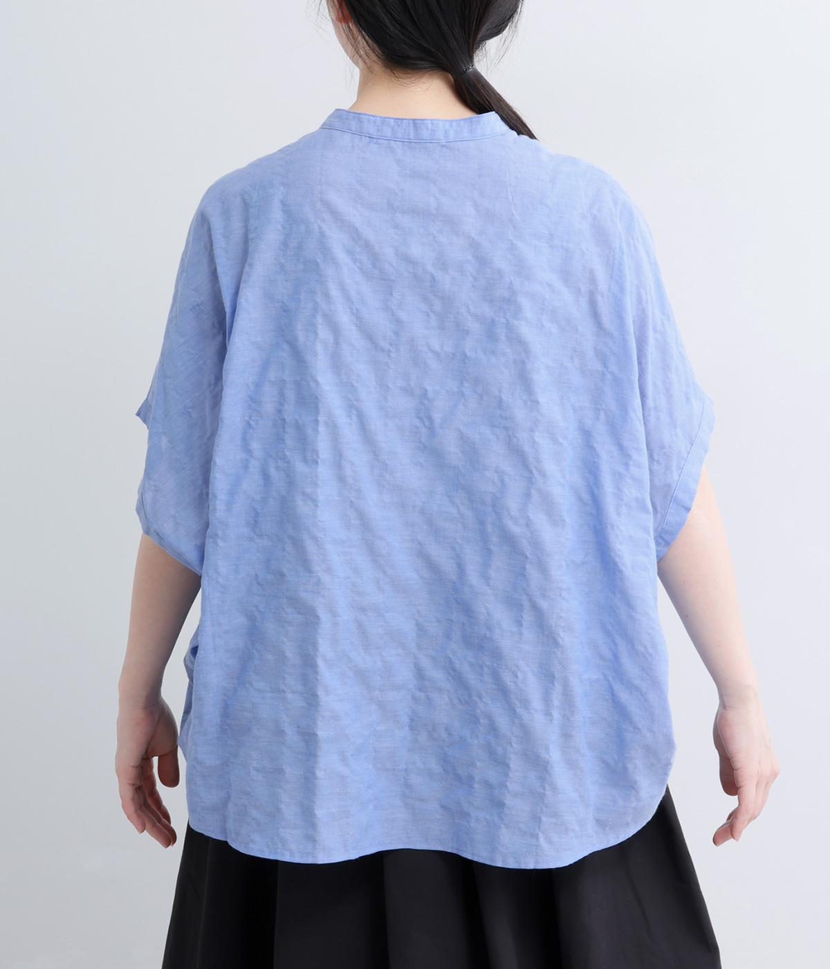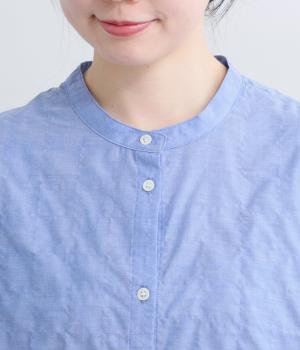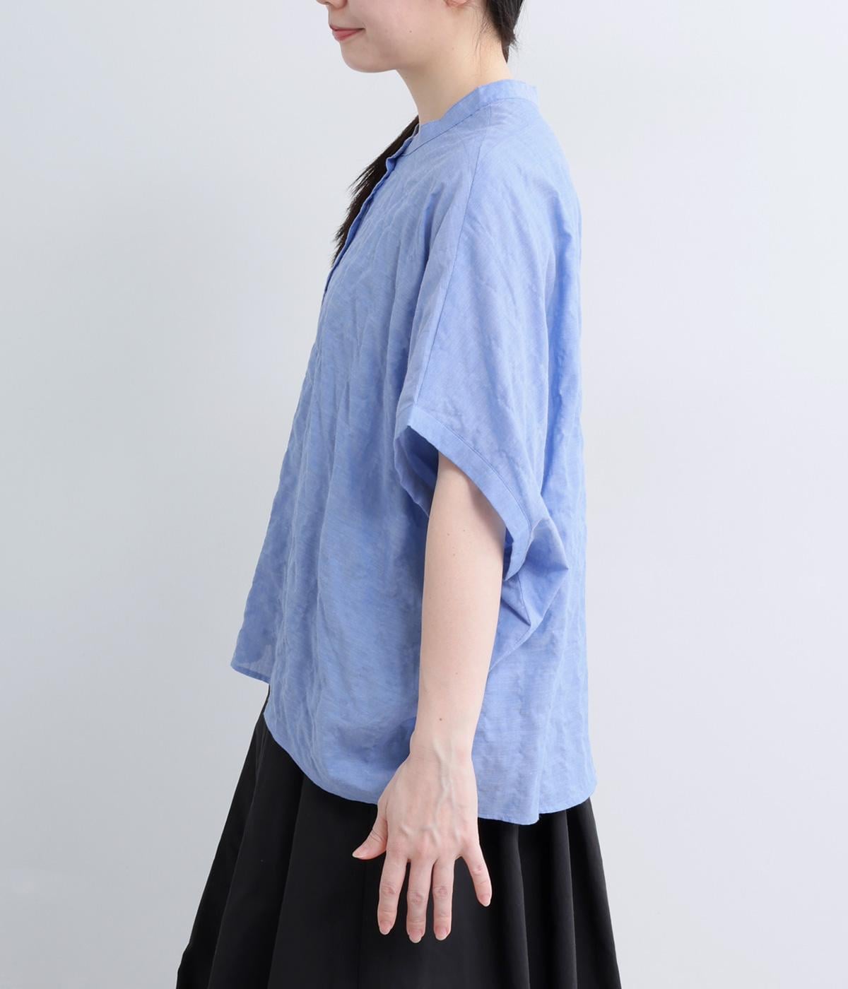 コットンオックスバンドカラー切替シャツ