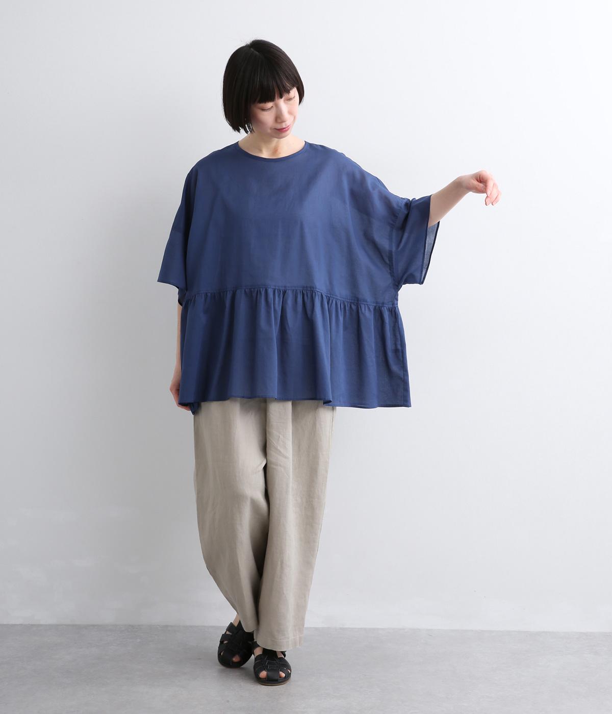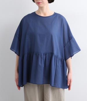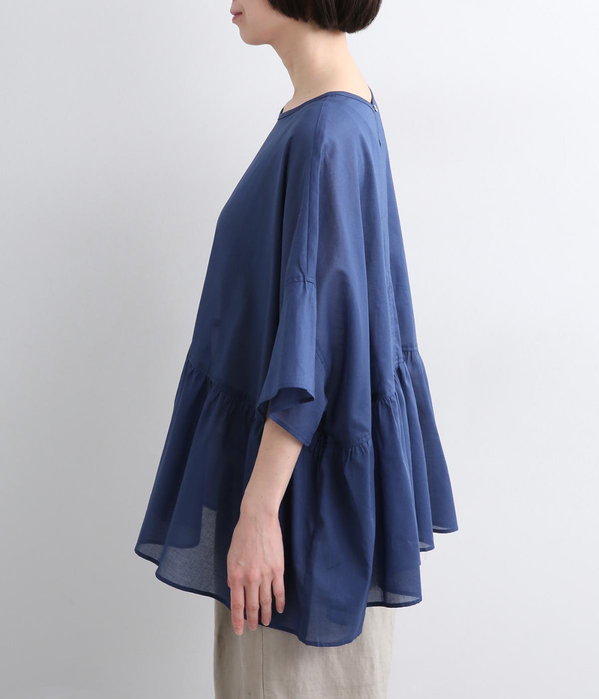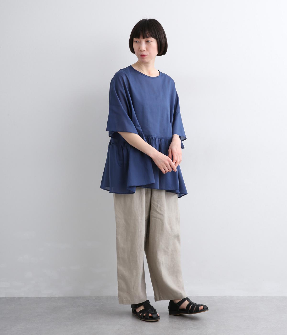 ウエスト切り替えにたっぷりとギャザーをあしらった、ふんわりシルエットのリラクシーなブラウスです。透け感の出る素材が涼しげで、インナー合わせで印象が変わります。バックネックにはシェルボタンをつけて、着脱のしやすさをアップ。
