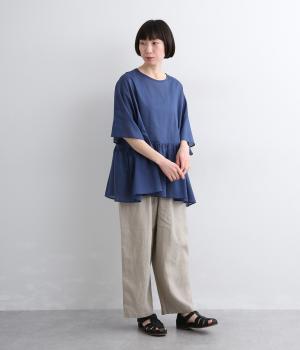 繊細に編み立てた、適度なハリコシのある薄手のコットンローン素材で仕立てました。自然なシワを出すワッシャー加工をほどこすことで、ニュアンスのあるナチュラルな雰囲気を演出。