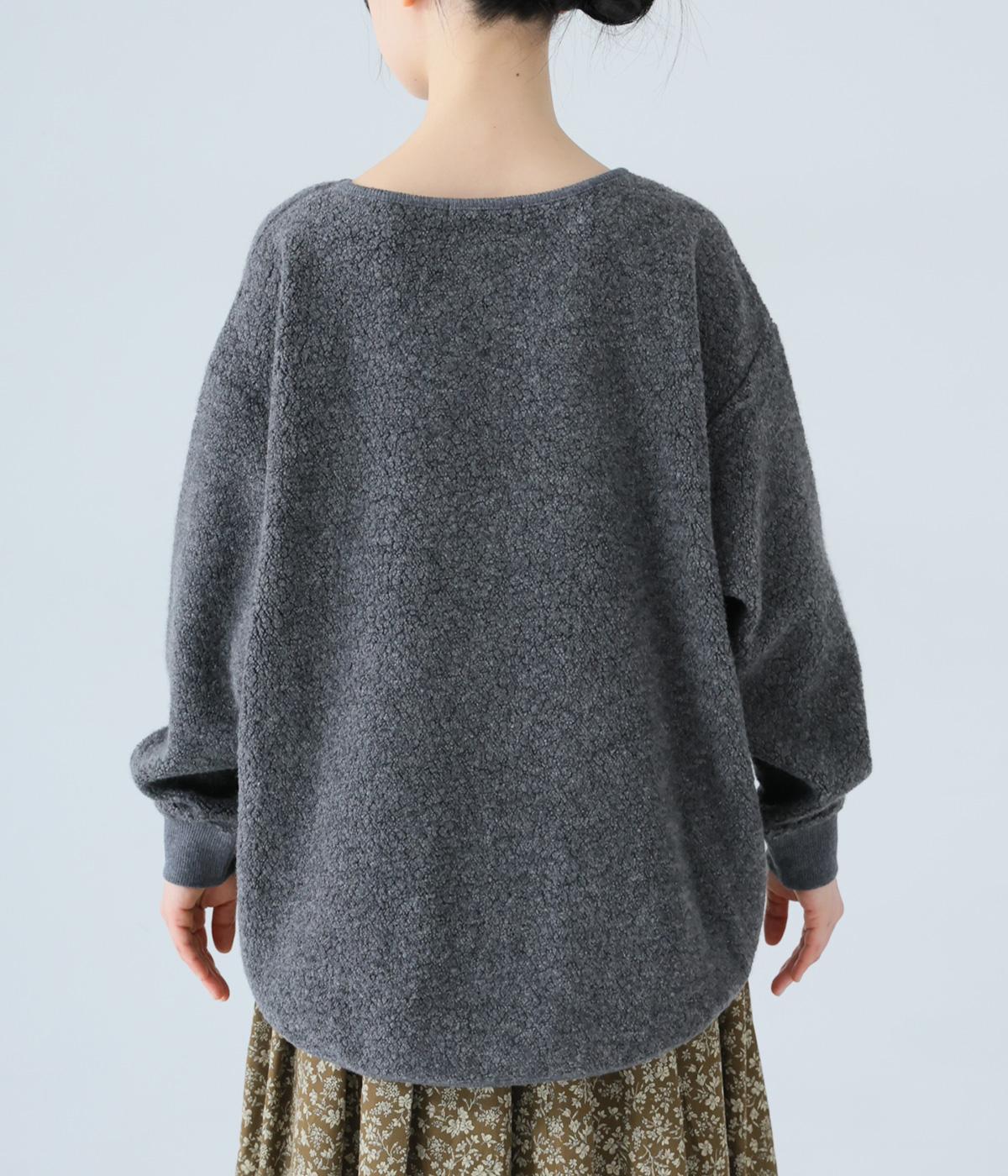 つい触れたくなるような愛らしいボア素材で仕立てたプルオーバー。浅めのネックラインとシンプルなデザインで大人らしく仕上げました。全体にゆとりがありつつも、前後差をつけたラウンドヘムがボトムスとのバランスをすっきりと整えてくれます。