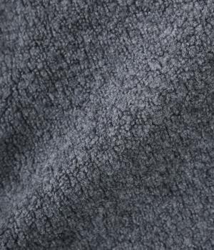 ふんわりとしたやわらかな肌触りが魅力のウール混ボア素材。軽くてあたたかいうえに伸縮性の高さも持ちあわせた、肌寒い時期に快適に着用できる生地感です。