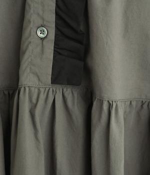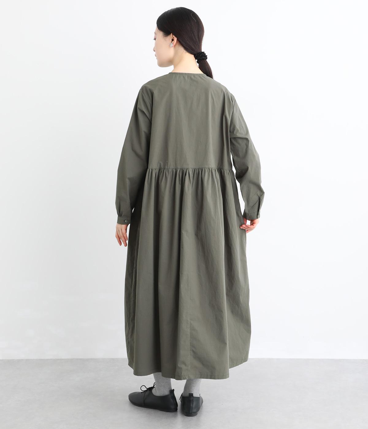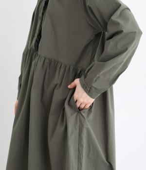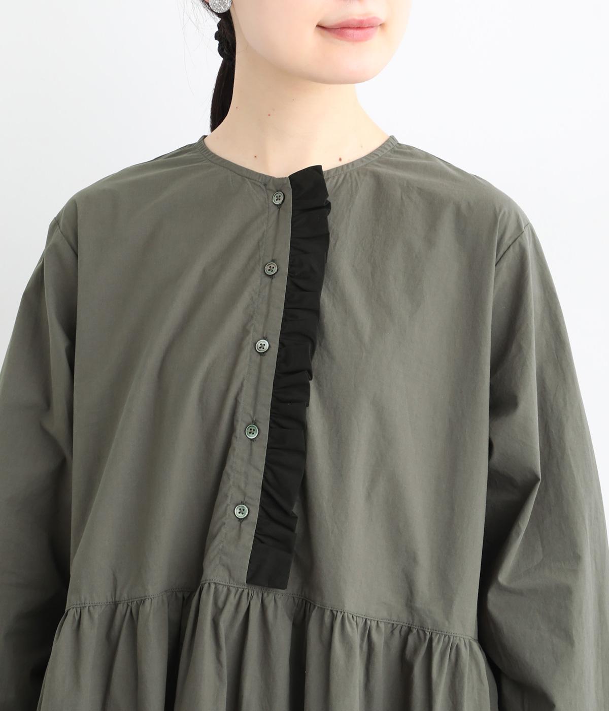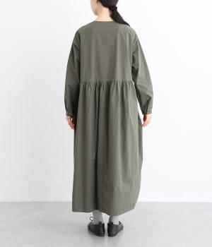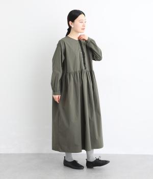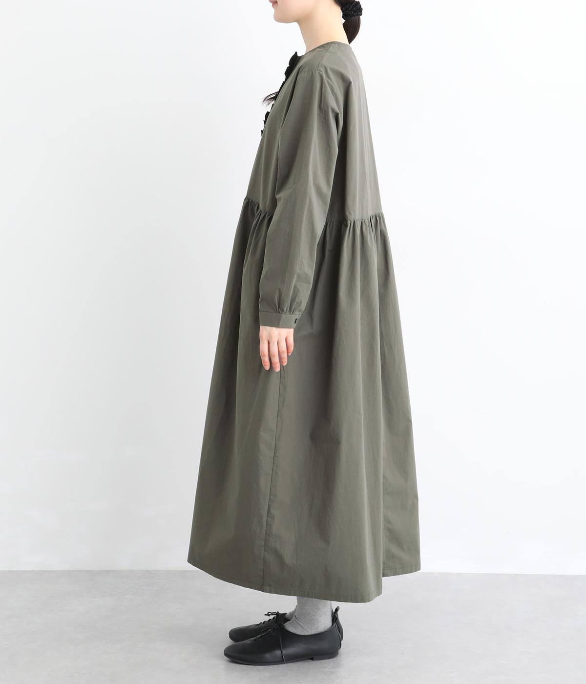 前立てにあしらったフリルが、上品な華やかさを添えるワンピースです。片側のみにフリルを施すことで甘さをおさえ、大人の装いにもなじむ仕上がりに。ウエストから寄せたギャザーがやわらかなシルエットを演出し、きれいめからカジュアルまで、幅広いコーディネートに活躍します。