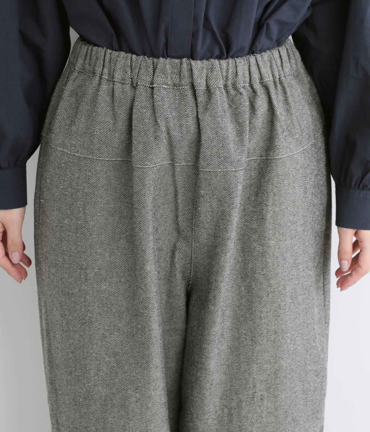 適度に肉感のある、しっかりと丈夫なコットンリネンのツイルを使用しました。リネンの特性をいかしたナチュラルでソフトな風合いです。