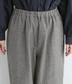 前後に入れたヨーク切り替えを加えたイージーパンツです。ゆったりとした腰まわりで、リラックスして着用できます。着脱が楽な総ゴム仕様のウエストは、内ヒモ仕様なので調節も可能。