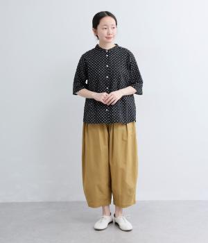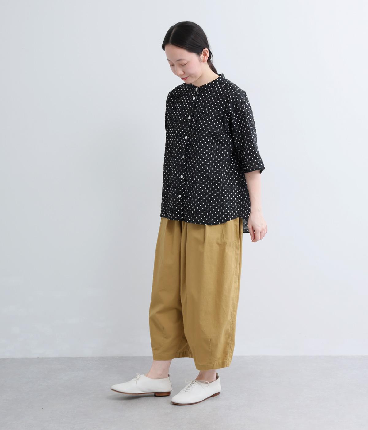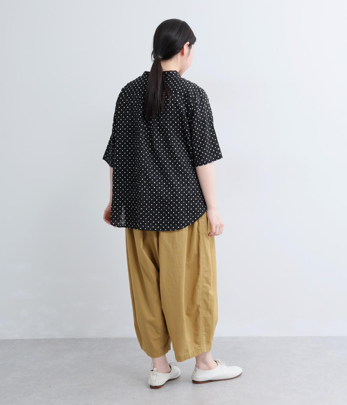 リップルドット バンドカラーシャツ(ブラック×ホワイト)