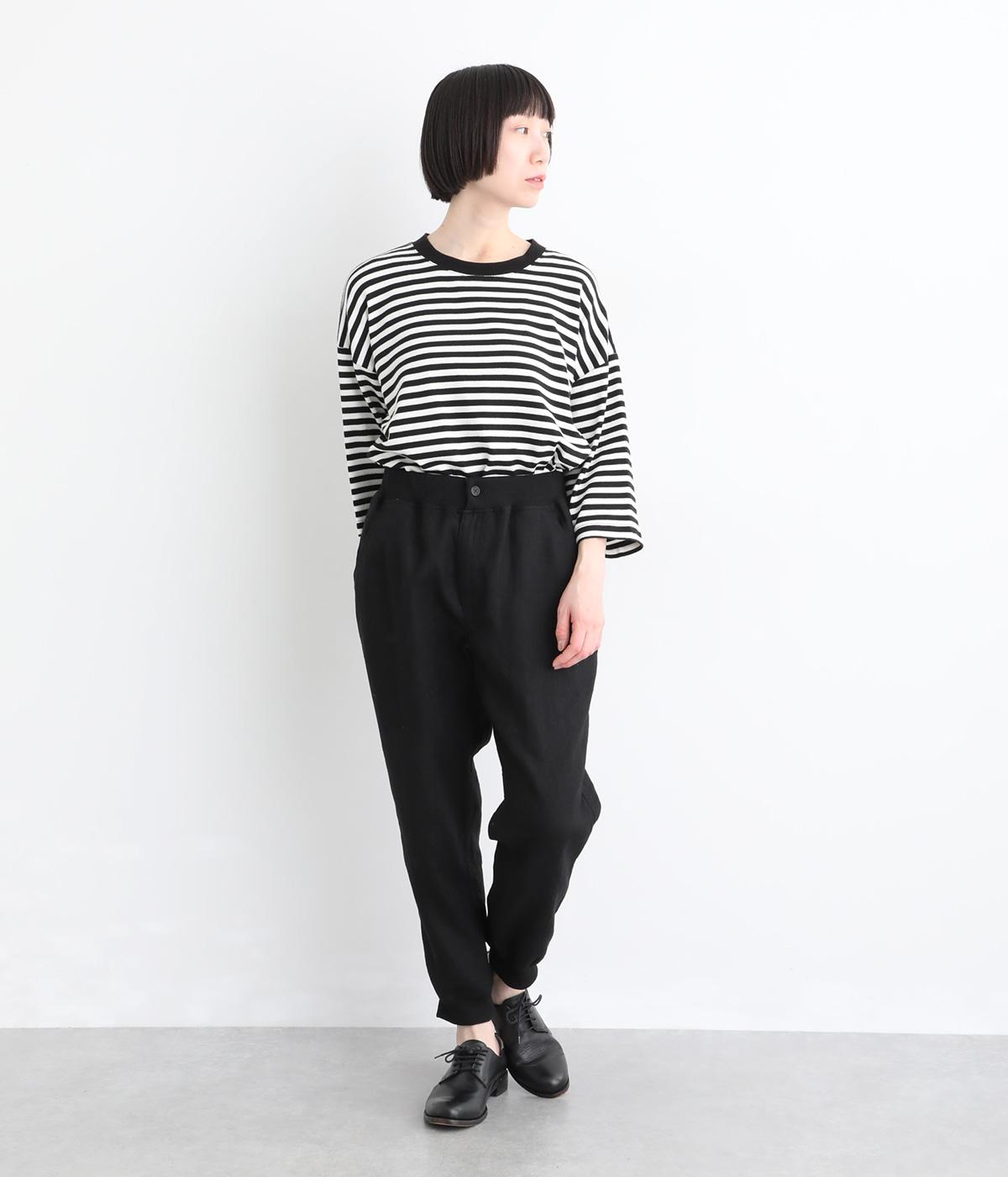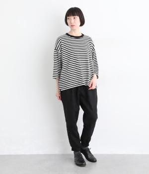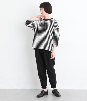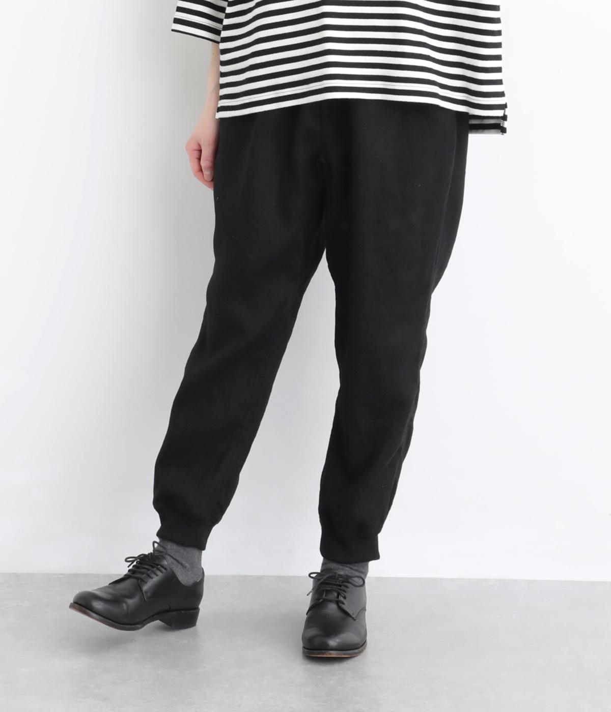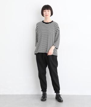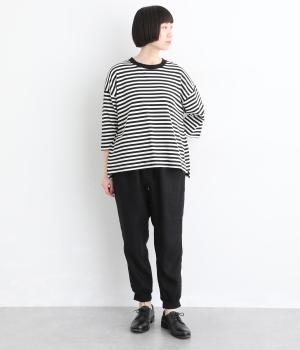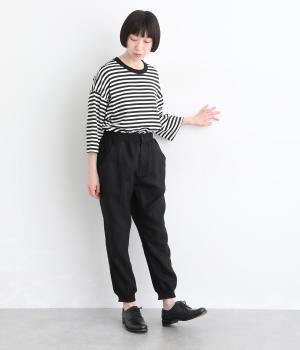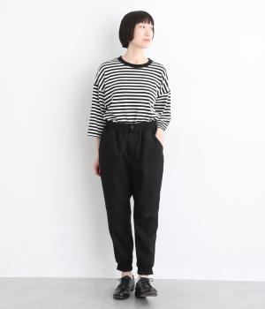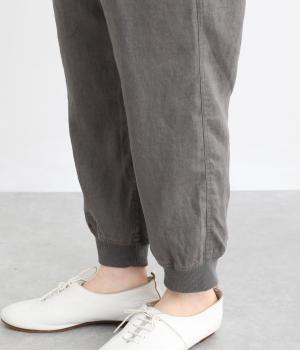ヒップやももまわりにゆとりを持たせた、リラックス感のあるジョガーパンツです。裾に施したリブが全体を引き締め、ほどよく丸みのあるシルエットを演出します。ウエストはゴムと紐仕様で、着脱のしやすさも◎。大人のデイリーコーディネートに取り入れやすい一着です。