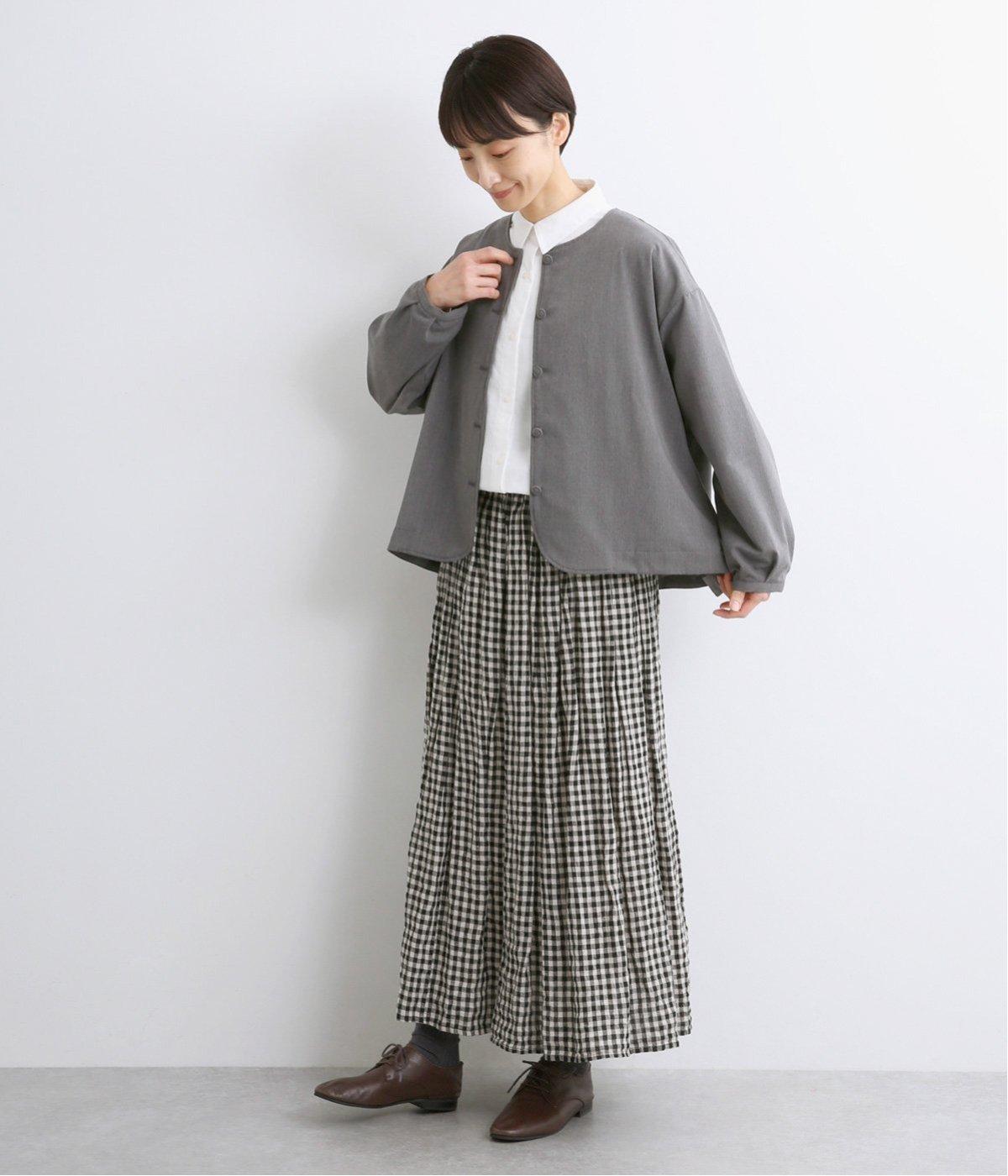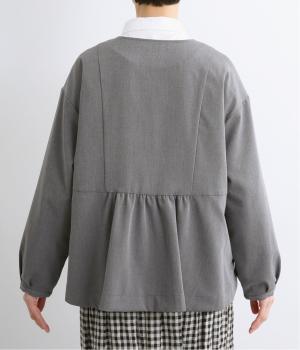 バックギャザーのフレア感やふっくらとした袖でフェミニンテイストに仕上げたジャケット。すっきりとしたノーカラーや前着丈、品のいいくるみボタンできれいめなスタイリングにも◎。きちんと感と華やかさを併せ持った一枚です。
