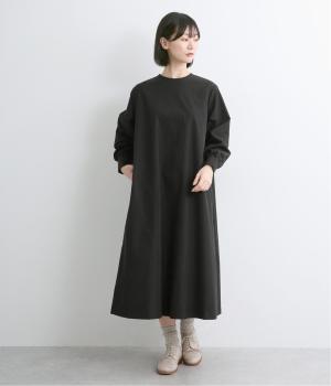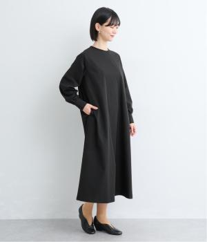 品のいい素材感を活かしてクラシカルにまとめたAラインワンピース。ふわりとした袖にくるみボタンつきカフスが雰囲気を高めます。体のラインを拾いにくいゆとりのある作りに足元をすっきり見せた丈感でバランスも◎。後ろファスナーあきです。