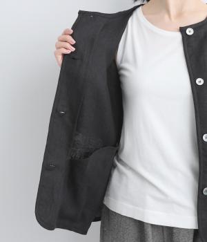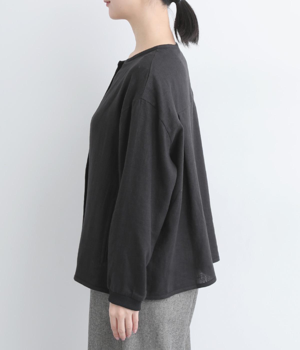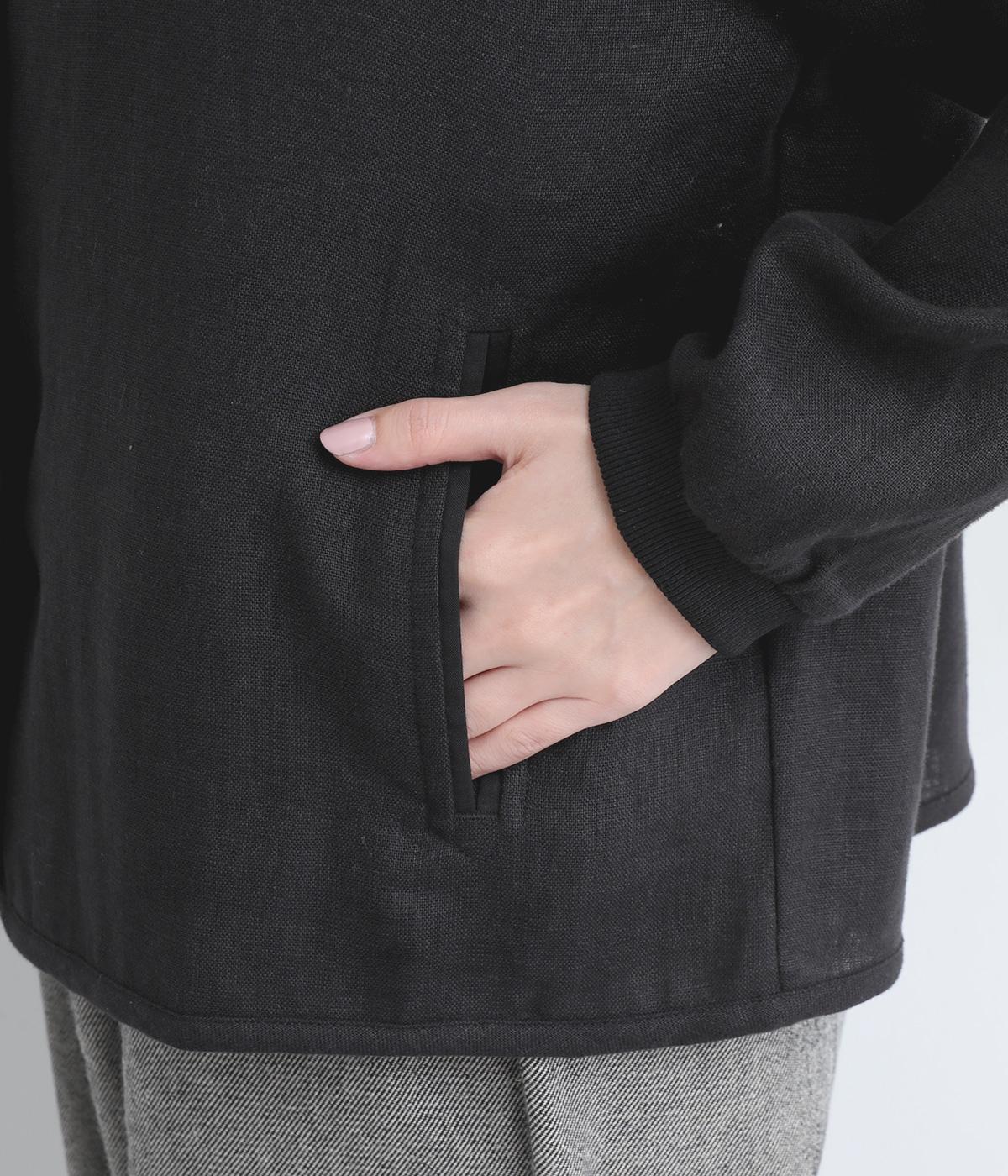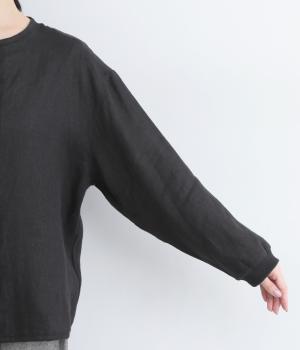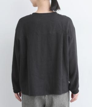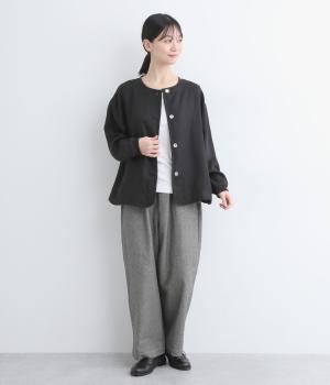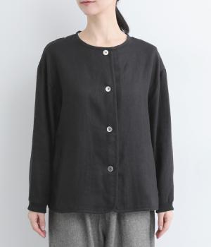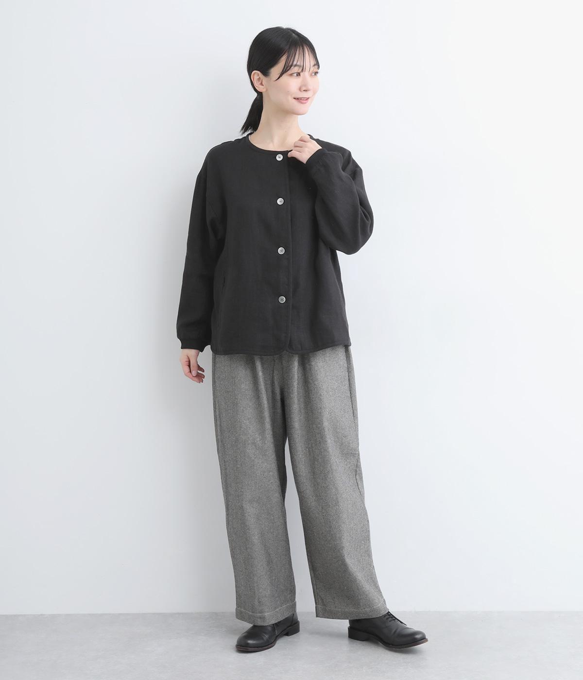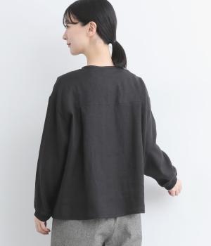 微起毛をほどこした、ソフトな風合いのリネン生地を使用しました。やわらかくナチュラルな表面感が特徴です。袖口はストレッチのきいたリブで切り替えました。