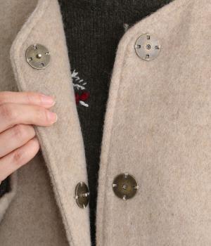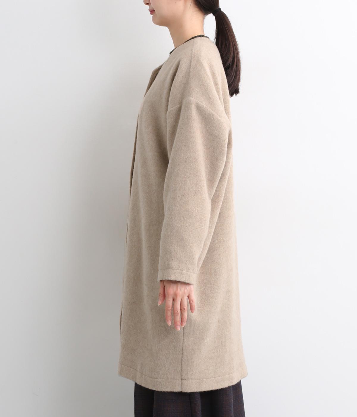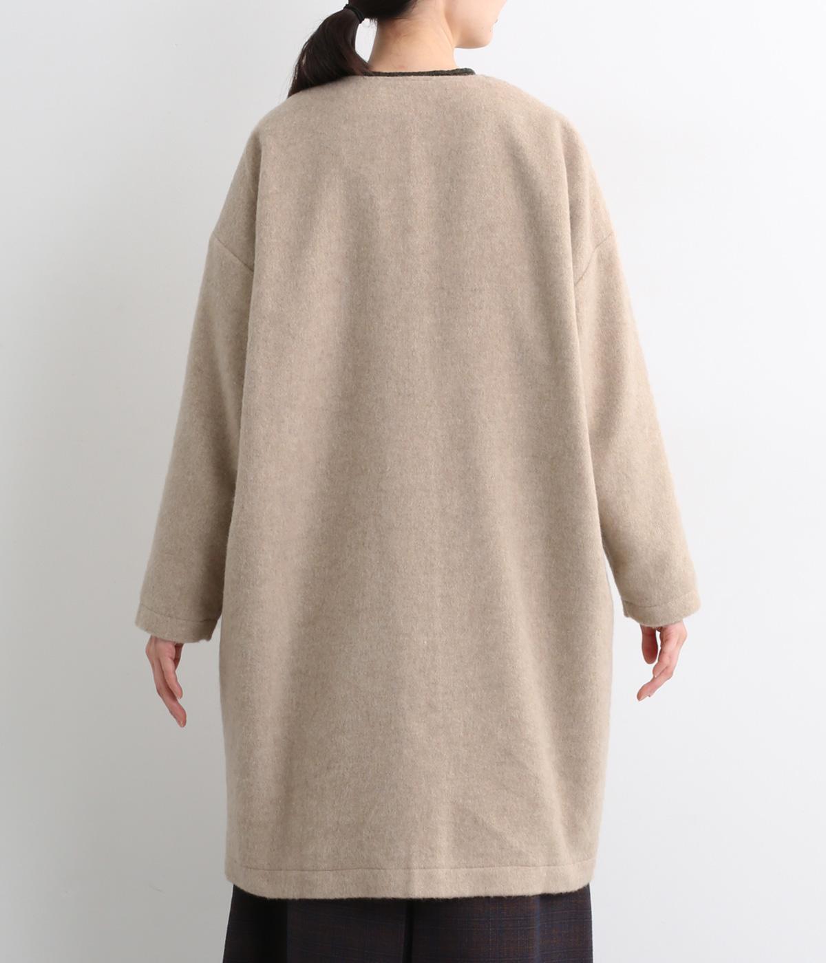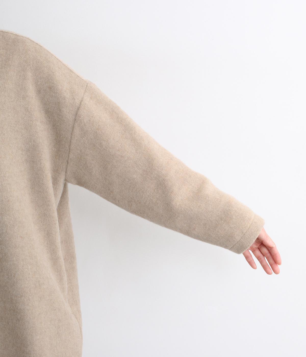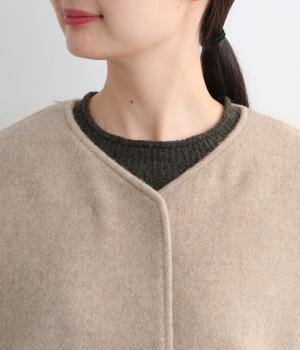 リサイクルウールを用いたビーバー素材を使用。ふんわりなめらかな肌ざわりで、起毛感と光沢感を備えたあたたかい生地です。すべりの良い裏地つきで袖通りも快適。