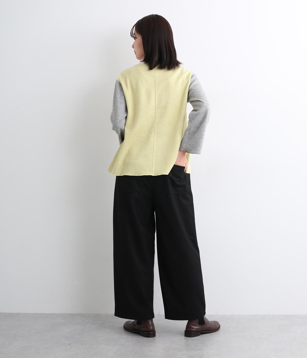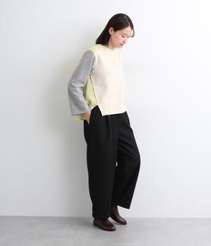 ほどよい厚みとあたたかさを備えたウール混素材。ふんわりとした風合いながら軽いはき心地です。ウォッシャブル仕様なので、ご自宅で手洗いができるのもうれしい。
