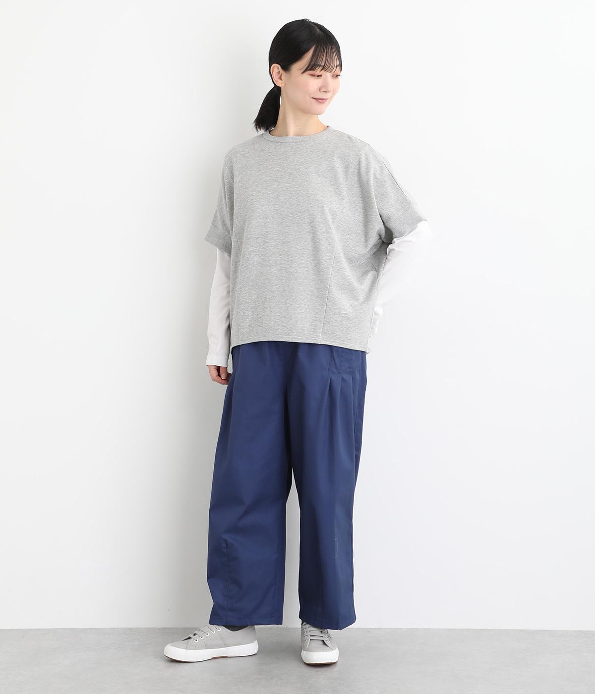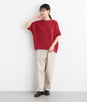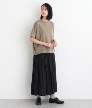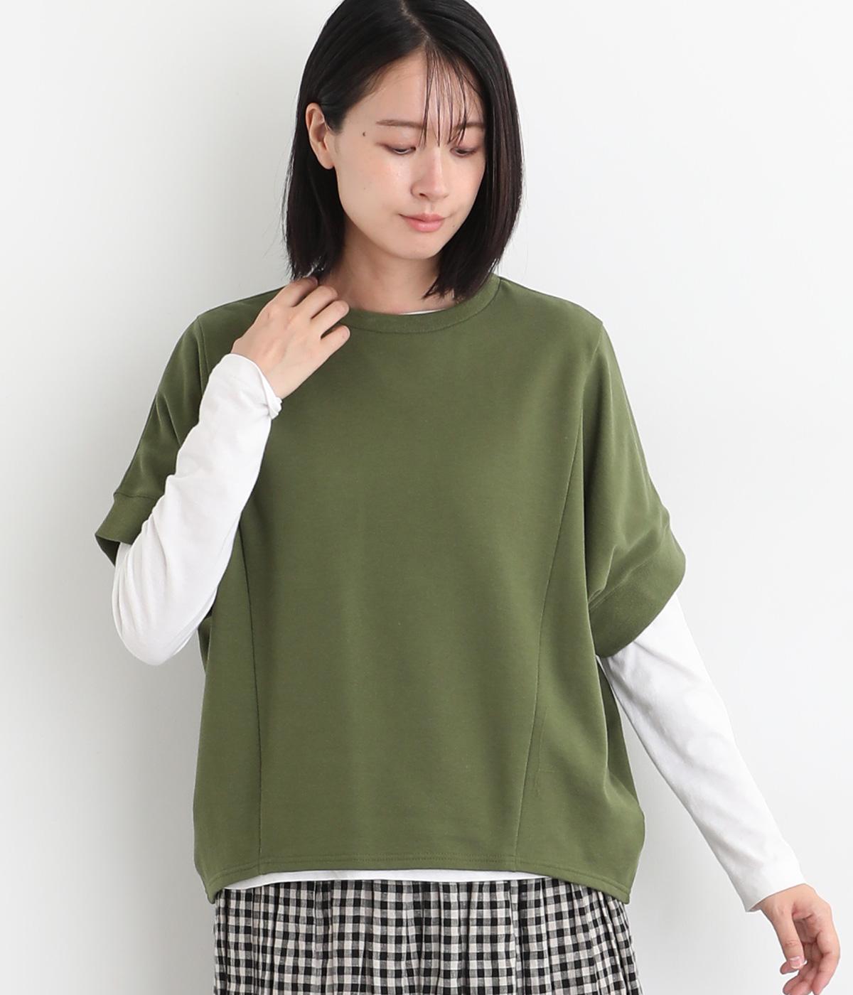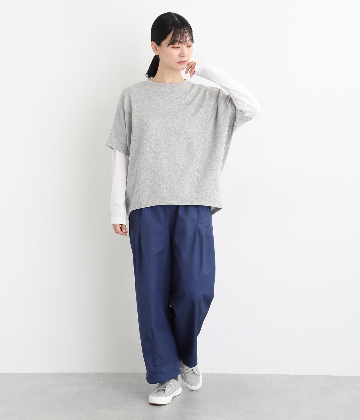 ゆとりを持たせた身頃つづきのドルマンスリーブが特徴的なプルオーバーです。シャツなどの上に重ねてベスト感覚に、一枚着で五分袖のプルオーバーに、と着こなしによって長い期間たのしめる万能な一枚。前後差をつけた着丈もポイント。