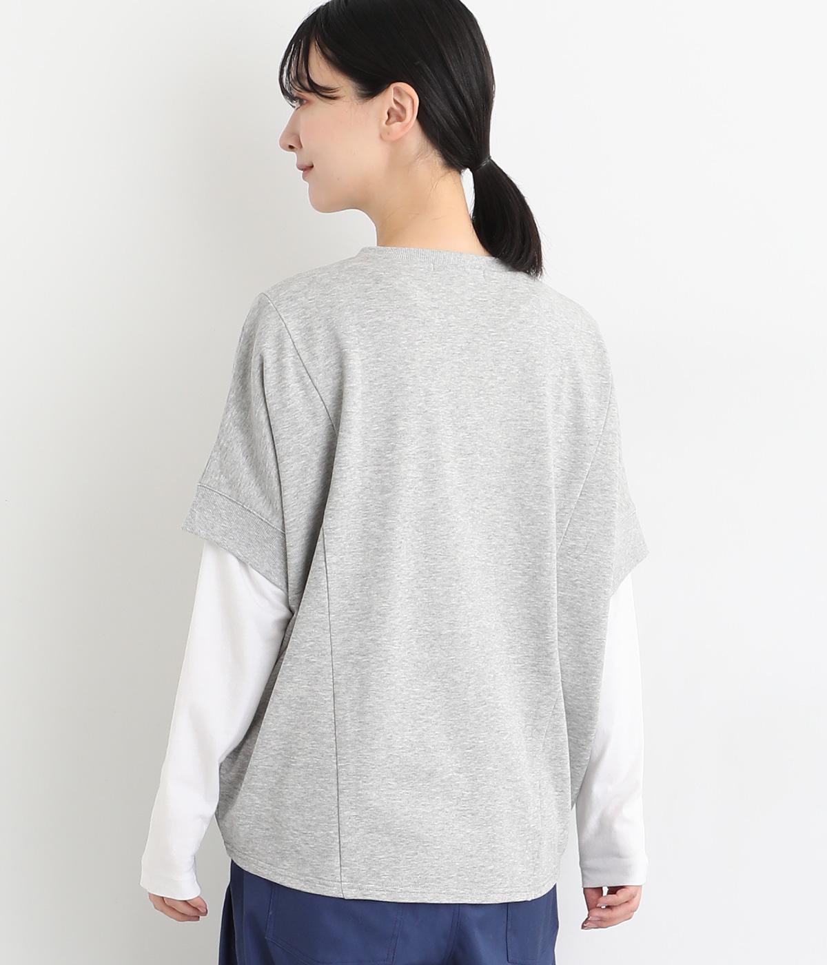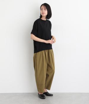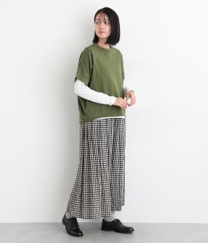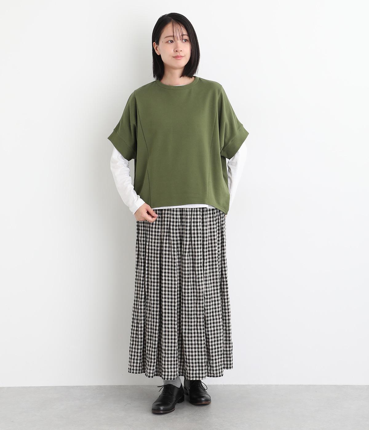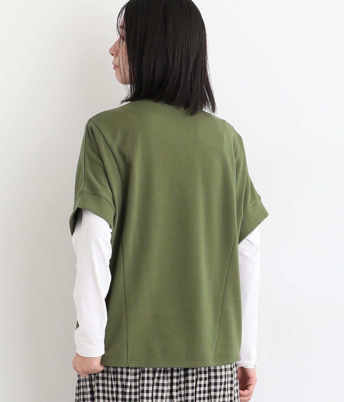 ゆとりを持たせた身頃つづきのドルマンスリーブが特徴的なプルオーバーです。シャツなどの上に重ねてベスト感覚に、一枚着で五分袖のプルオーバーに、と着こなしによって長い期間たのしめる万能な一枚。前後差をつけた着丈もポイント。