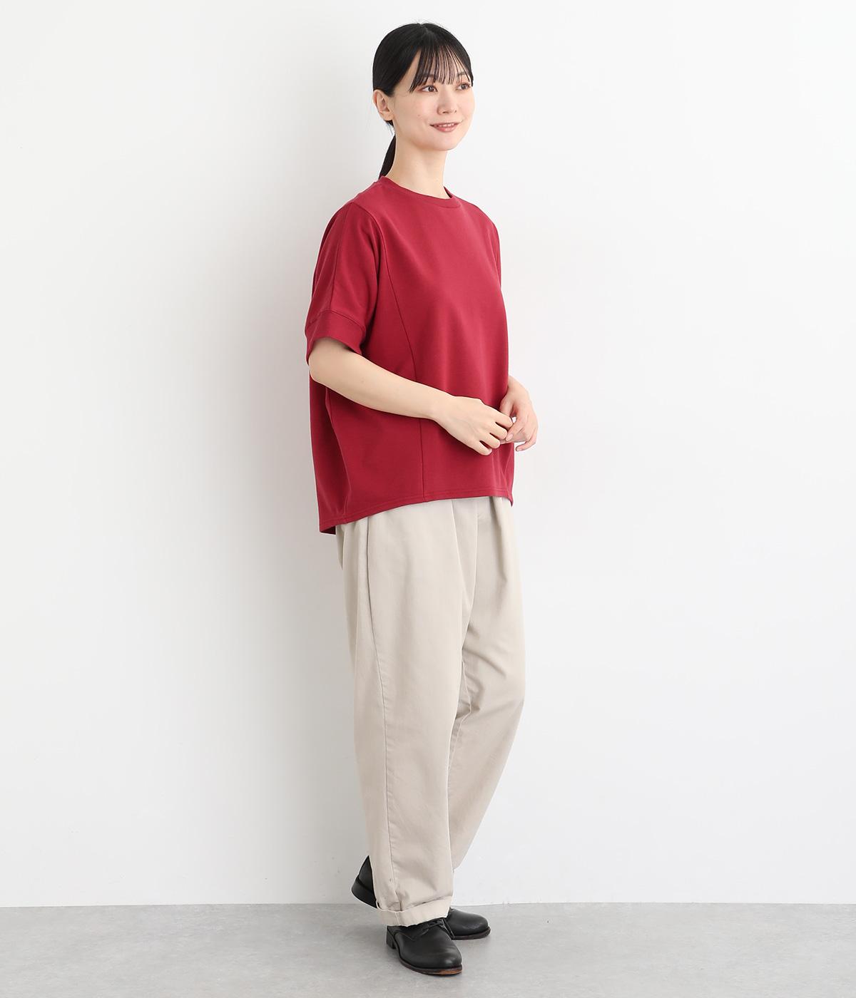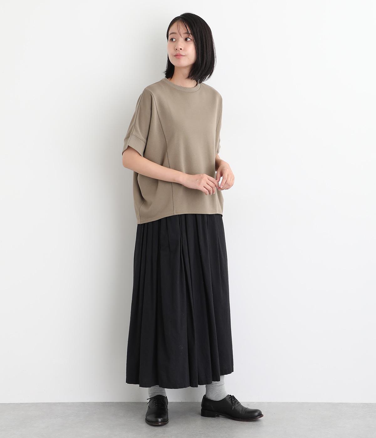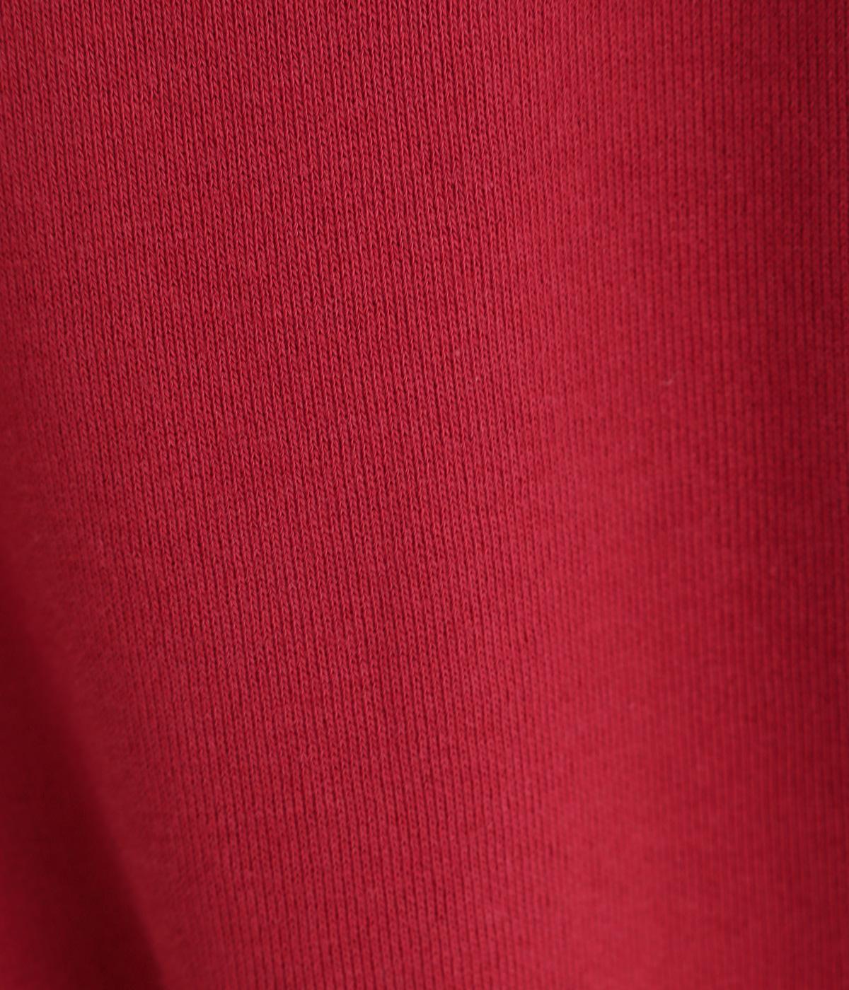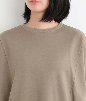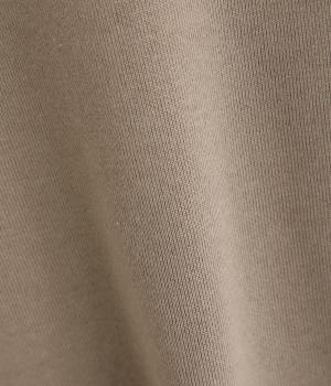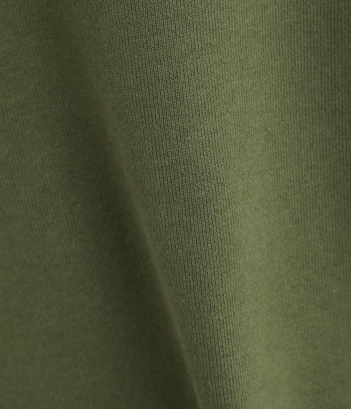 ソフトで着心地のいい中厚手のコットンスウェットを使用しました。裏面のループが小さい裏毛生地で、肌あたりが良く軽い生地感です。