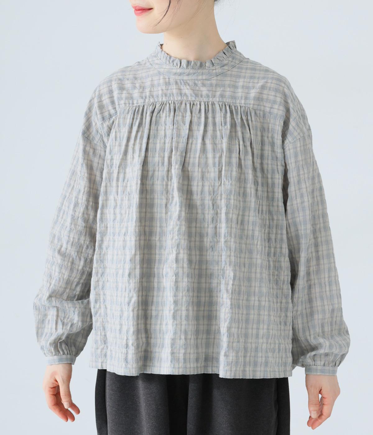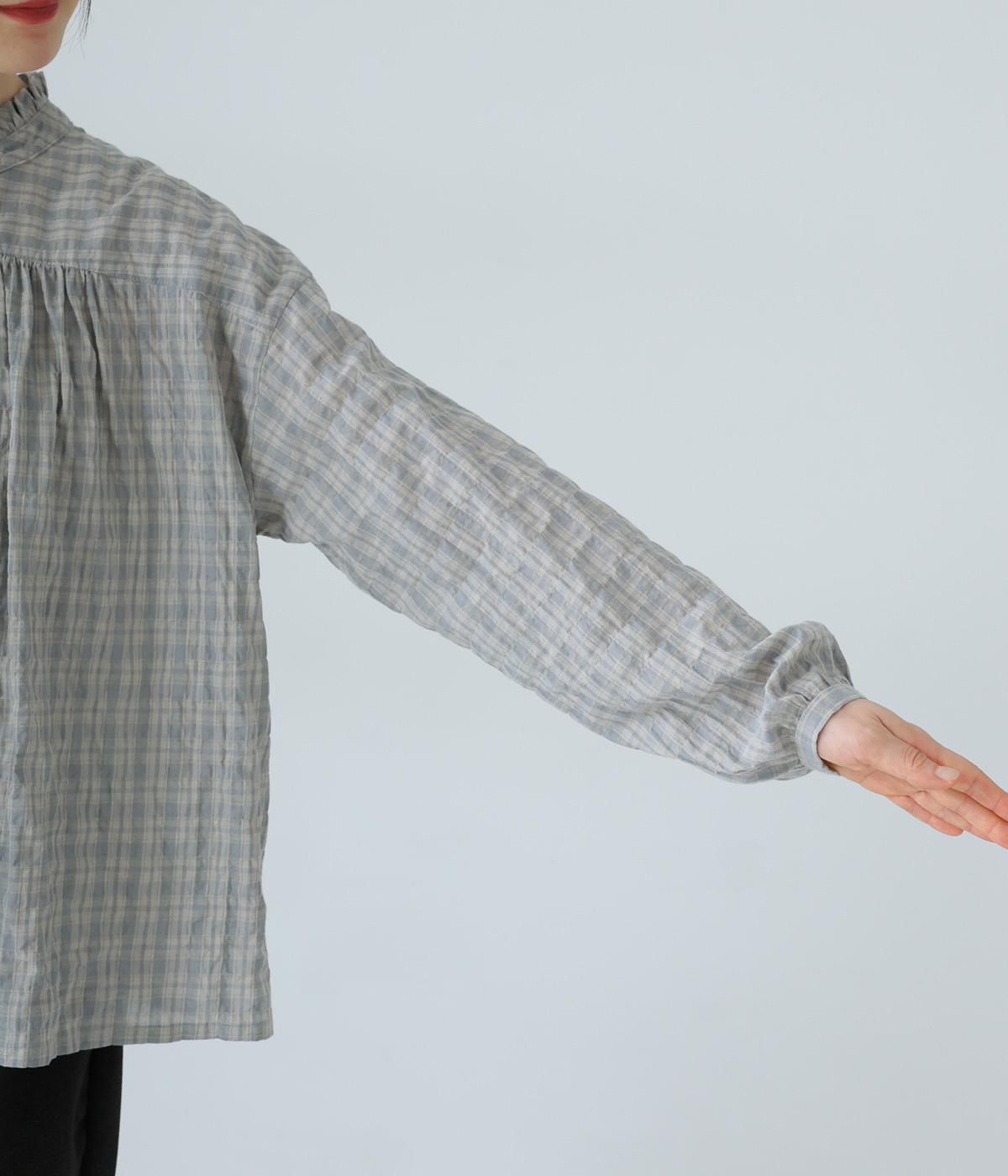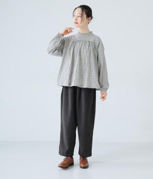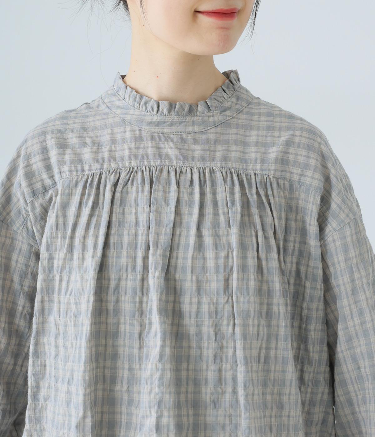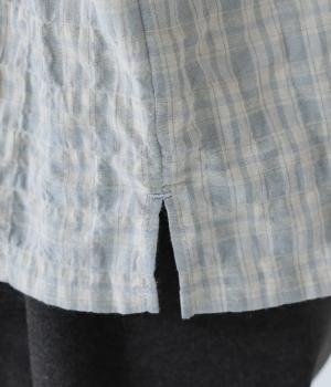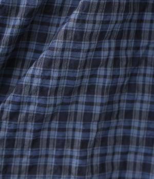 クシュっとした薄手のシャーリング生地にチェック柄をあしらいました。コットンならではの軽やかさと通気性の高さを存分に味わえる生地感です。