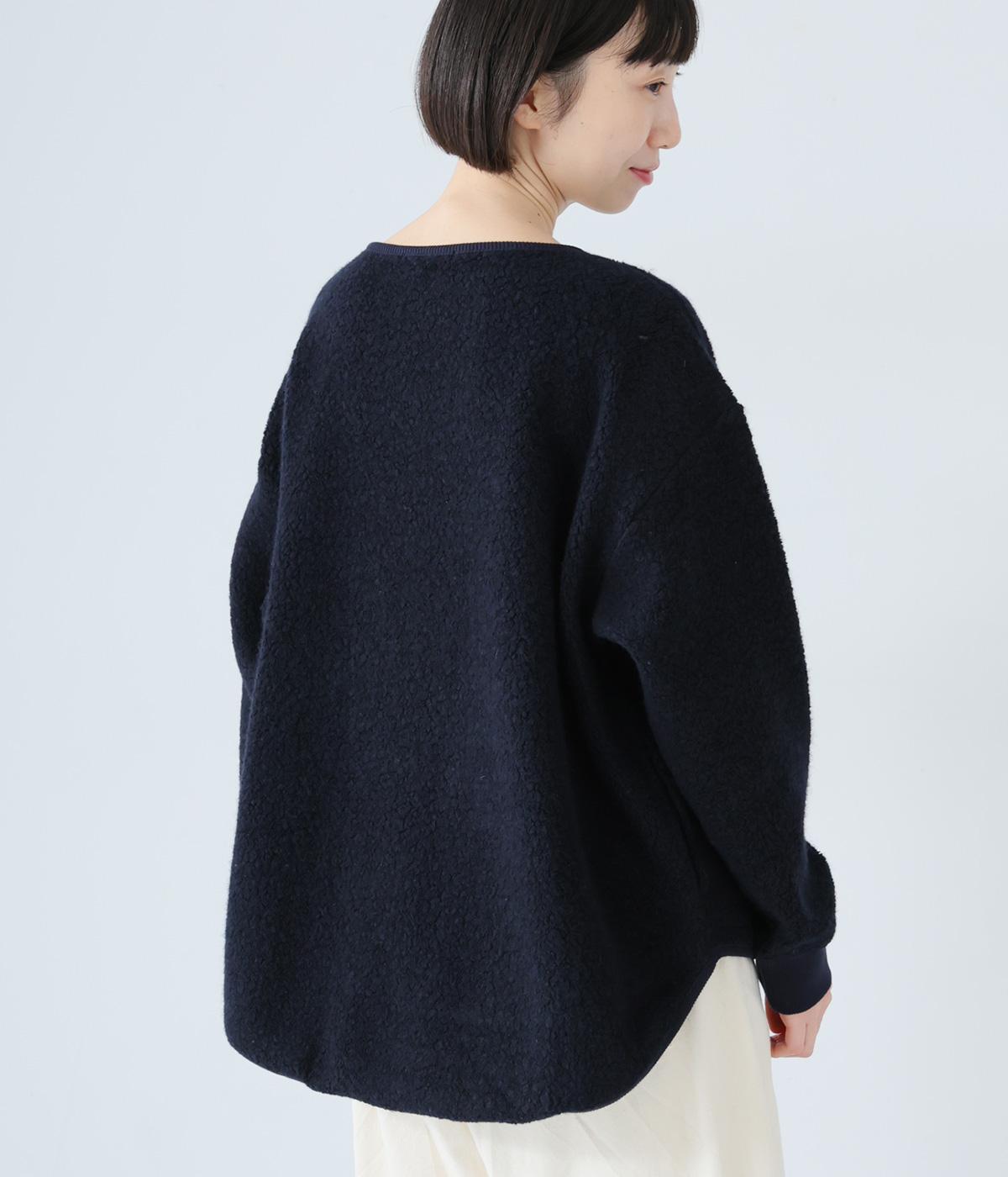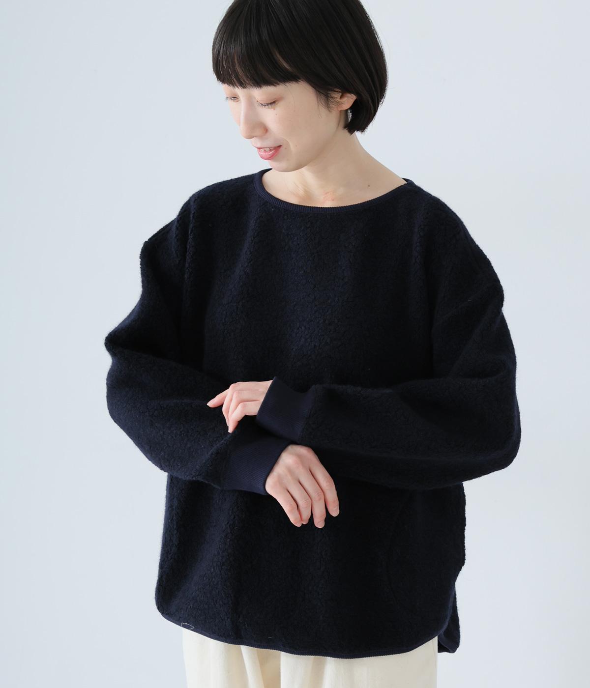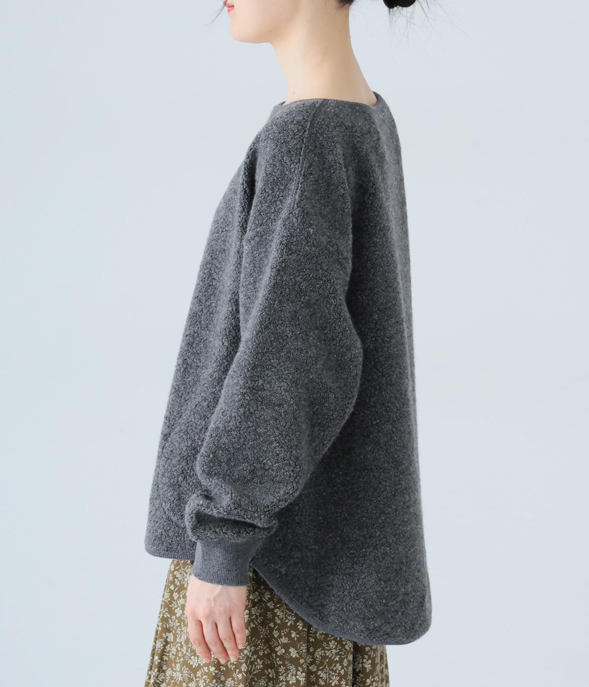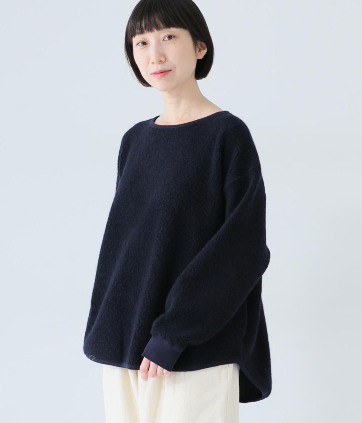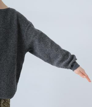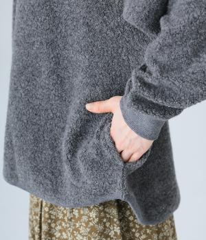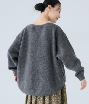 つい触れたくなるような愛らしいボア素材で仕立てたプルオーバー。浅めのネックラインとシンプルなデザインで大人らしく仕上げました。全体にゆとりがありつつも、前後差をつけたラウンドヘムがボトムスとのバランスをすっきりと整えてくれます。
