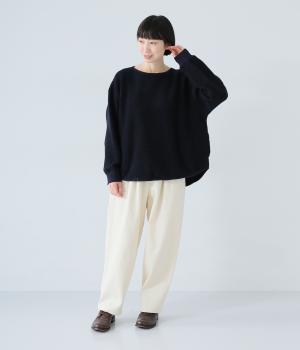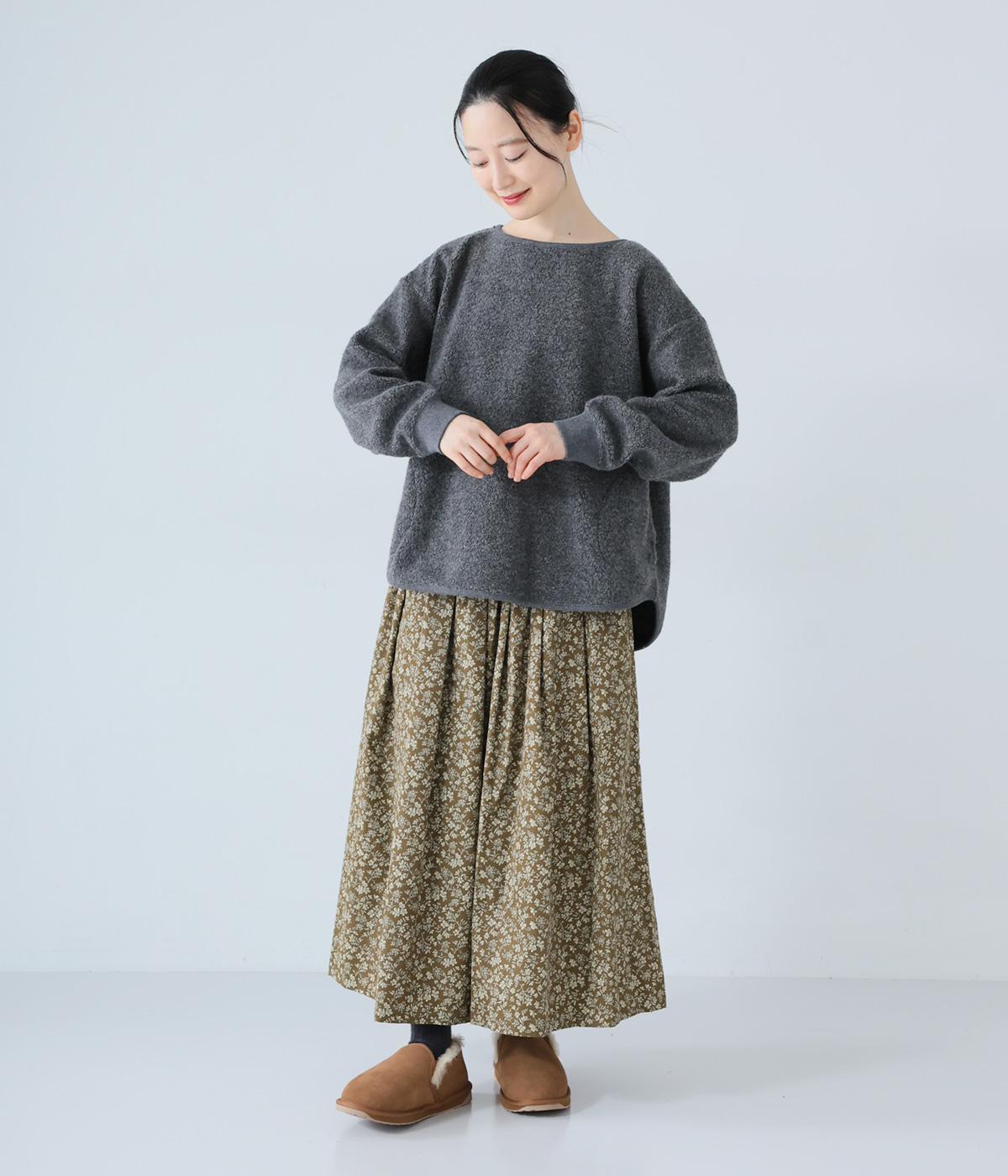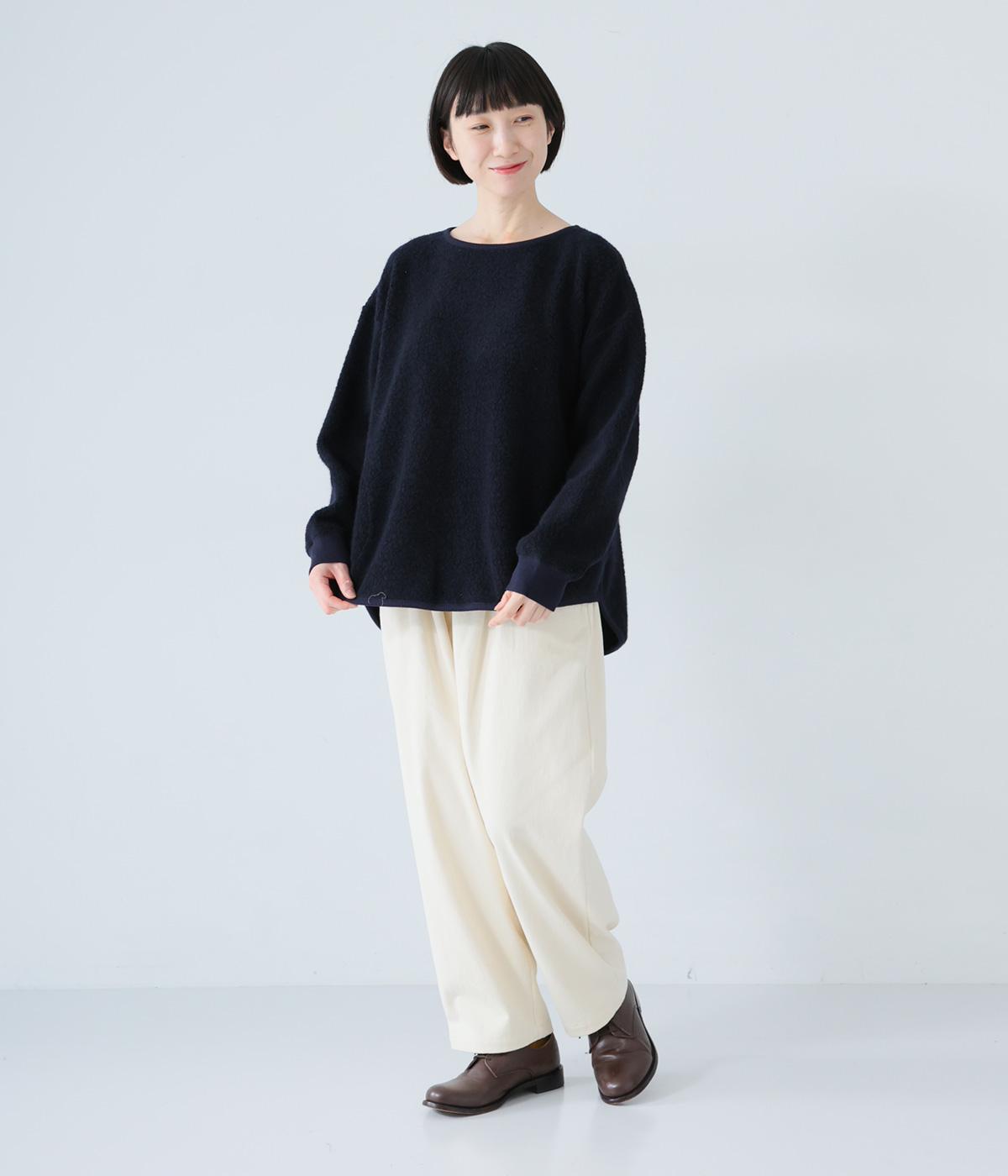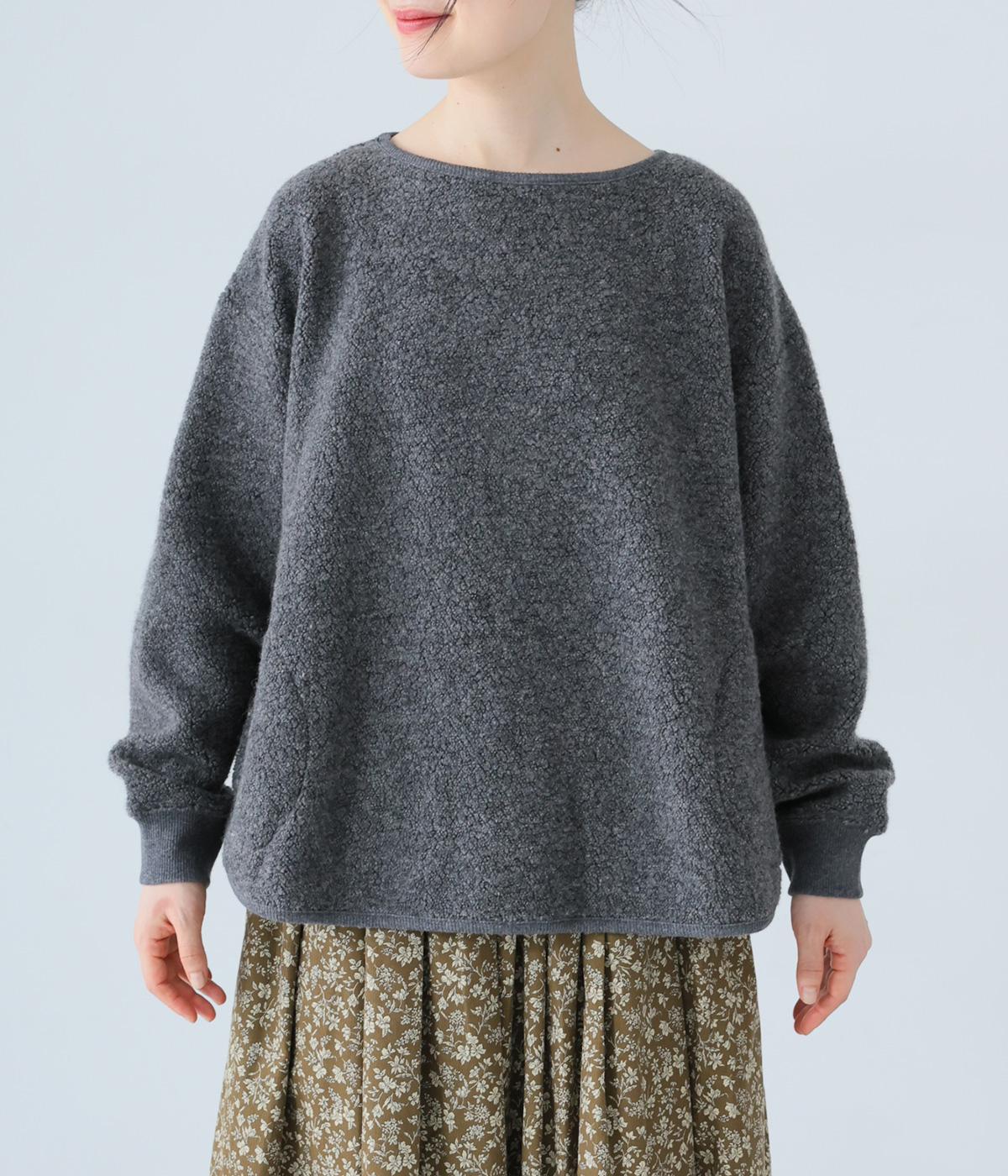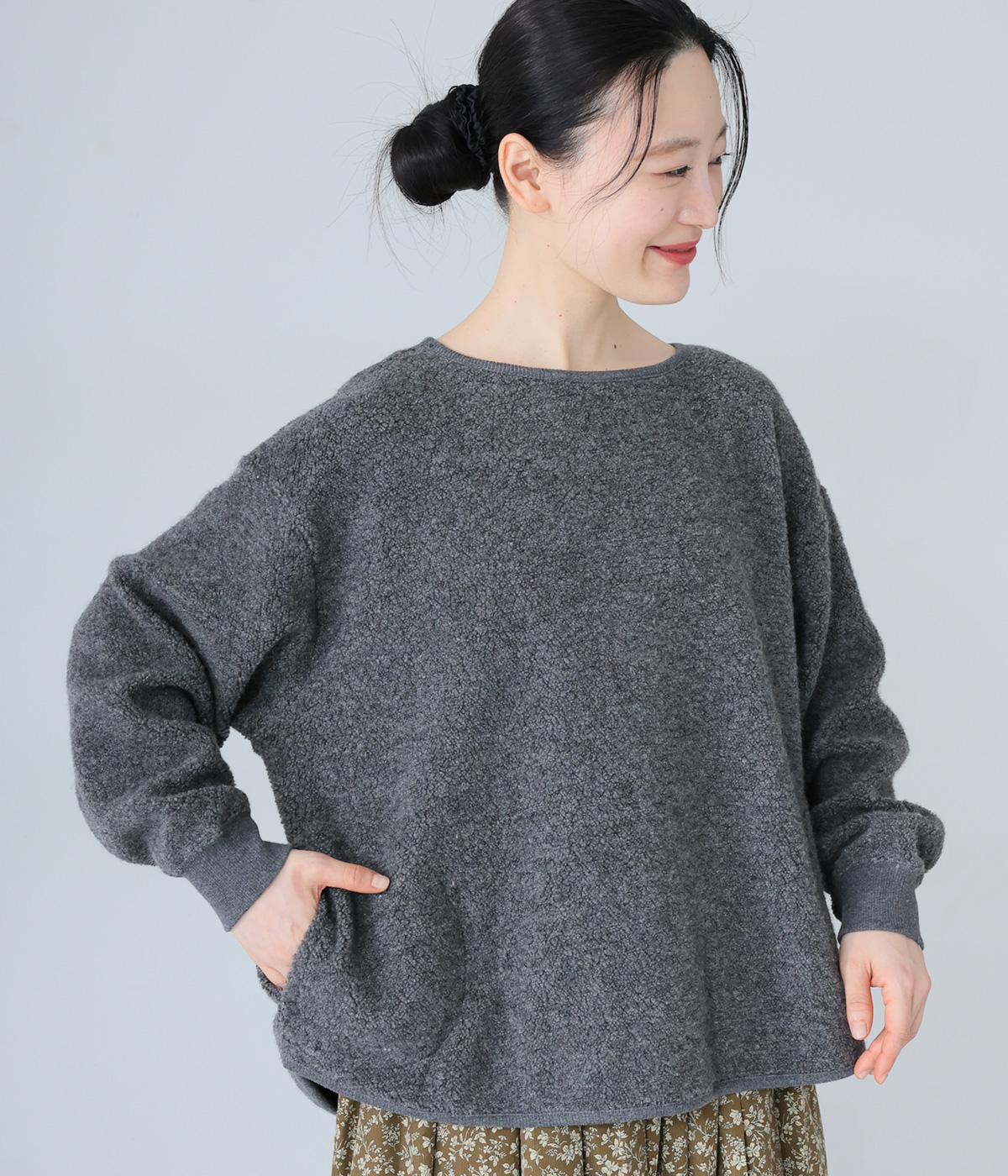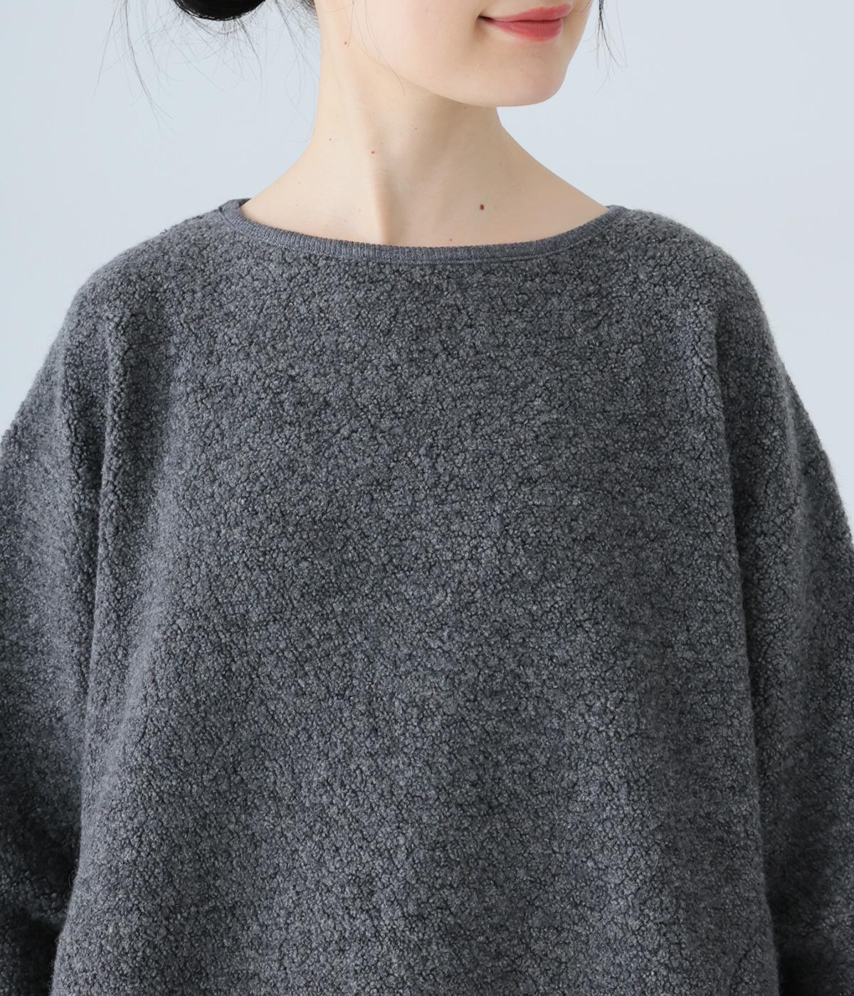 つい触れたくなるような愛らしいボア素材で仕立てたプルオーバー。浅めのネックラインとシンプルなデザインで大人らしく仕上げました。全体にゆとりがありつつも、前後差をつけたラウンドヘムがボトムスとのバランスをすっきりと整えてくれます。
