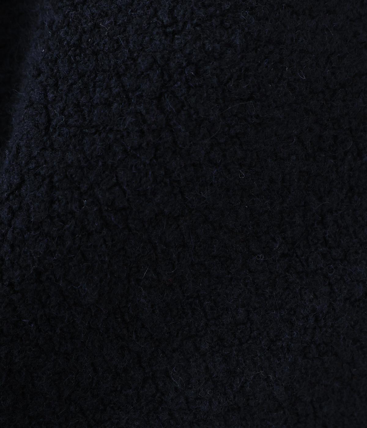 ふんわりとしたやわらかな肌触りが魅力のウール混ボア素材。軽くてあたたかいうえに伸縮性の高さも持ちあわせた、肌寒い時期に快適に着用できる生地感です。