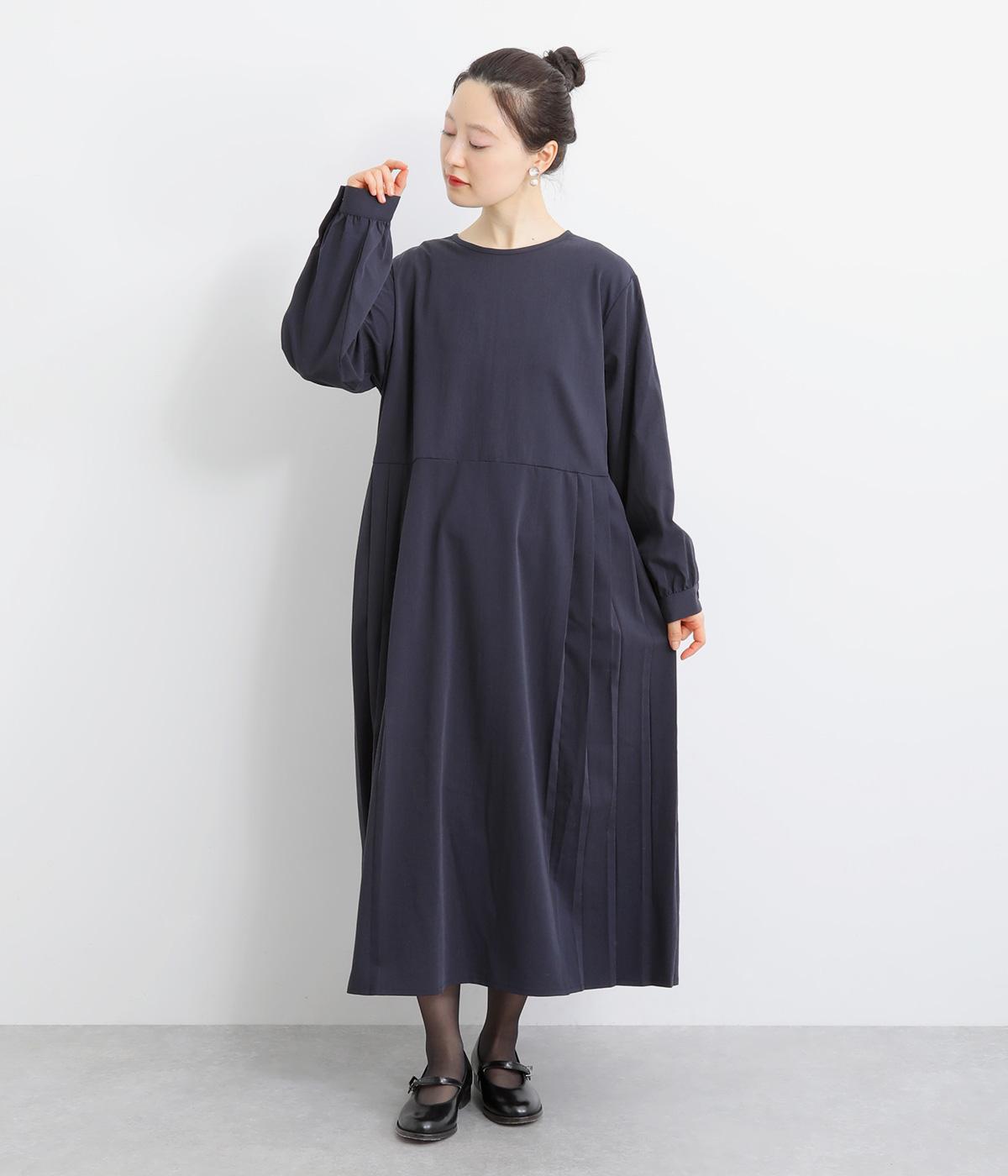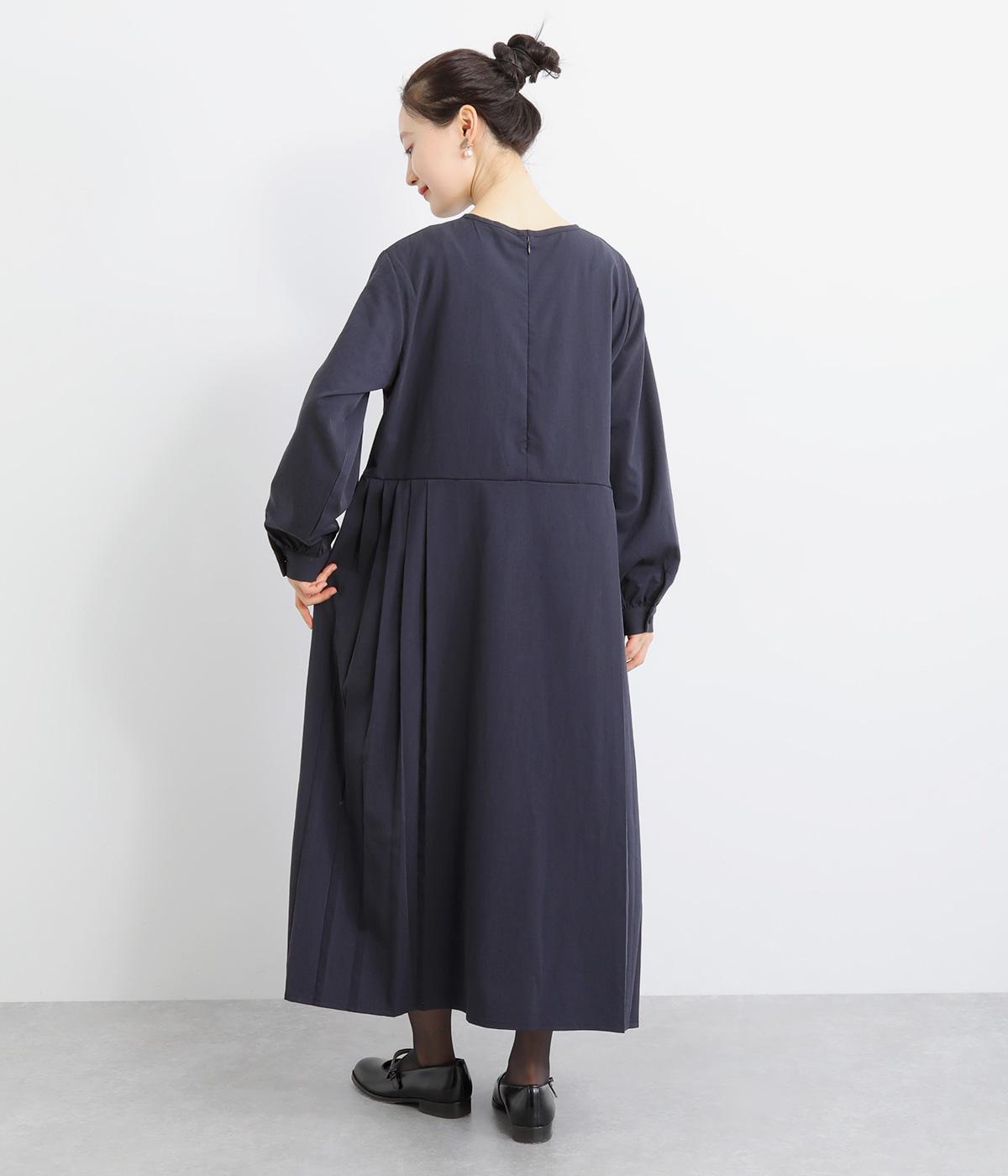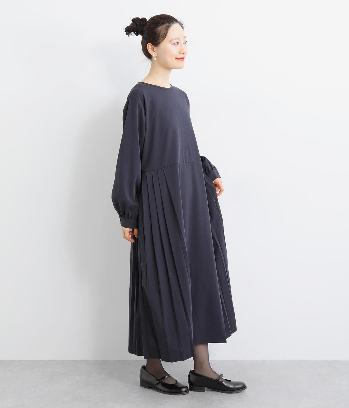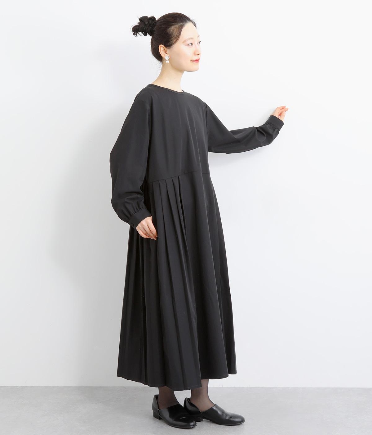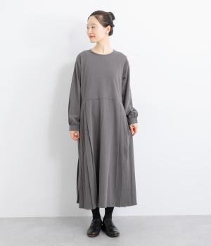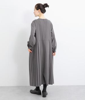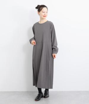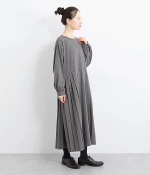 両サイドのプリーツが縦ラインを強調し、すっきりと着こなせるワンピース。上品な生地感とシンプルなクルーネックで、大人の魅力を惹きたてるきれいめな装いが叶います。袖口のギャザー使いも愛らしいポイントに。後ろ身頃はファスナー開きで着脱も簡単です。