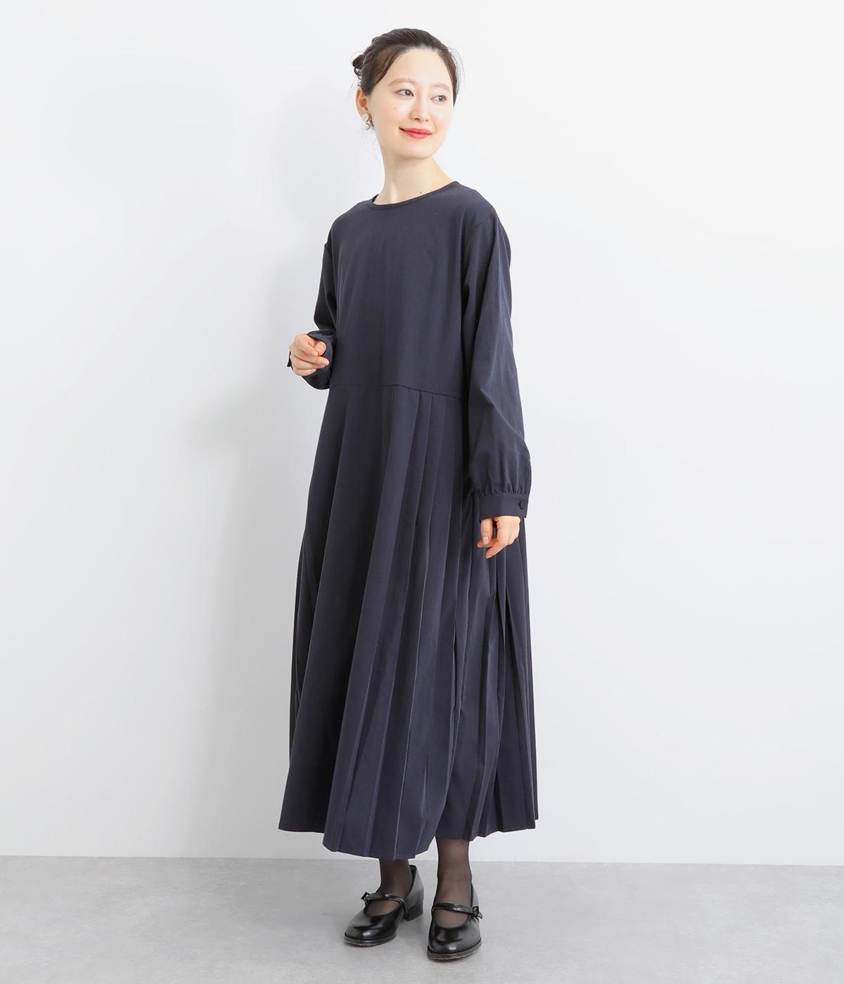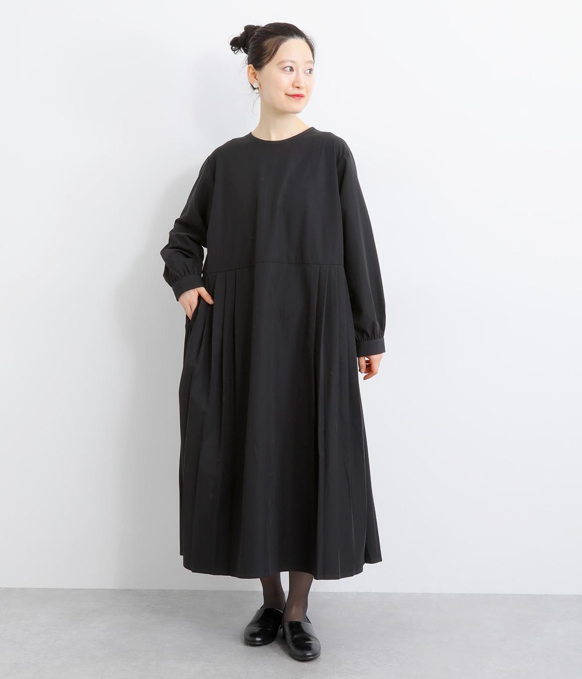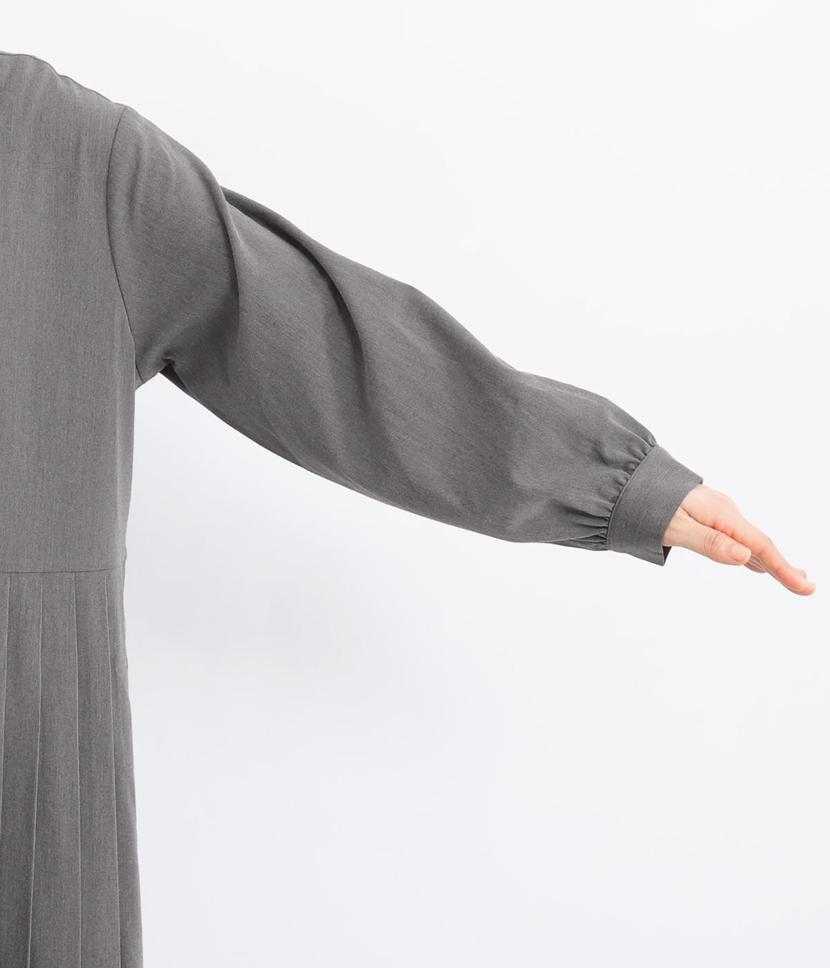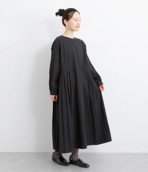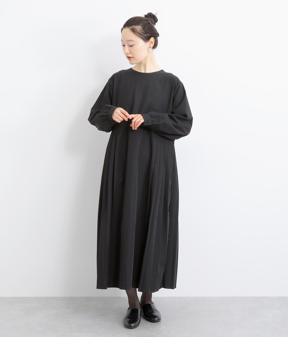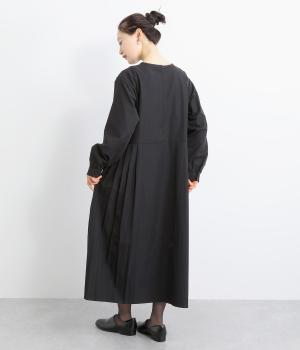 両サイドのプリーツが縦ラインを強調し、すっきりと着こなせるワンピース。上品な生地感とシンプルなクルーネックで、大人の魅力を惹きたてるきれいめな装いが叶います。袖口のギャザー使いも愛らしいポイントに。後ろ身頃はファスナー開きで着脱も簡単です。