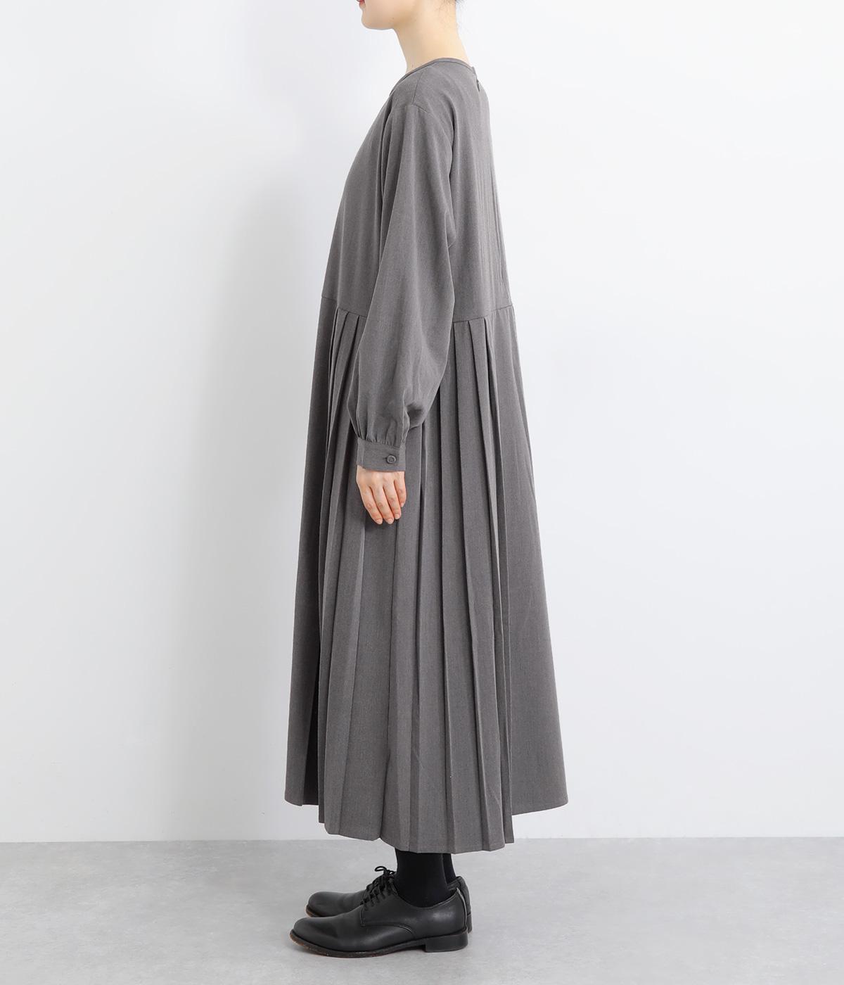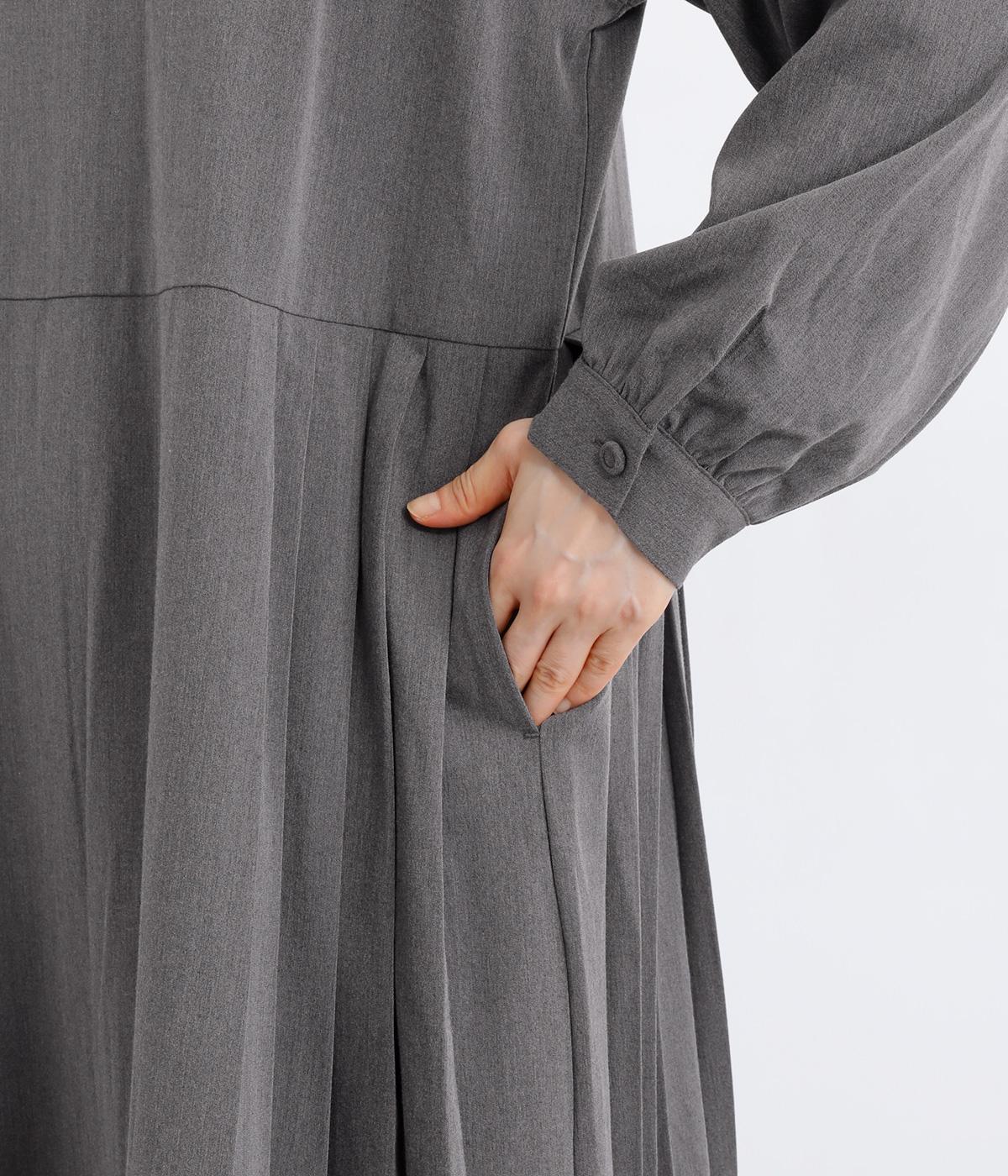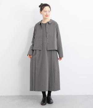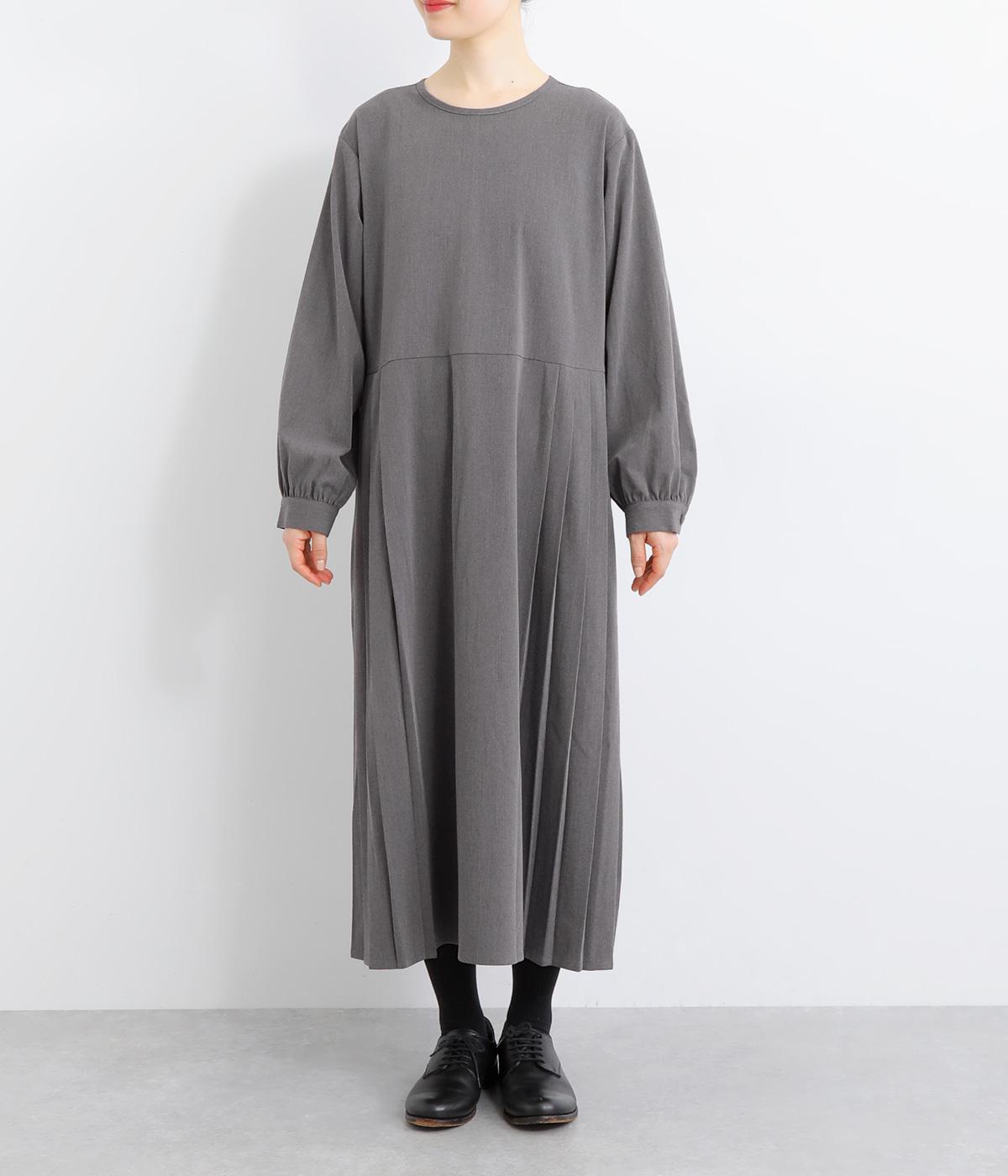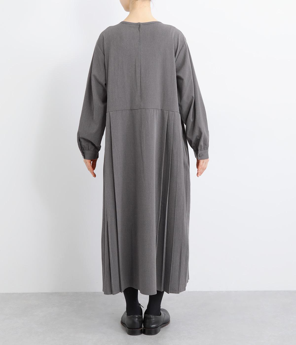 両サイドのプリーツが縦ラインを強調し、すっきりと着こなせるワンピース。上品な生地感とシンプルなクルーネックで、大人の魅力を惹きたてるきれいめな装いが叶います。袖口のギャザー使いも愛らしいポイントに。後ろ身頃はファスナー開きで着脱も簡単です。